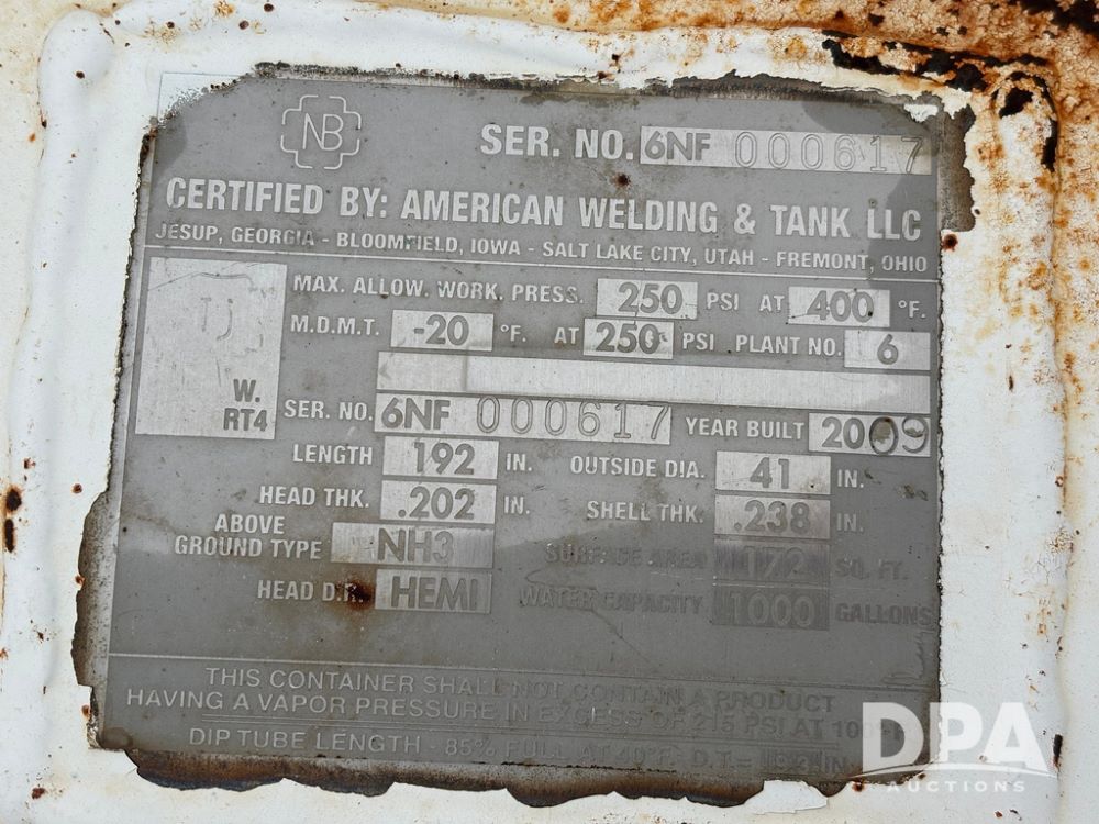 2009 American Welding & Tank NH3 Nurse Tank (GP12457), 2009 American Welding & Tank 1000 gallon NH3 nurse tank, top front fill.