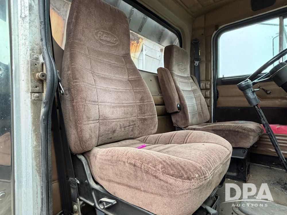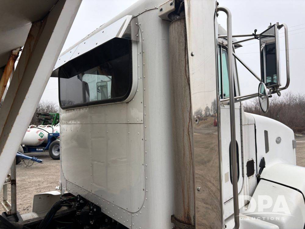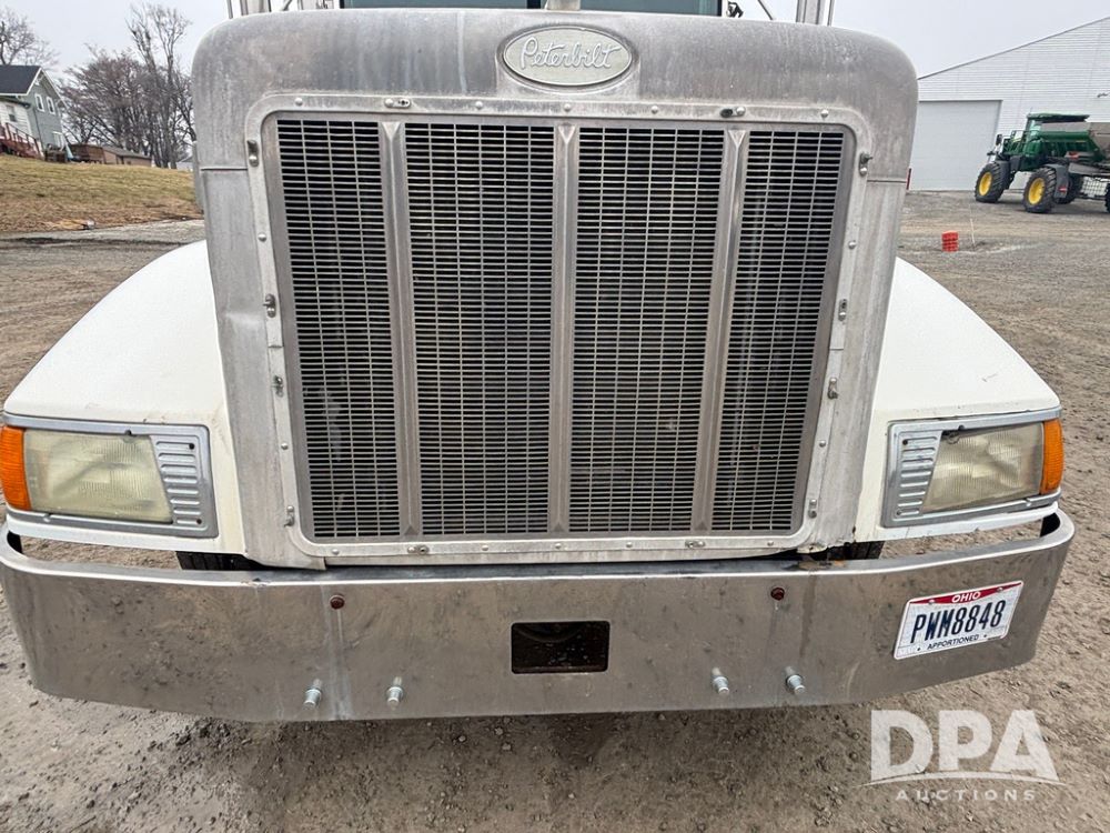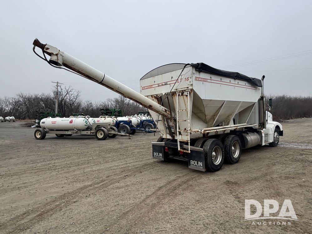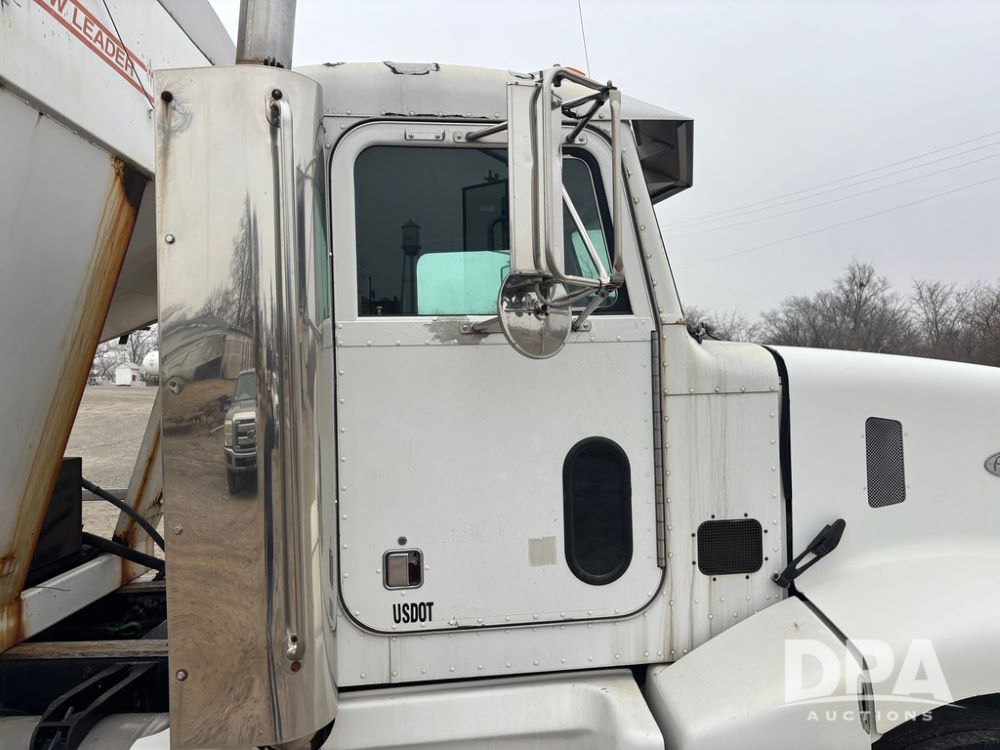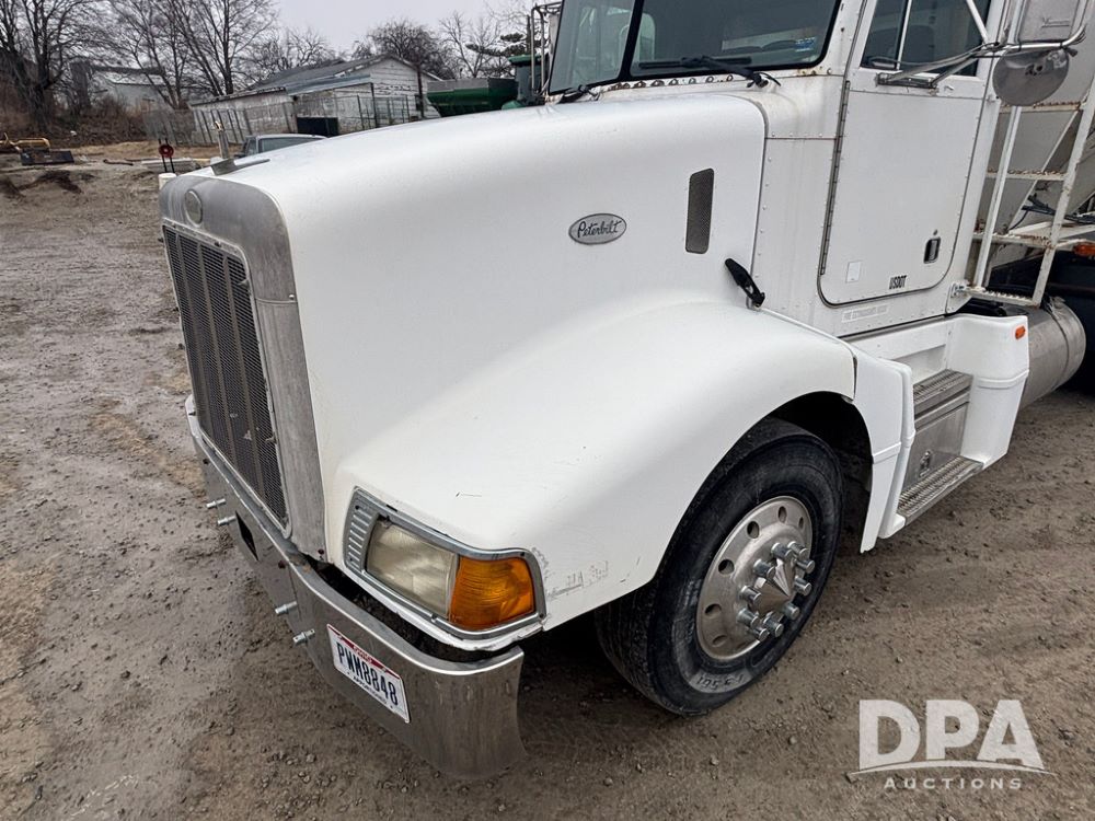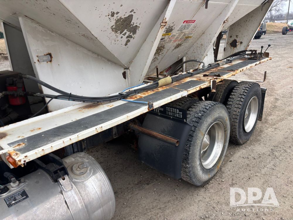 1999 Peterbilt 377 Dry Tender Truck (GP12445, Unit 11411), Cat C-12 diesel engine, Eaton Fuller 10 speed transmission, air conditioning, heat, Am/Fm radio, cruise control, tandem axle, full screw, air ride suspension, New Leader LT16 dry tender box, rear discharge auger, all hydraulic, roll over tarp, 11R22.5 tires, aluminum rims, shows 1,175,492 miles.