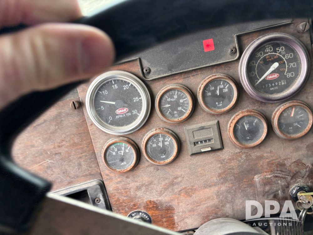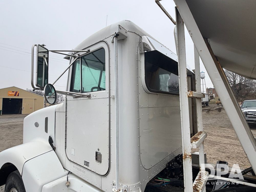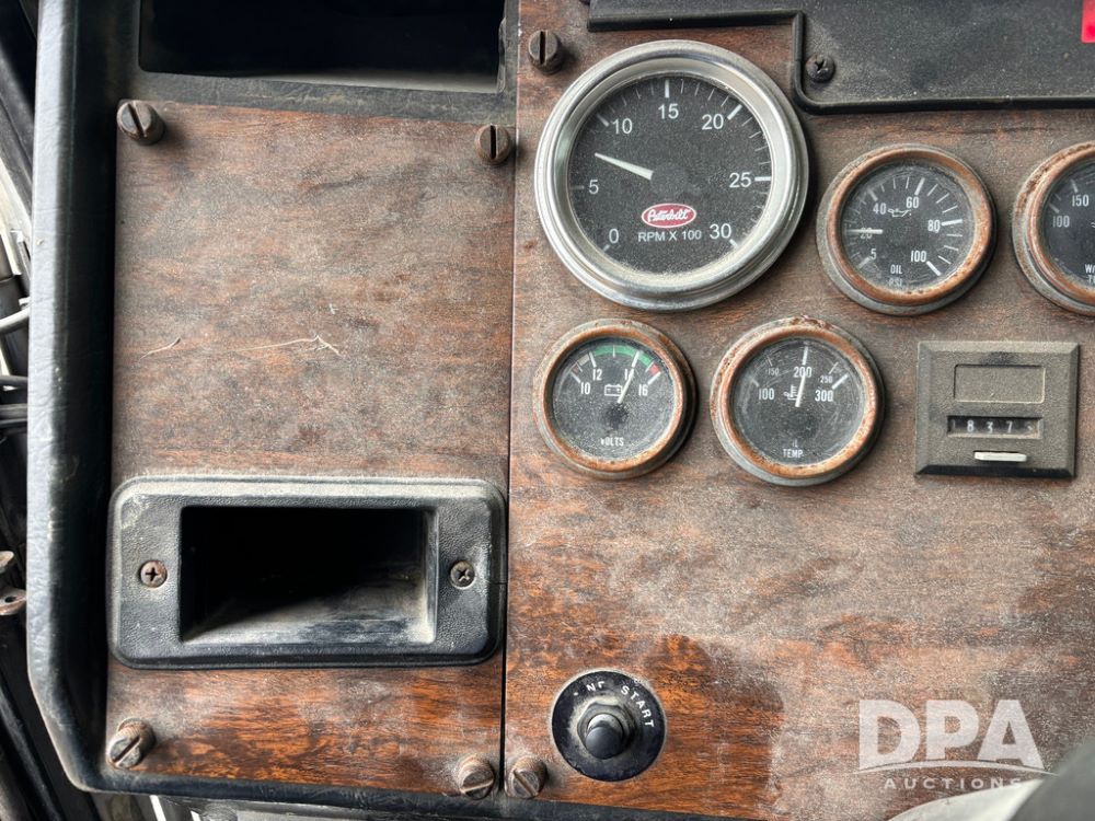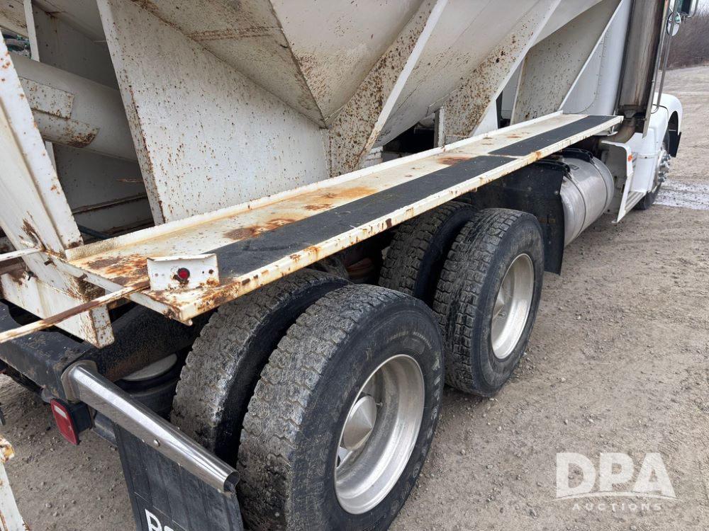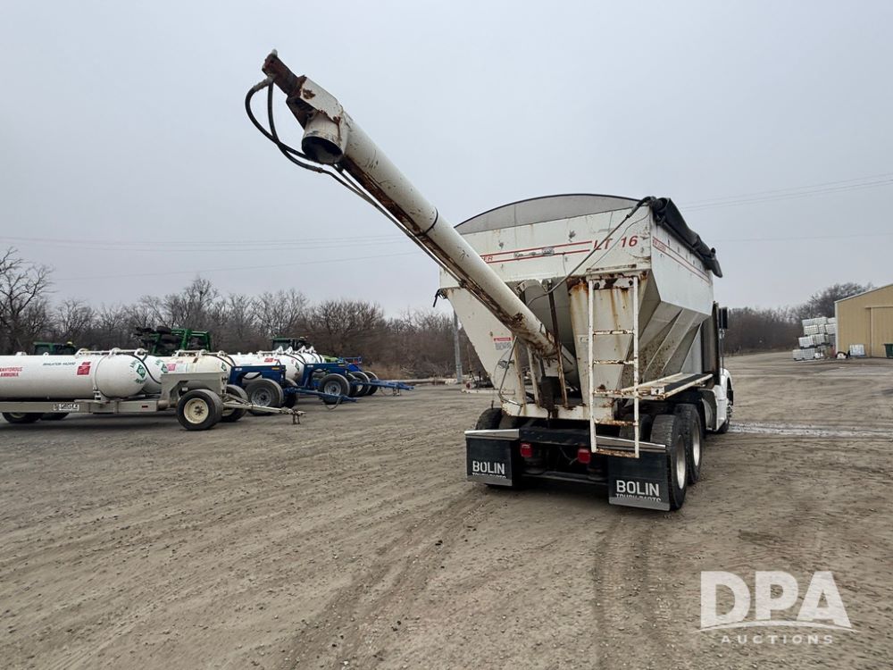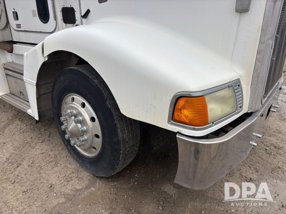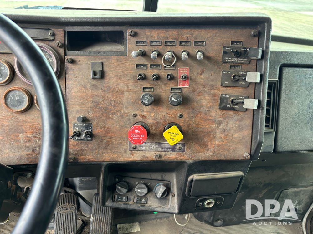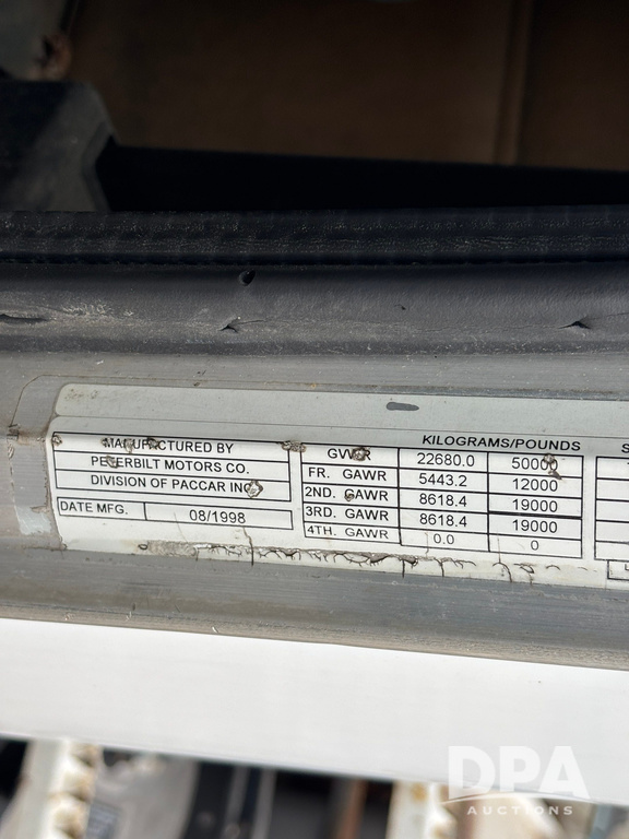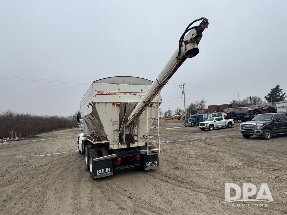 1999 Peterbilt 377 Dry Tender Truck (GP12445, Unit 11411), Cat C-12 diesel engine, Eaton Fuller 10 speed transmission, air conditioning, heat, Am/Fm radio, cruise control, tandem axle, full screw, air ride suspension, New Leader LT16 dry tender box, rear discharge auger, all hydraulic, roll over tarp, 11R22.5 tires, aluminum rims, shows 1,175,492 miles.