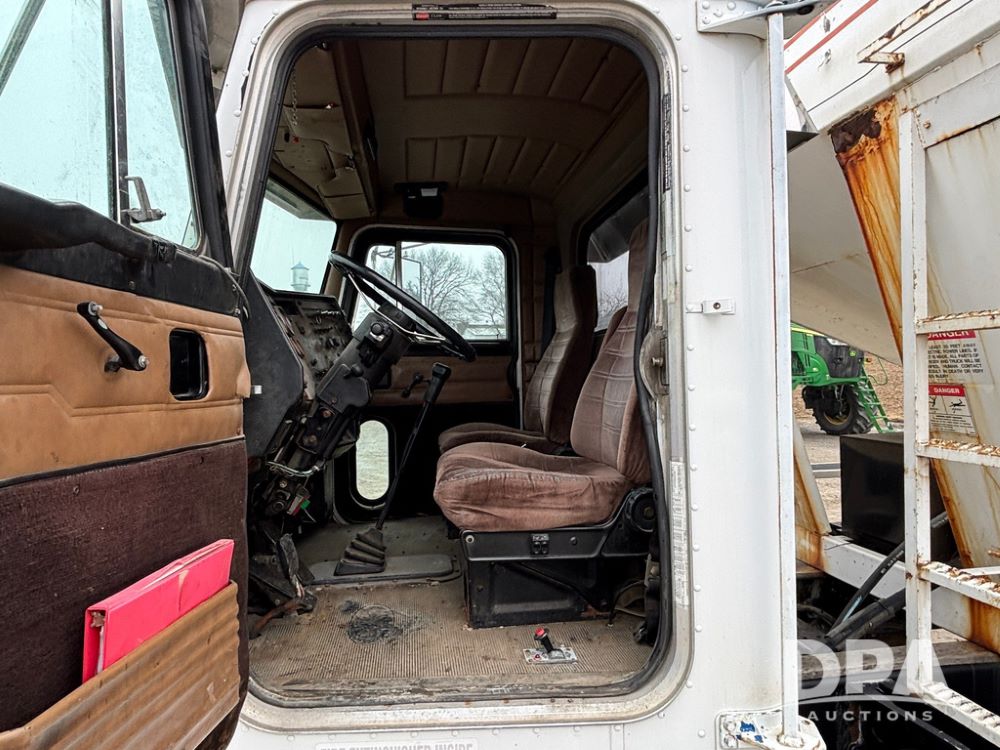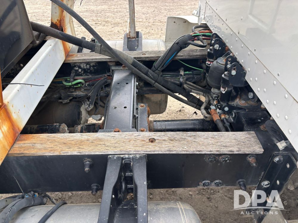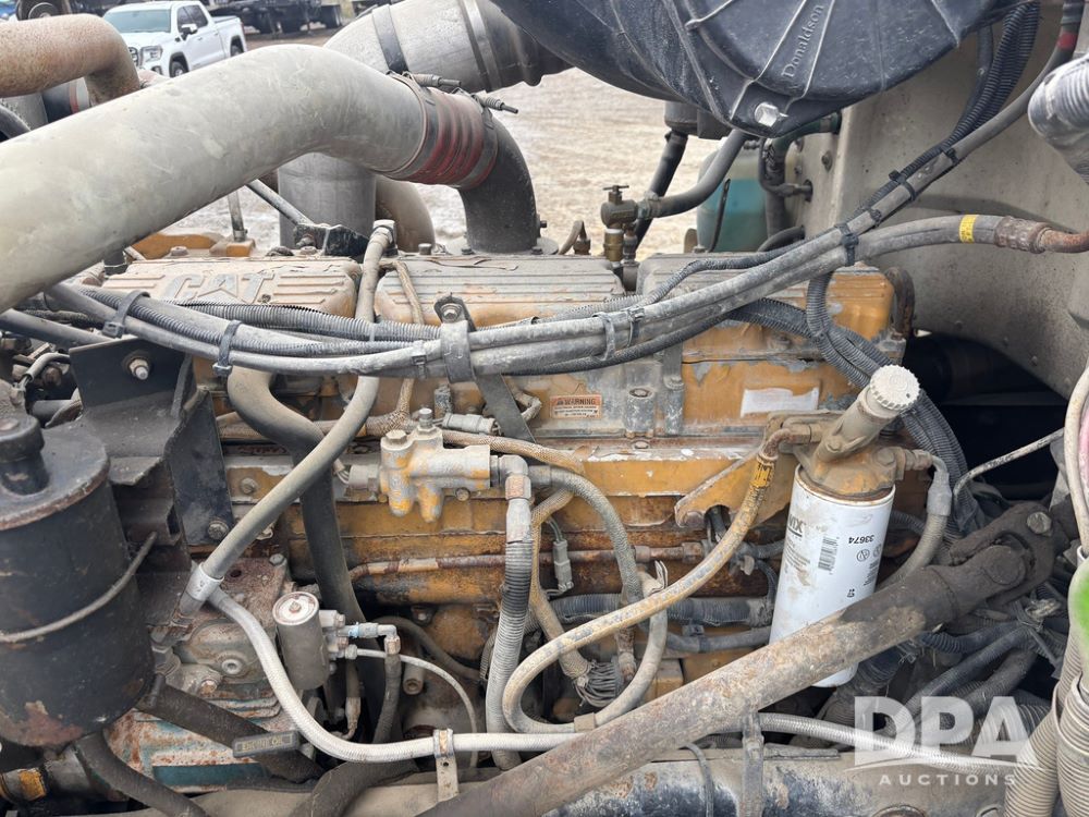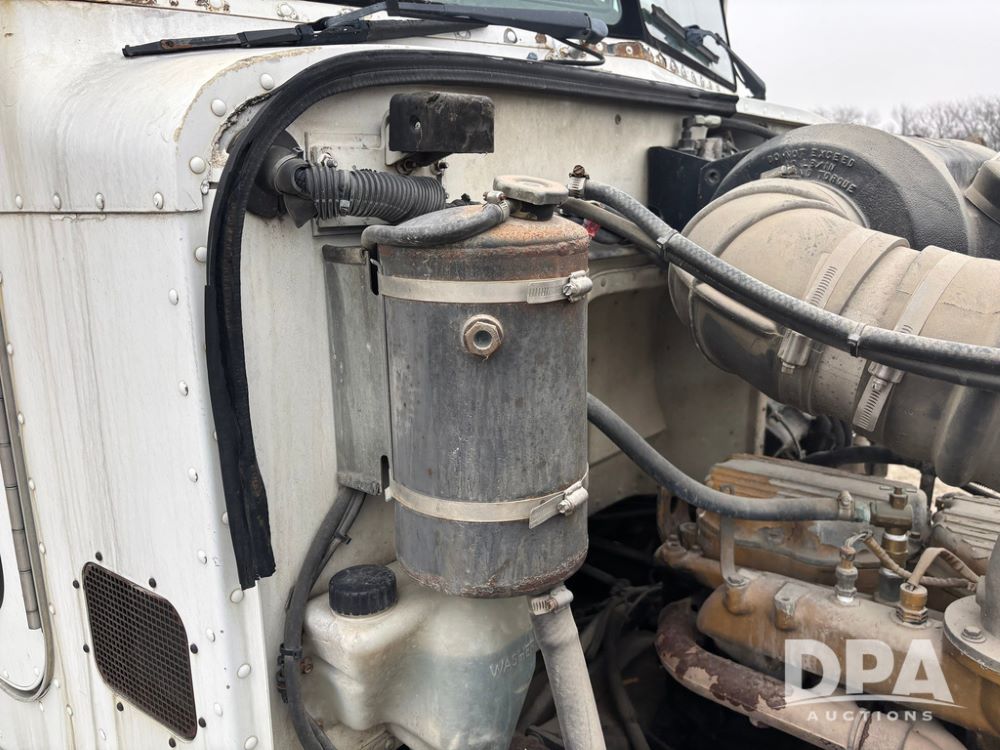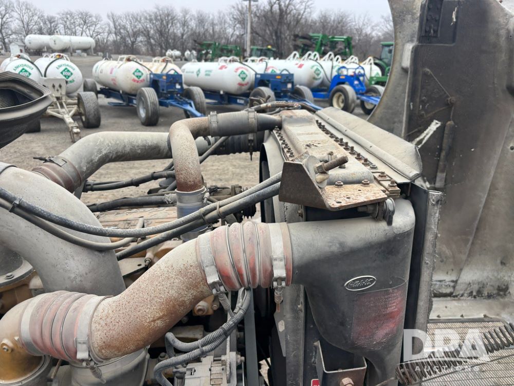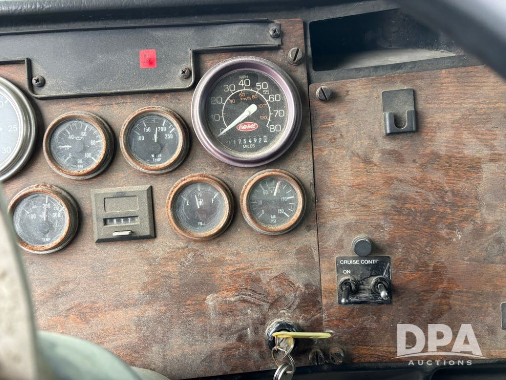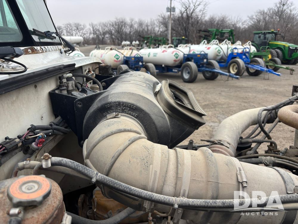 1999 Peterbilt 377 Dry Tender Truck (GP12445, Unit 11411), Cat C-12 diesel engine, Eaton Fuller 10 speed transmission, air conditioning, heat, Am/Fm radio, cruise control, tandem axle, full screw, air ride suspension, New Leader LT16 dry tender box, rear discharge auger, all hydraulic, roll over tarp, 11R22.5 tires, aluminum rims, shows 1,175,492 miles.