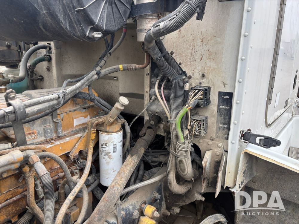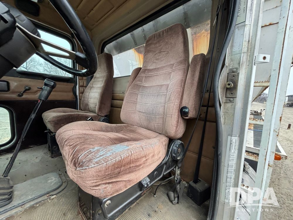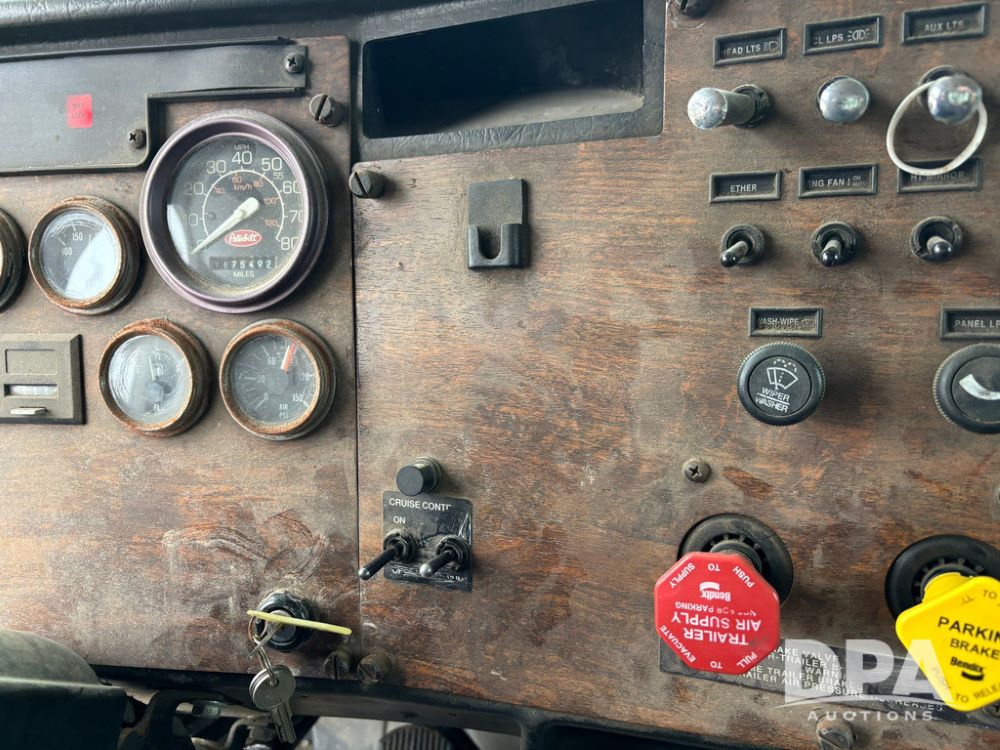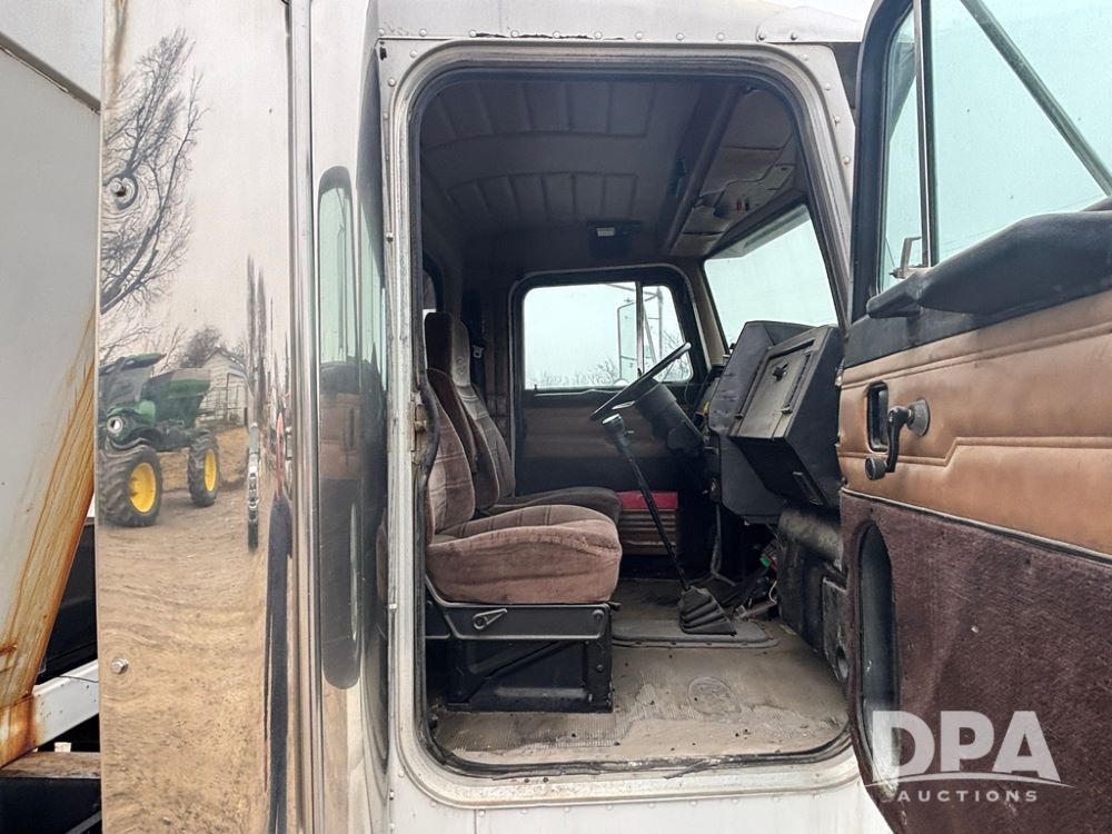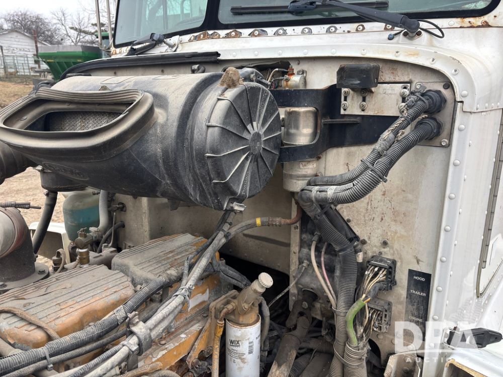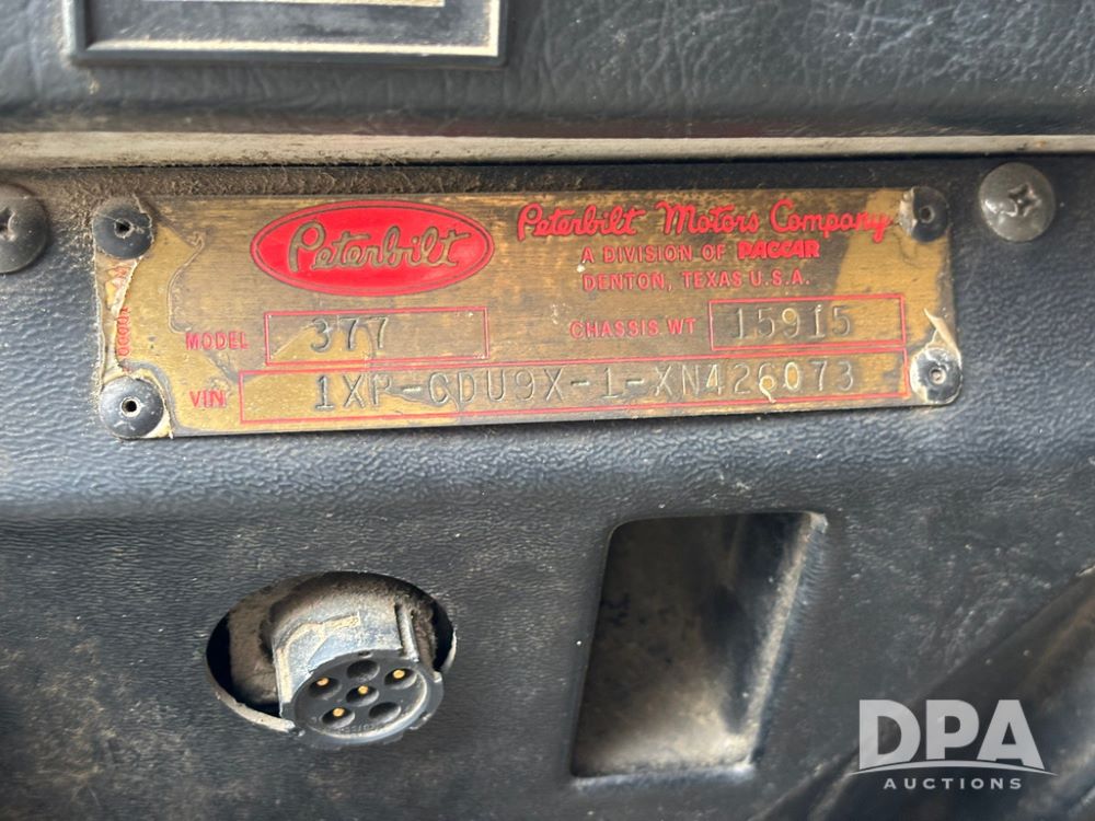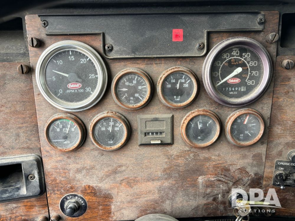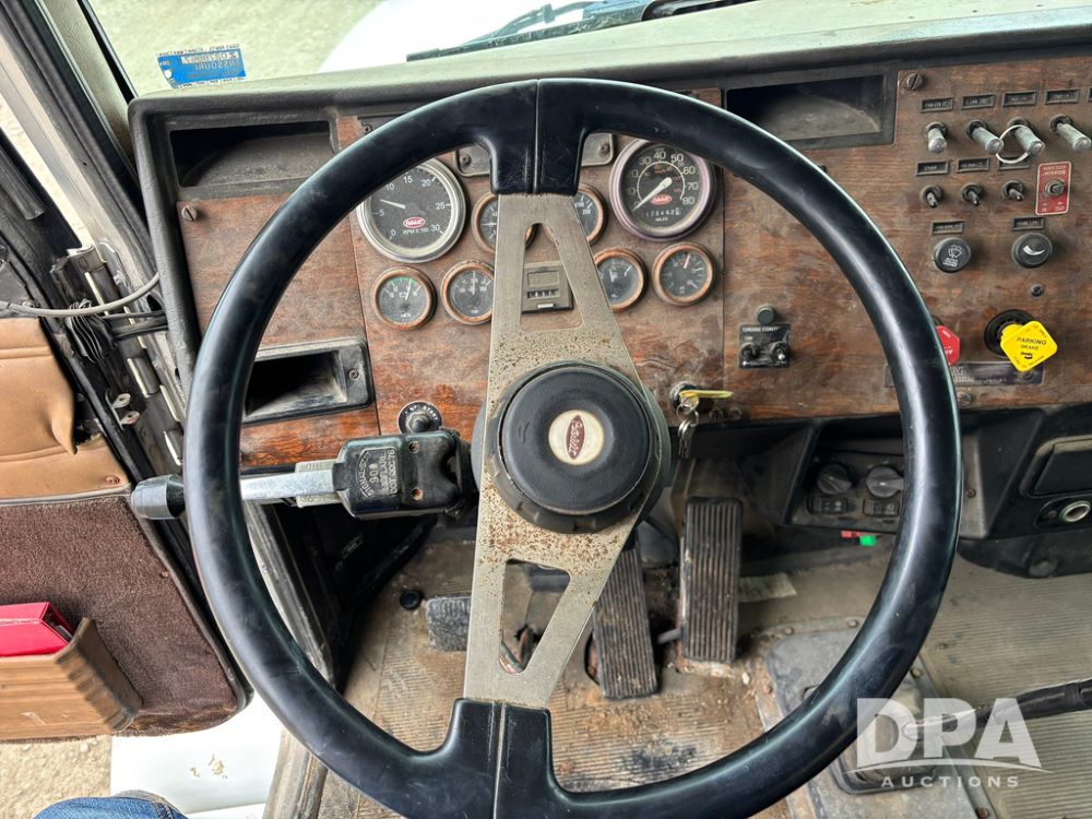 1999 Peterbilt 377 Dry Tender Truck (GP12445, Unit 11411), Cat C-12 diesel engine, Eaton Fuller 10 speed transmission, air conditioning, heat, Am/Fm radio, cruise control, tandem axle, full screw, air ride suspension, New Leader LT16 dry tender box, rear discharge auger, all hydraulic, roll over tarp, 11R22.5 tires, aluminum rims, shows 1,175,492 miles.