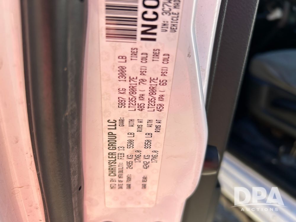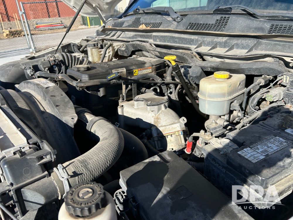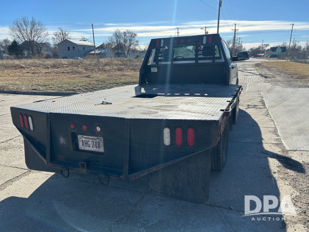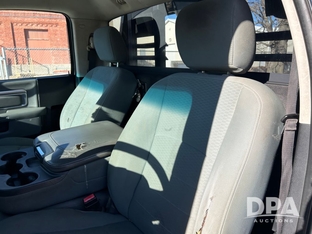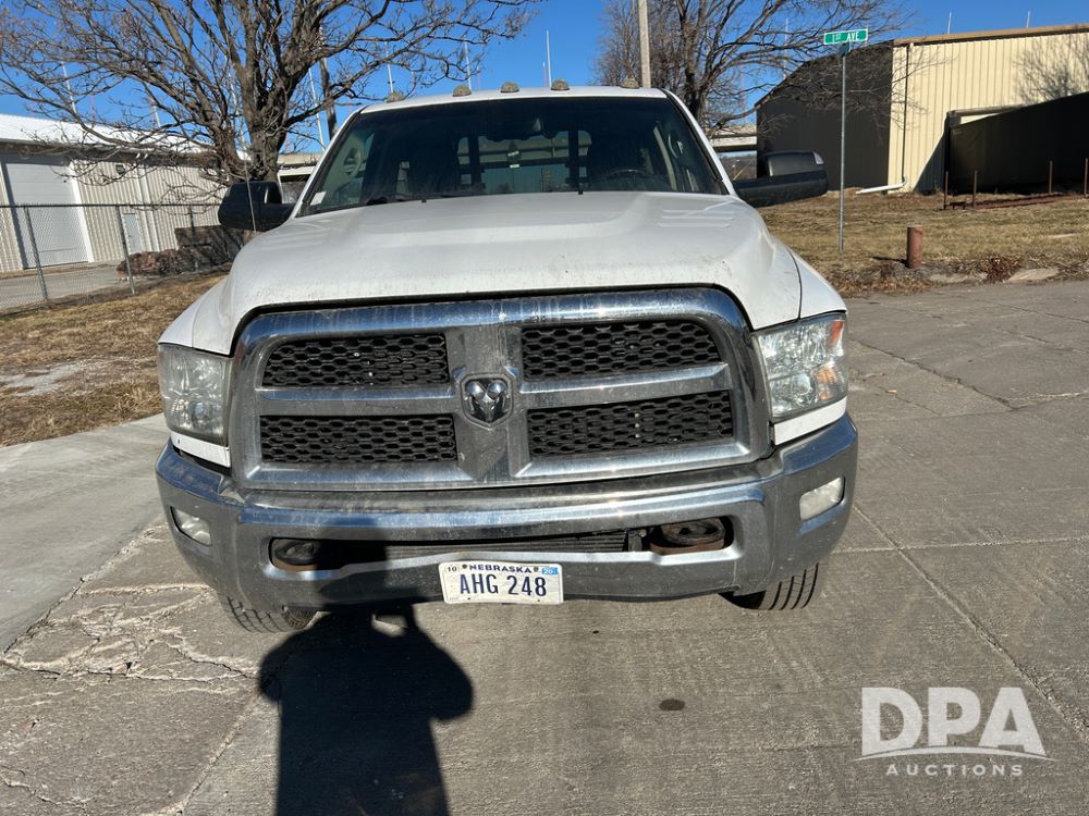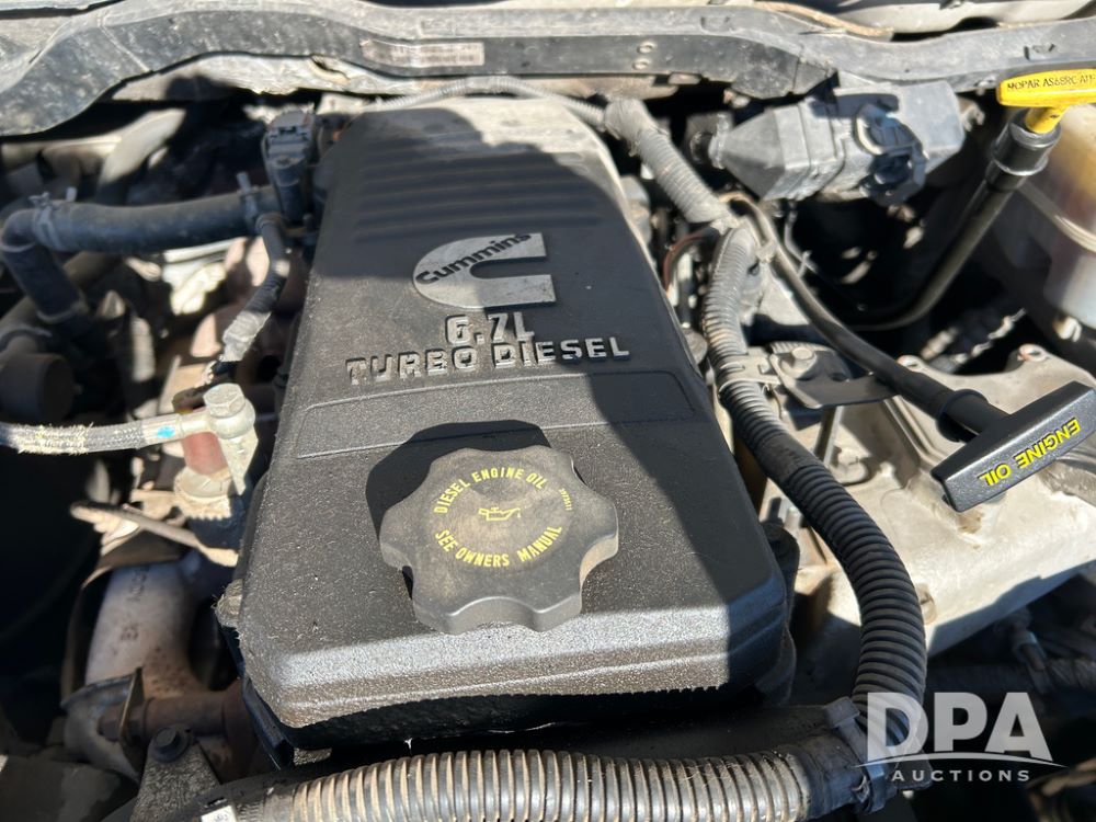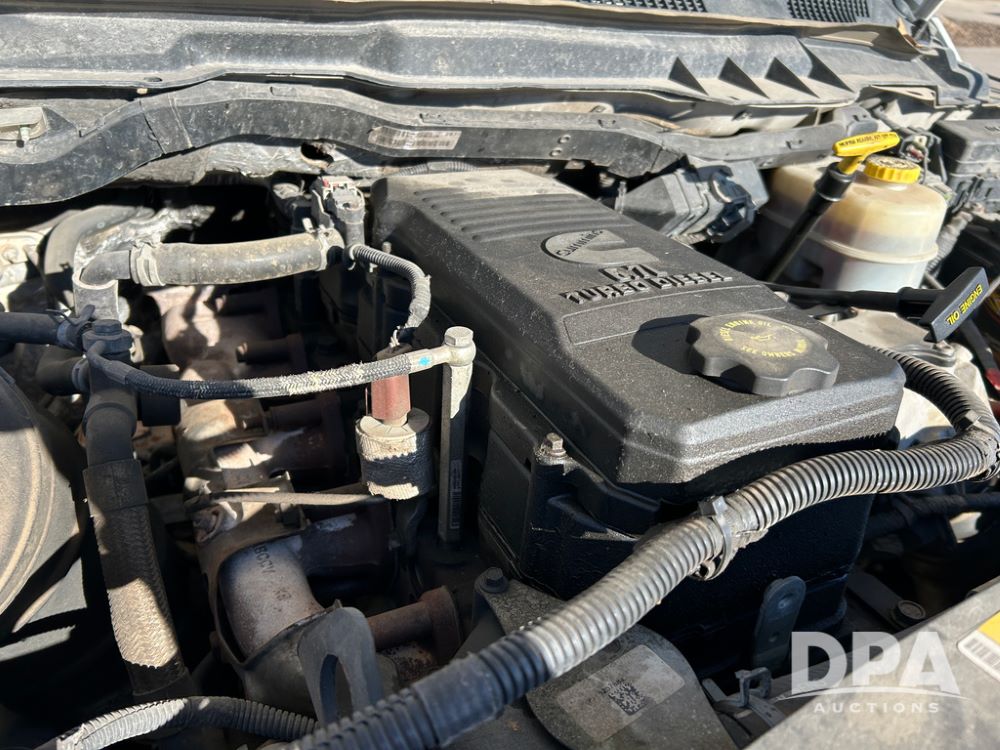 2013 Ram 3500 Heavy Duty 4x4 Flatbed Pickup (CP1427), regular cab, Cummins 6.7L turbo diesel engine (approx. 150,000 miles on current engine), automatic transmission, heat, Am/Fm radio, power windows, locks and mirrors, cloth interior, cruise control, approx. 11' rear flatbed, dually, running boards, LT235/80R17 tires, shows 338,841 miles.