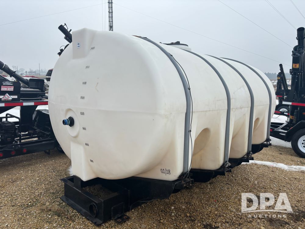 Crown Poly Tank (DR12894), 2,600 gallon crown poly liquid tank, skid for truck mount.
