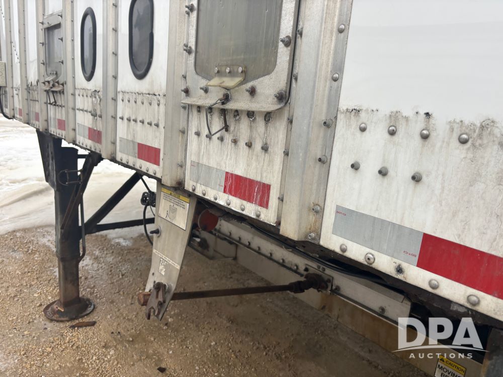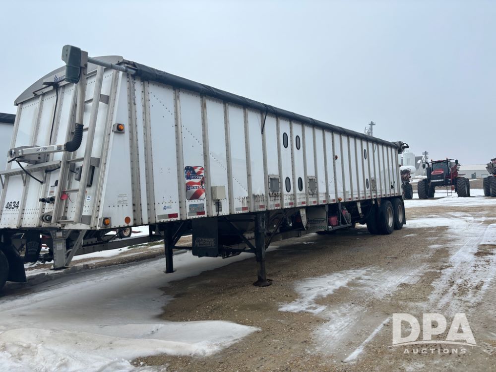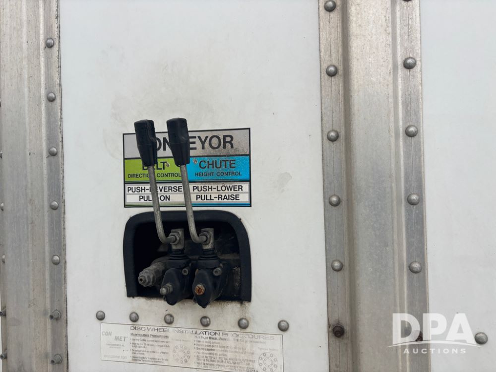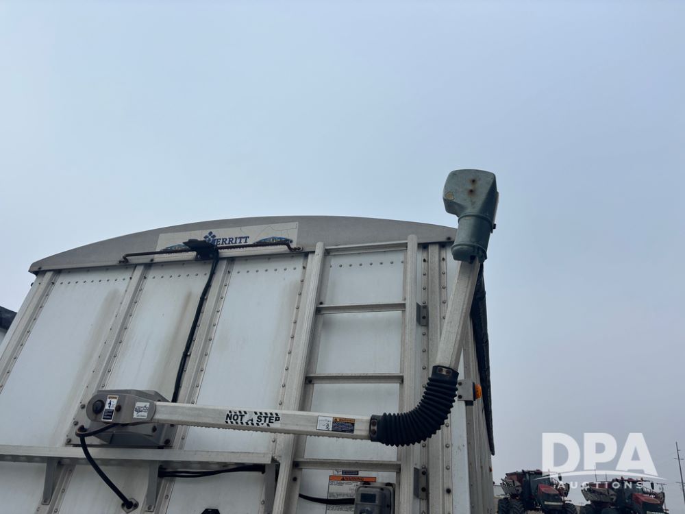 2017 Merritt Dry Trailer (DR12896 Unit 4634), 40' aluminum dry tender trailer, self contained hydraulics w/Honda gas engine and electric start, rear discharge conveyor, electric roll over tarp, side sight glass windows, tandem axle, 22.5 tires, outside aluminum wheels.