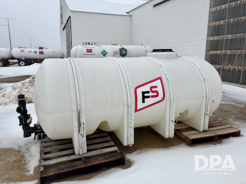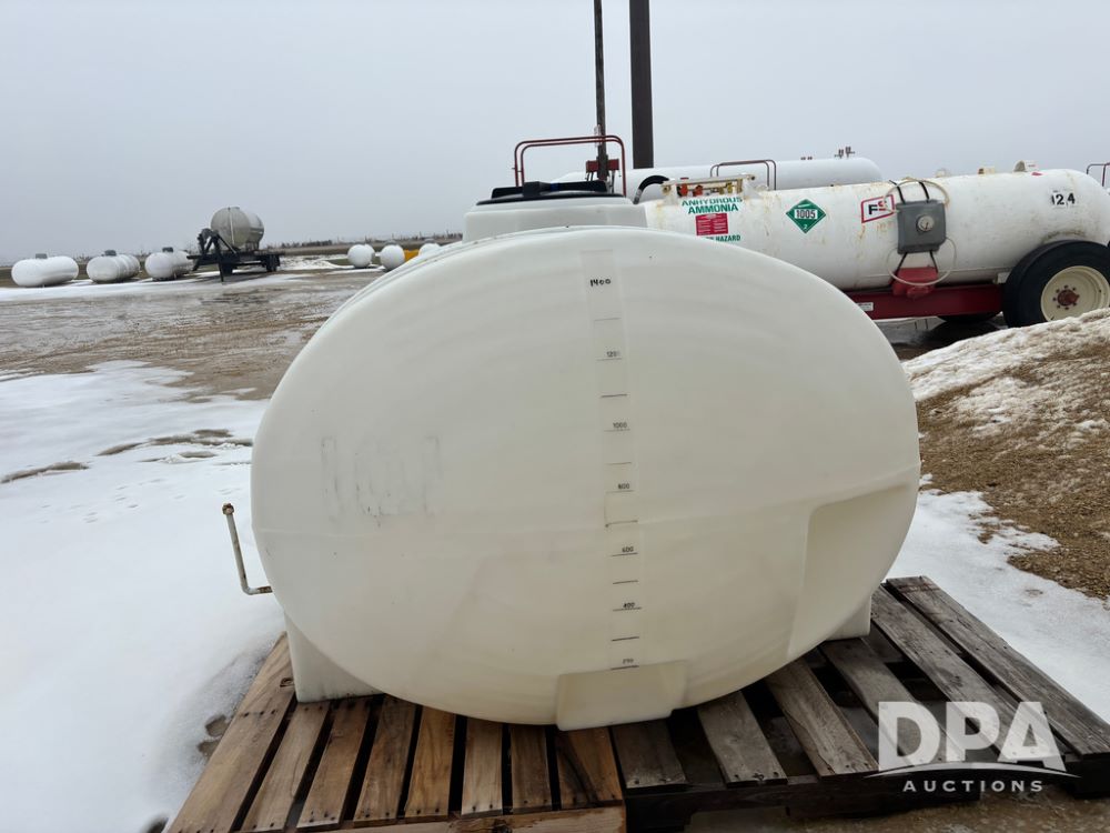 Poly Liquid Tank (DR12898), 1,400 gallon poly liquid tank, 3'' outlet and tie down straps.