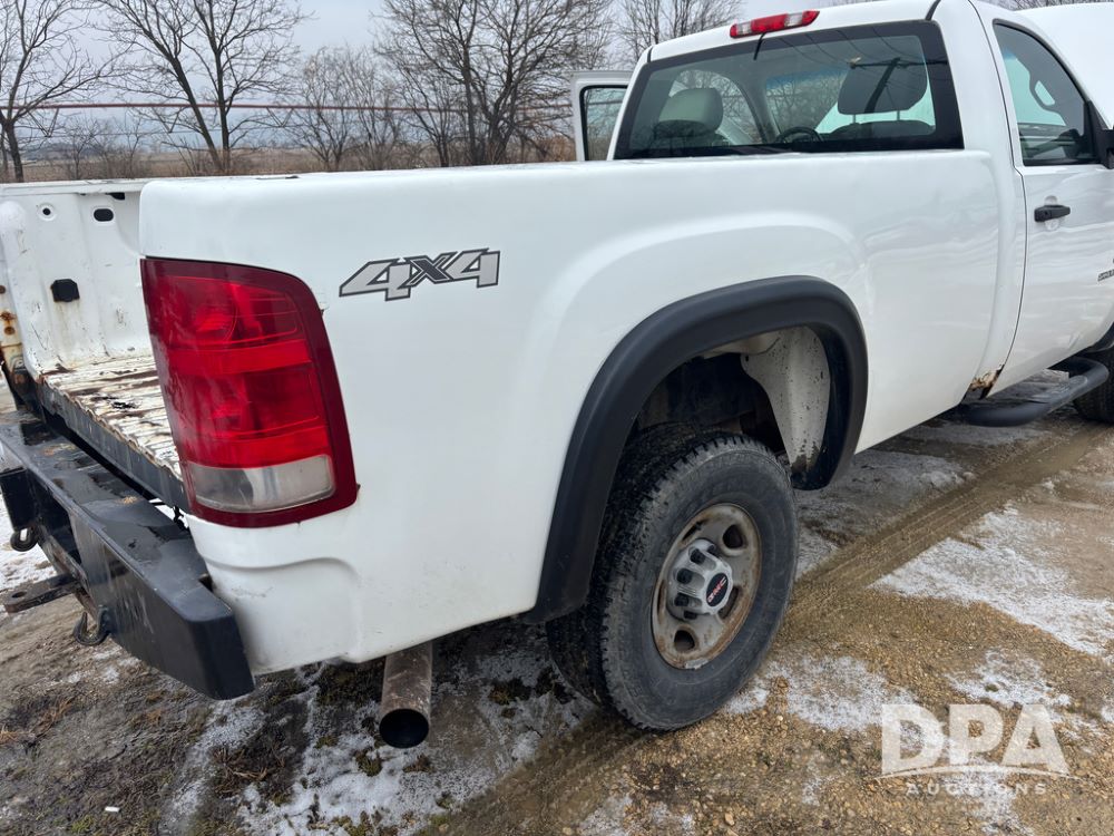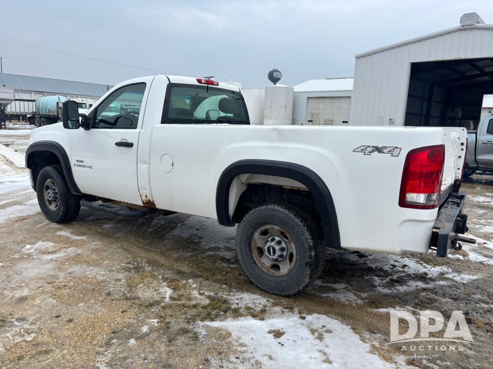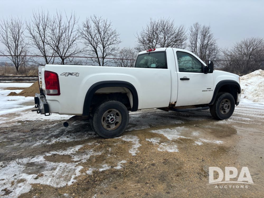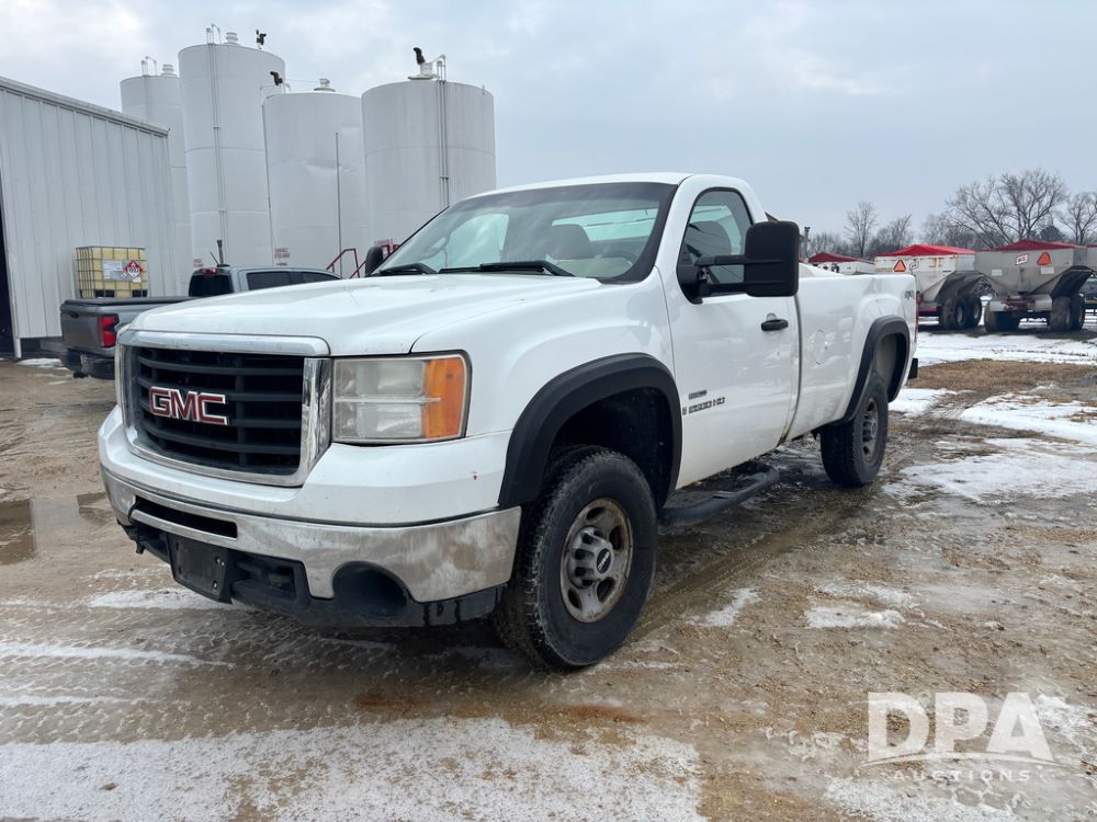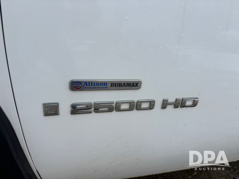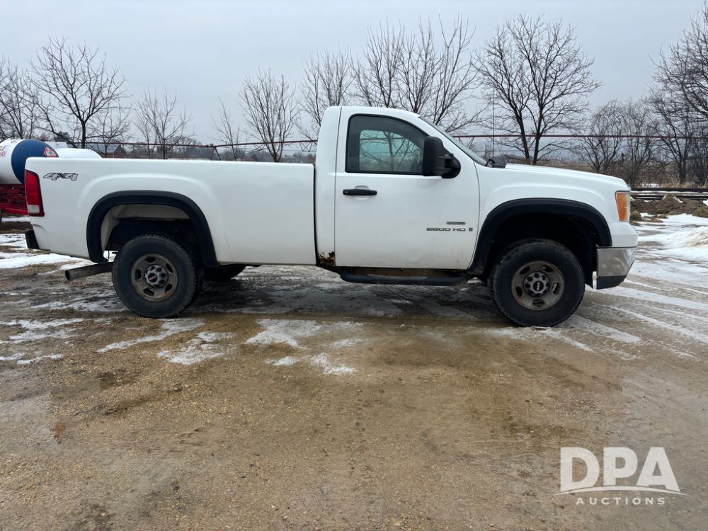 2008 GMC 2500HD Pickup (DR12899 Unit 22715), Dura Max diesel engine, Allison automatic transmission, 4X4, regular cab long box, NO tailgate, 5th wheel ball, rear ag bumper, nerf bar cab steps, AM/FM CD radio, cab heat/air conditioning, 265/75R16 tires, odometer reads 288,143 miles.