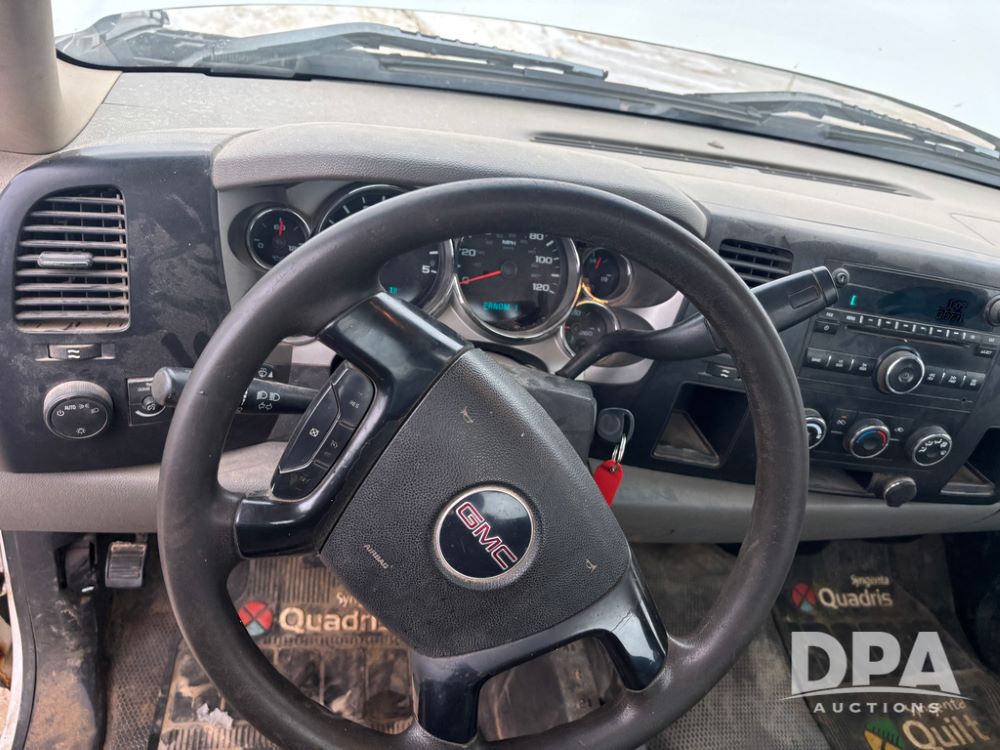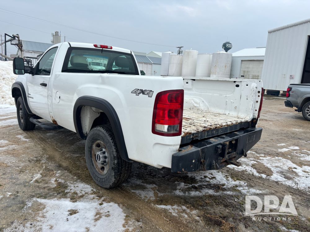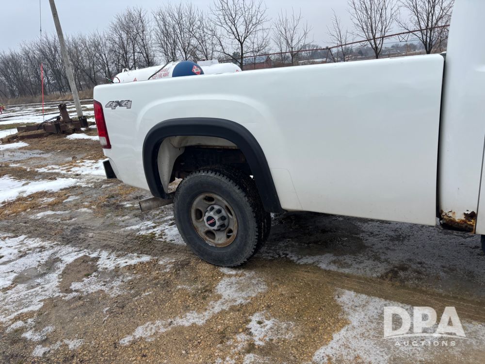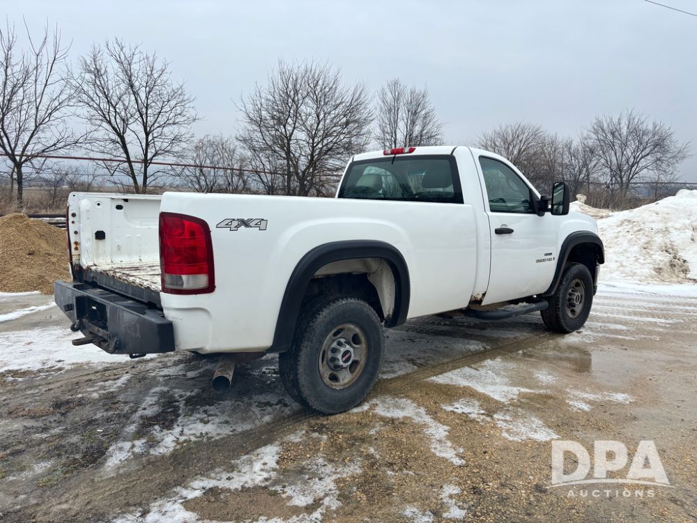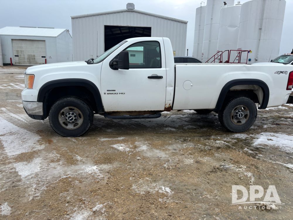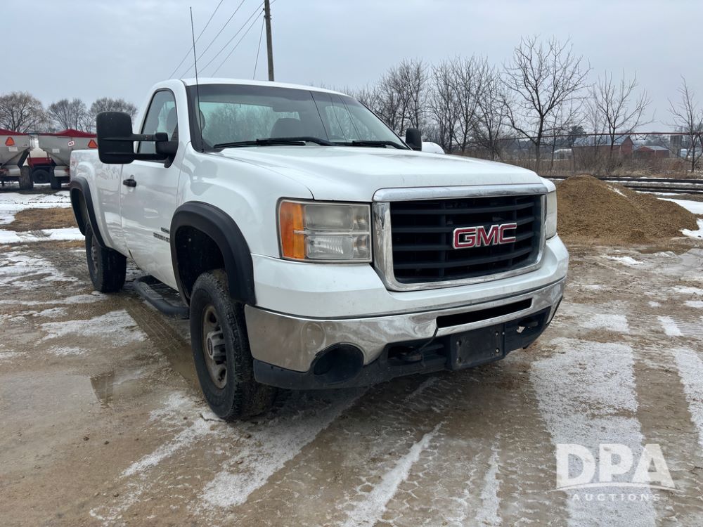 2008 GMC 2500HD Pickup (DR12899 Unit 22715), Dura Max diesel engine, Allison automatic transmission, 4X4, regular cab long box, NO tailgate, 5th wheel ball, rear ag bumper, nerf bar cab steps, AM/FM CD radio, cab heat/air conditioning, 265/75R16 tires, odometer reads 288,143 miles.