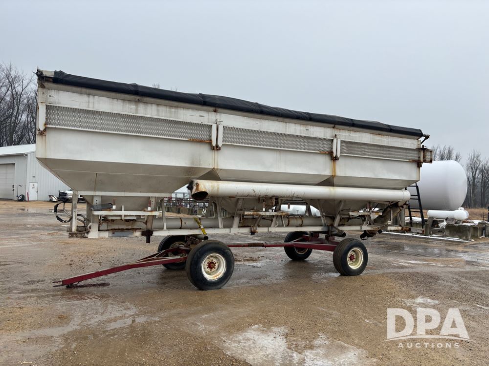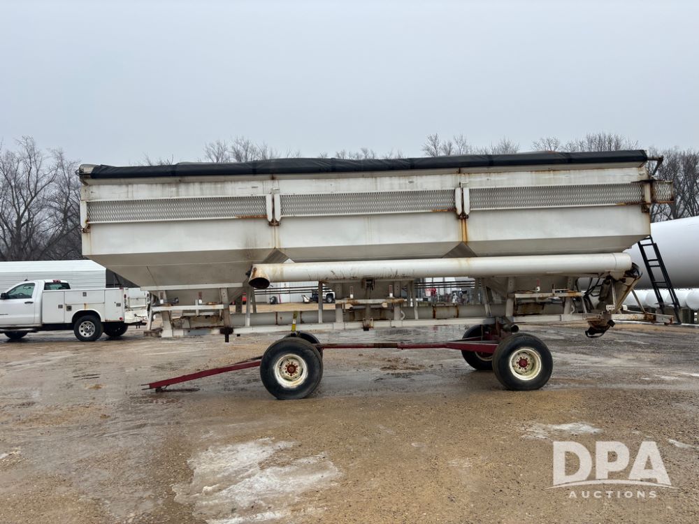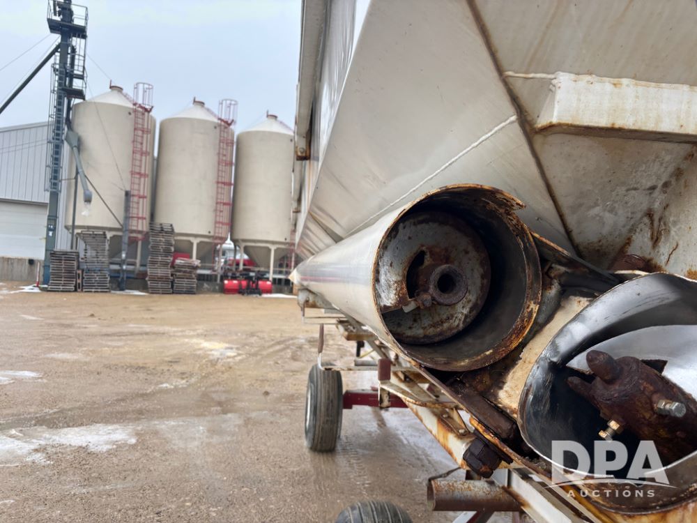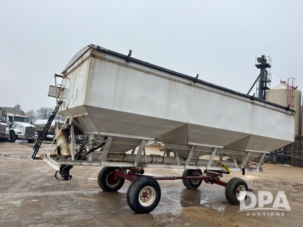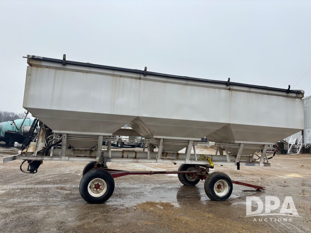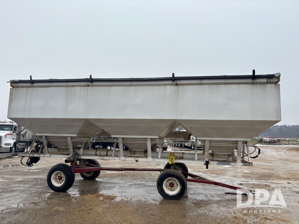 Dry Tender Box (DR12900), 3 compartment stainless steel hydraulic dry tender box, side discharge auger, roll over tarp, side catwalk,