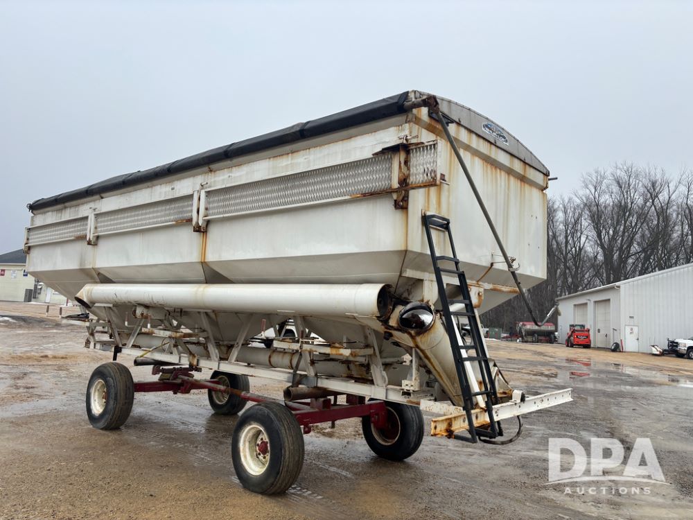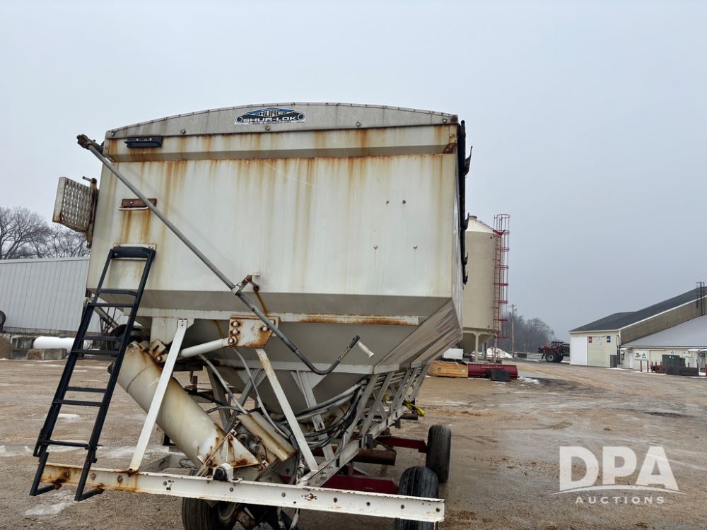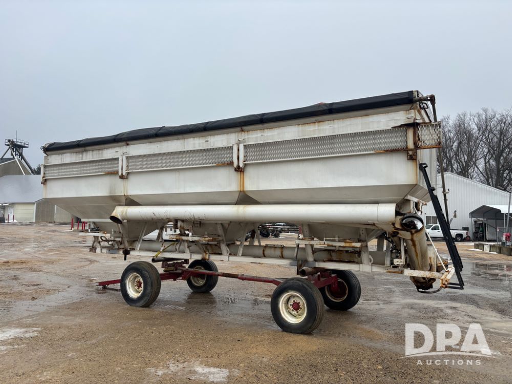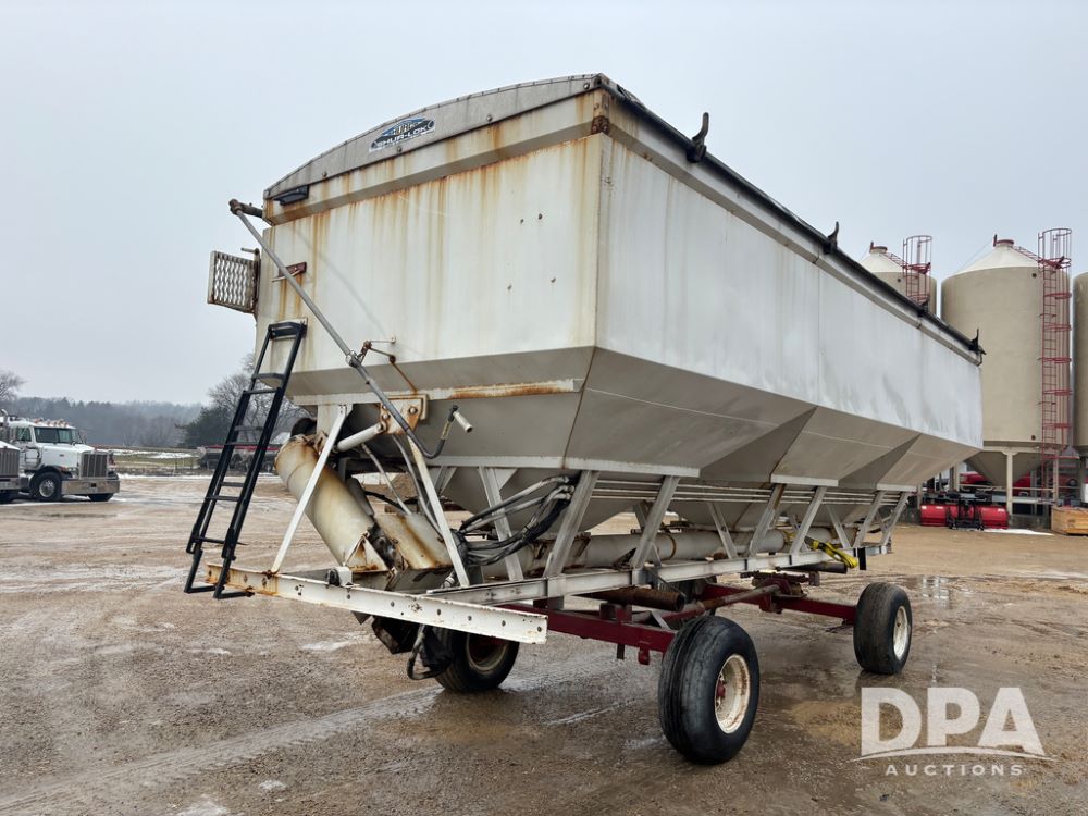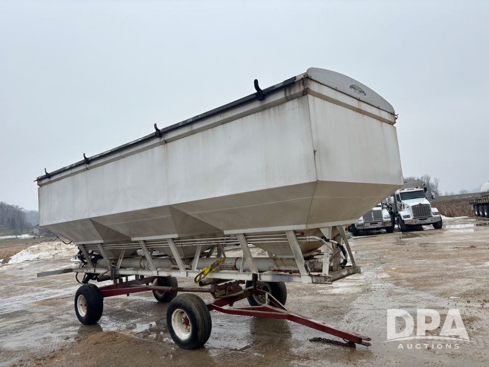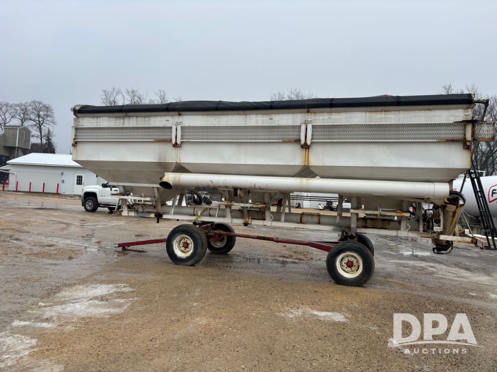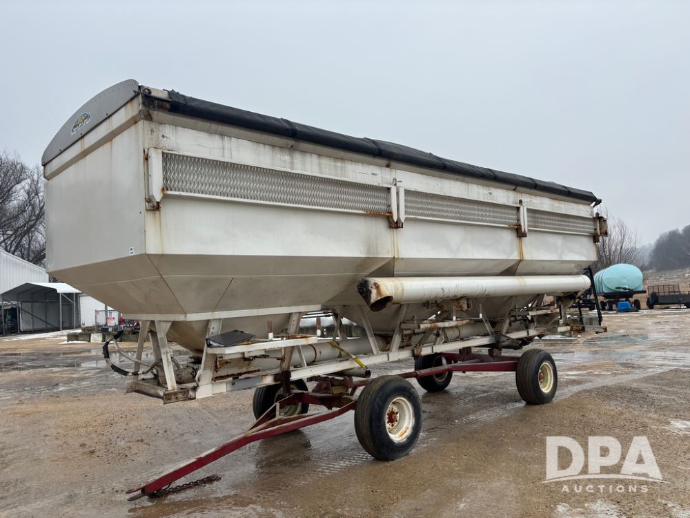 Dry Tender Box (DR12900), 3 compartment stainless steel hydraulic dry tender box, side discharge auger, roll over tarp, side catwalk,