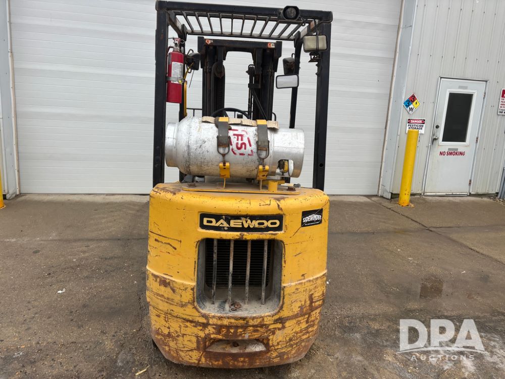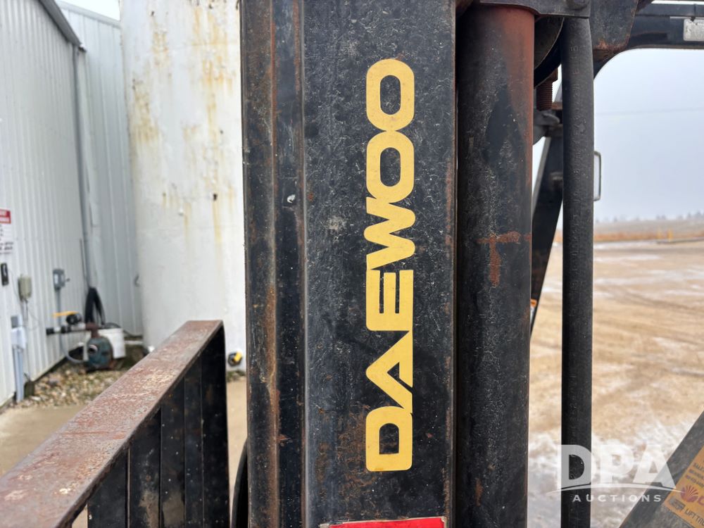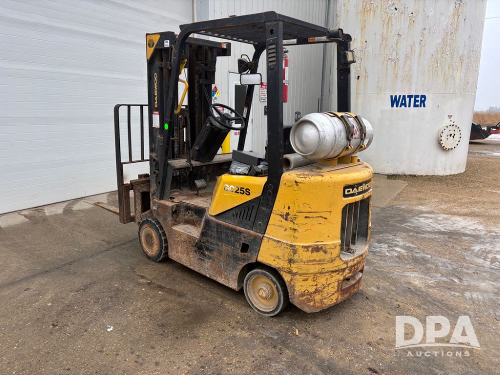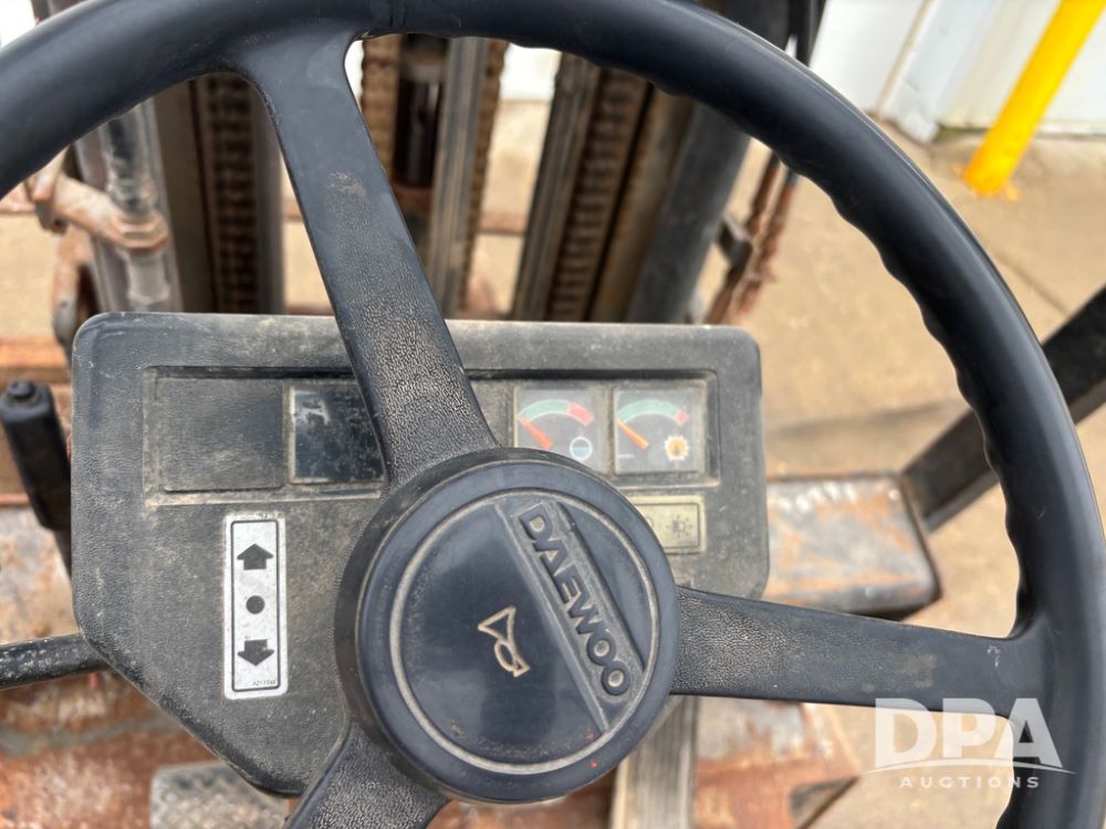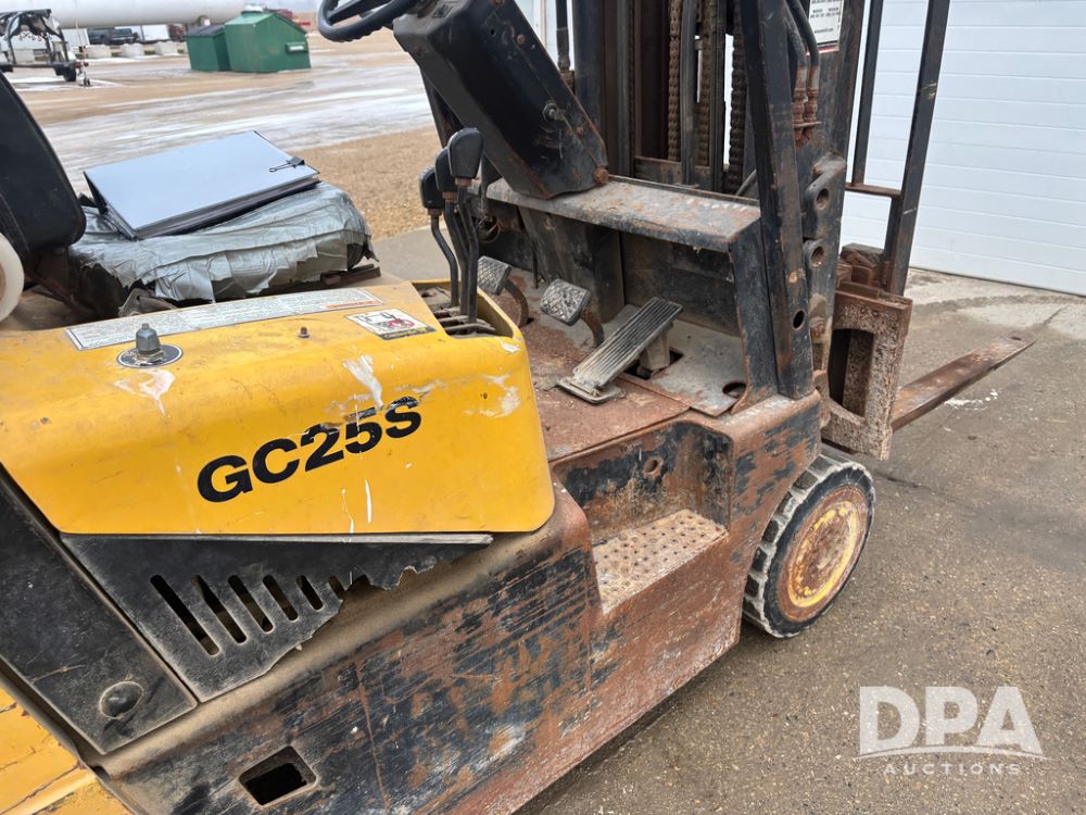 Daewoo GC25 Forklift (DR12919 Unit 0133), LP gas engine, shuttle shift drive, 3 stage mast, hydraulic side shift, solid tires.