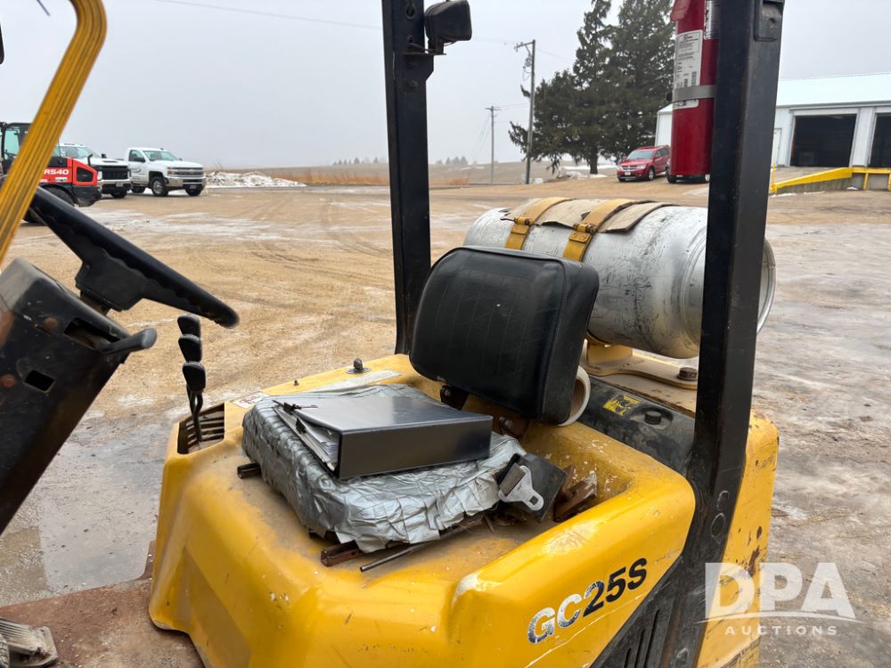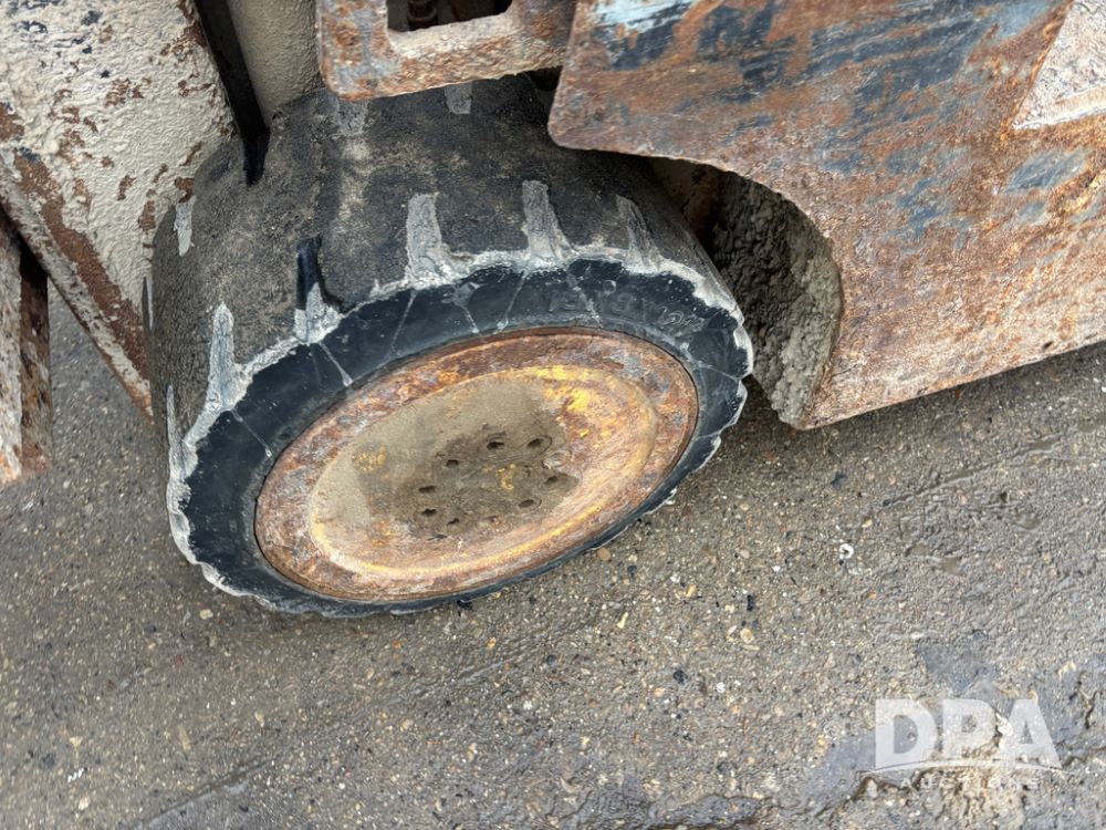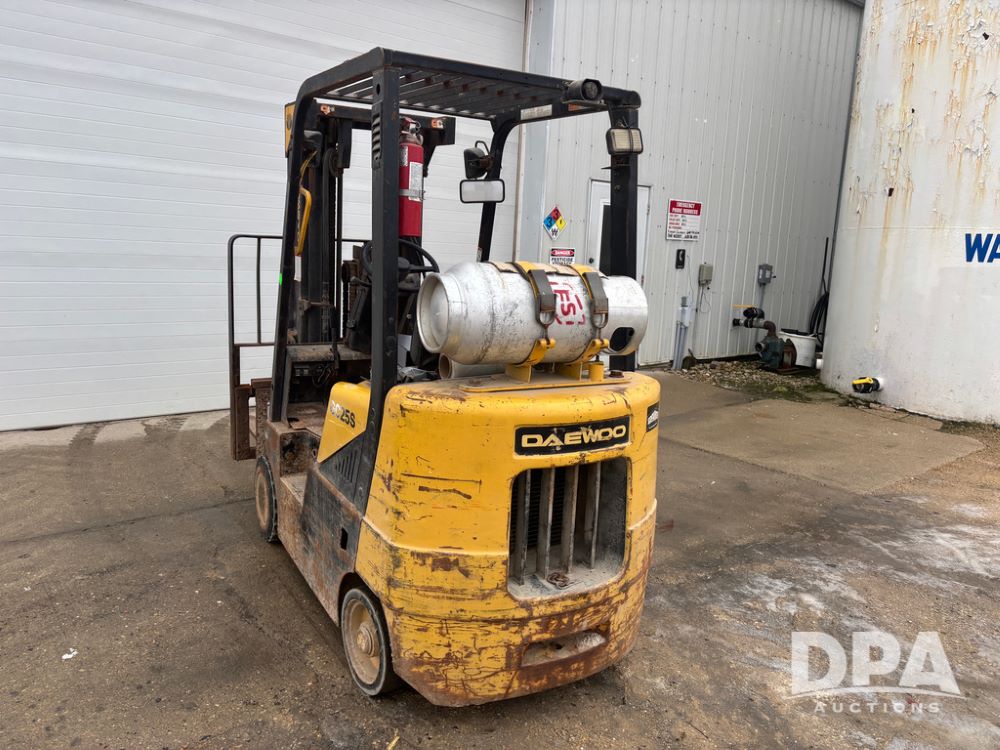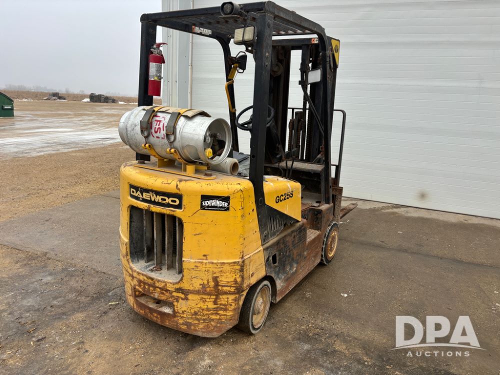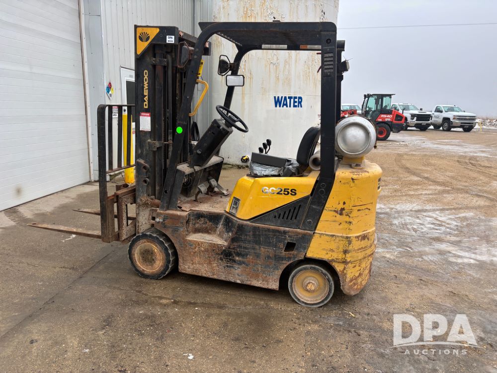 Daewoo GC25 Forklift (DR12919 Unit 0133), LP gas engine, shuttle shift drive, 3 stage mast, hydraulic side shift, solid tires.