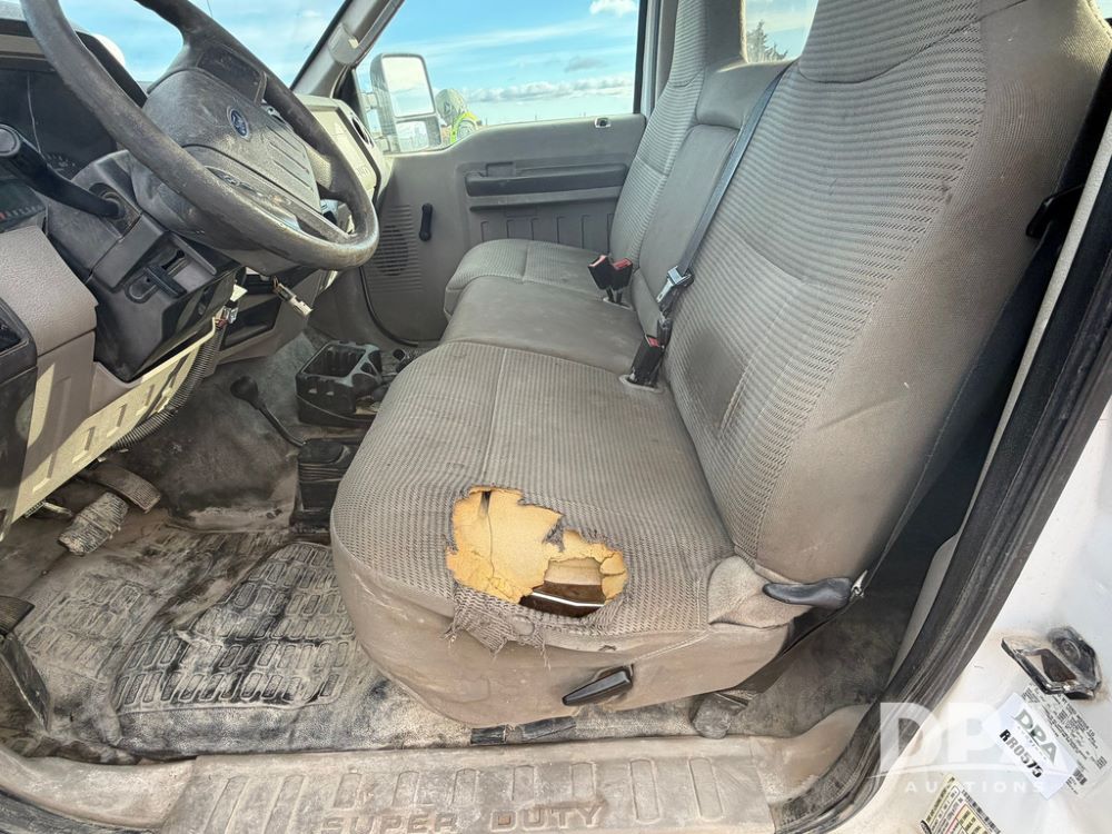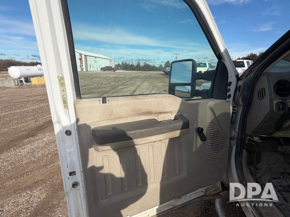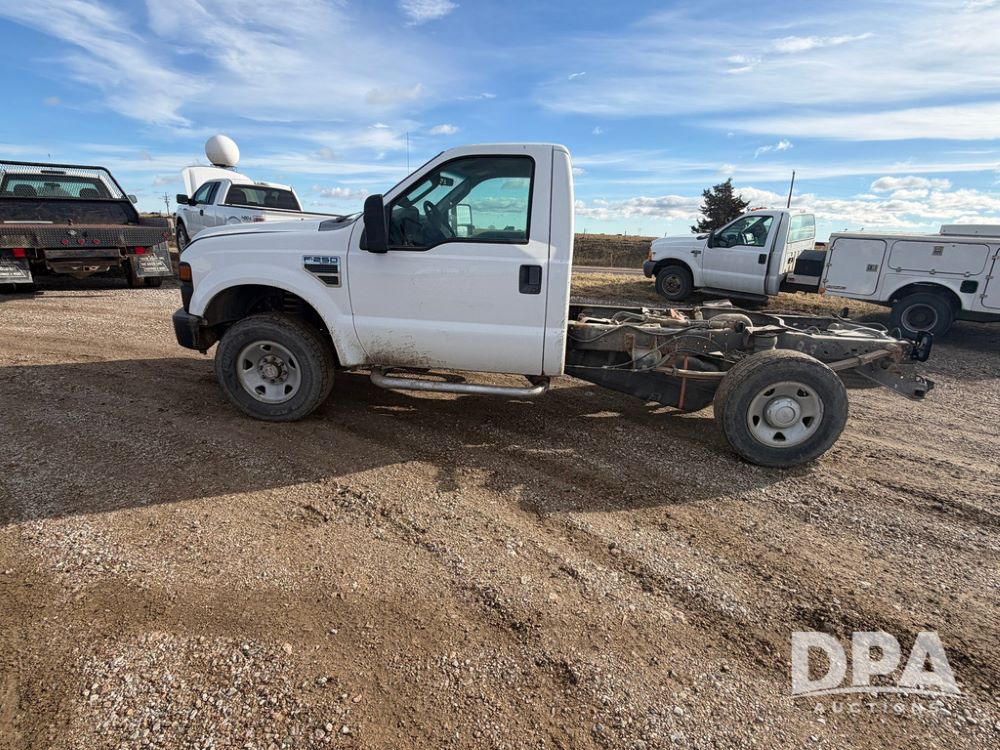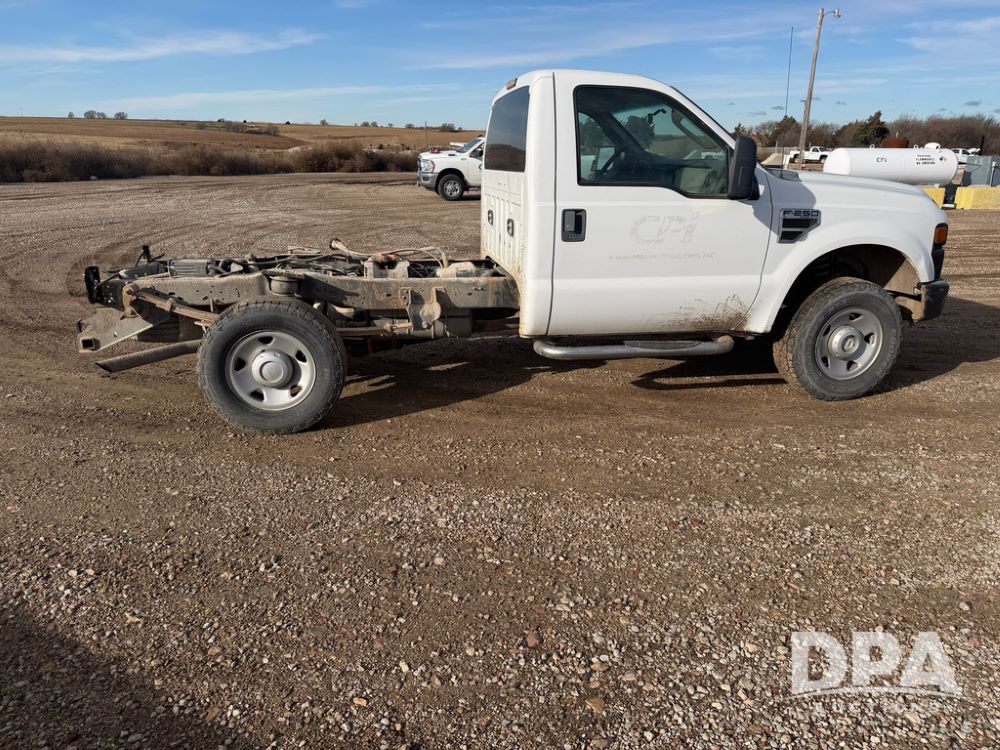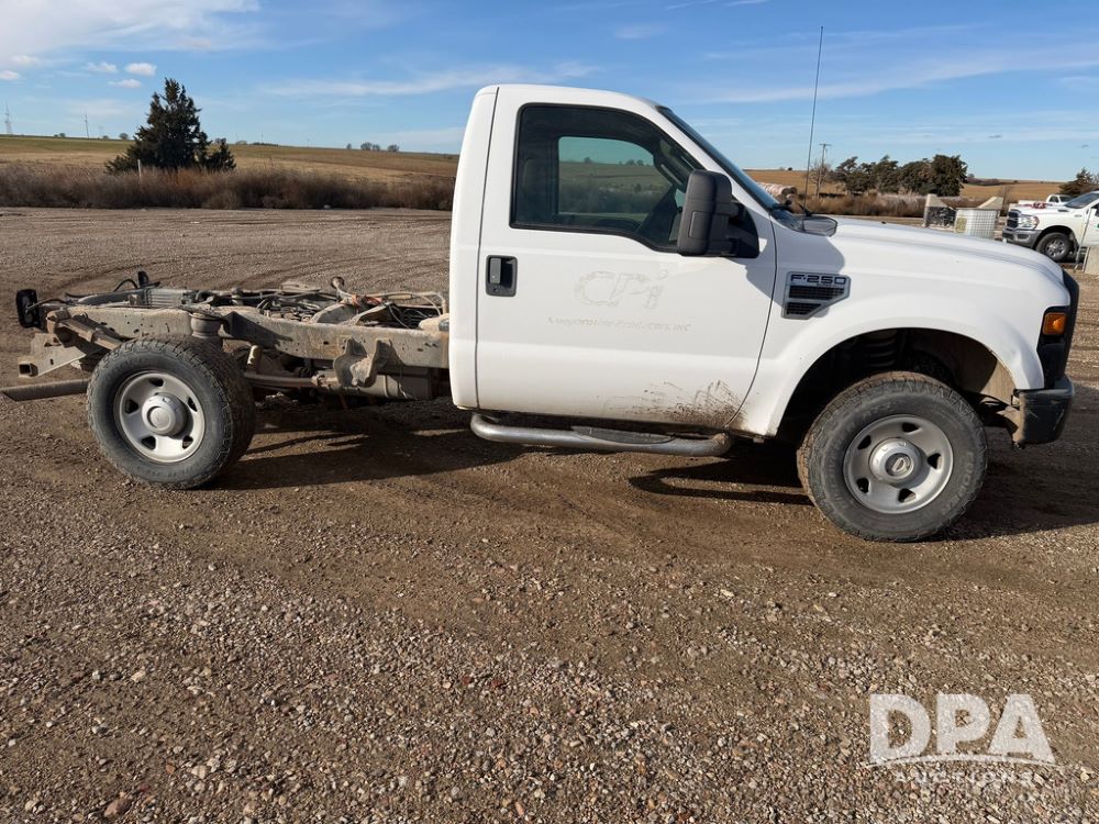 2009 Ford F-250 Super Duty XL Pickup (RR0575, Unit A68), 5.4L gas V-8 engine, automatic transmission, regular cab, 4X4, heat, air conditioning, AM/FM radio, rear air bags, chrome running boards, spare tire, receiver hitch, LT 265/70R17 tires, shows 129,329 miles.