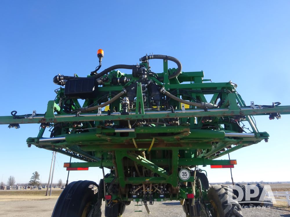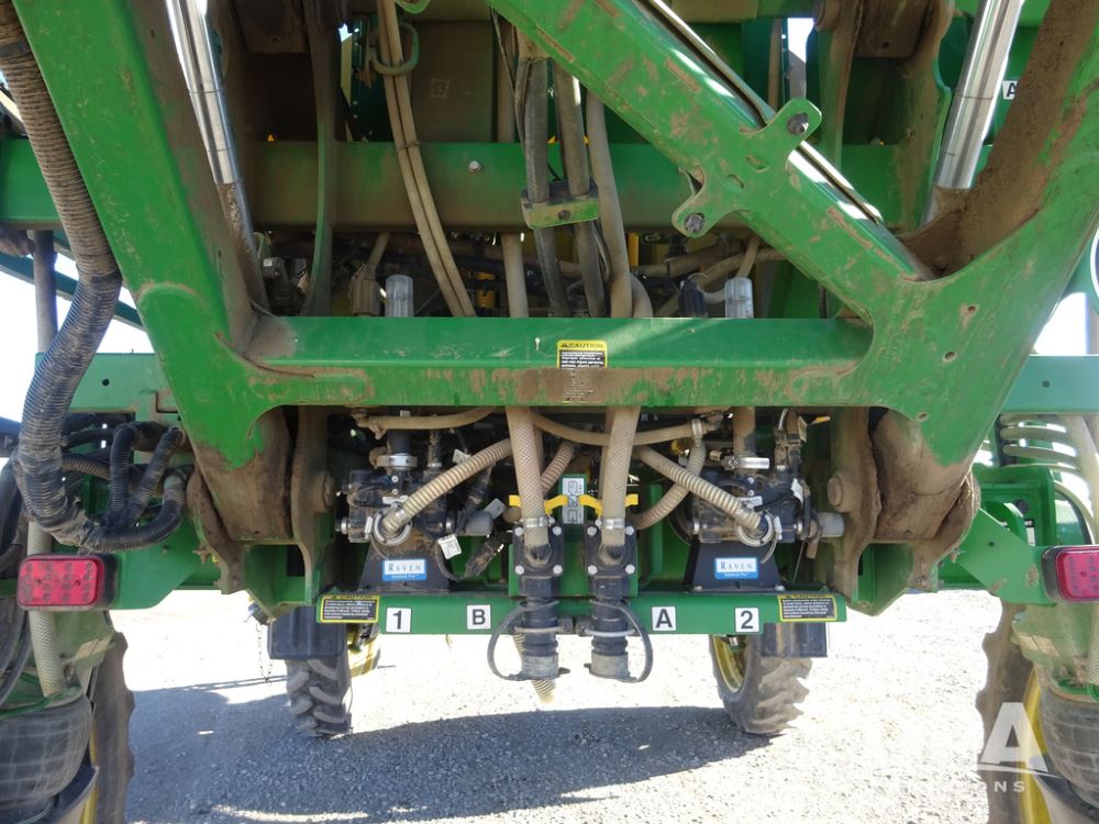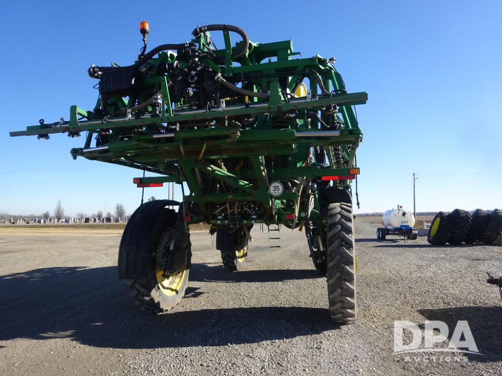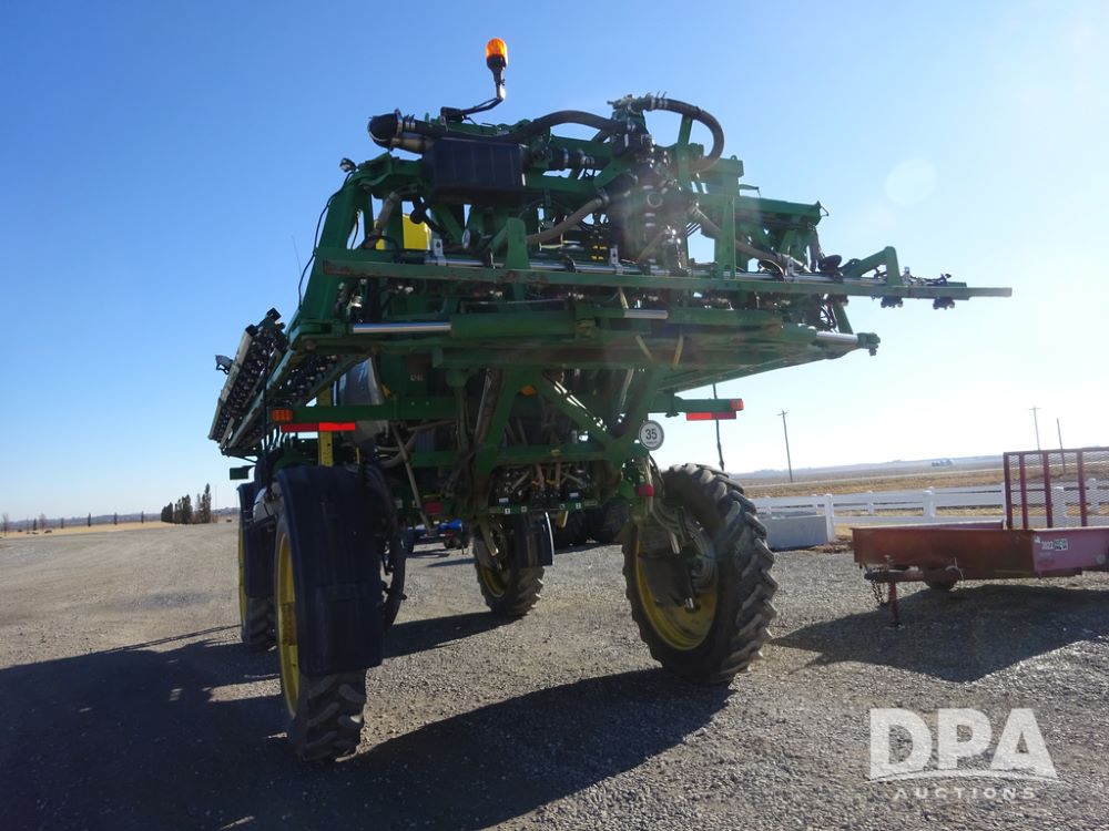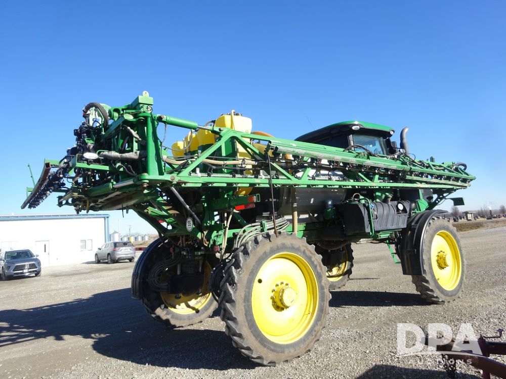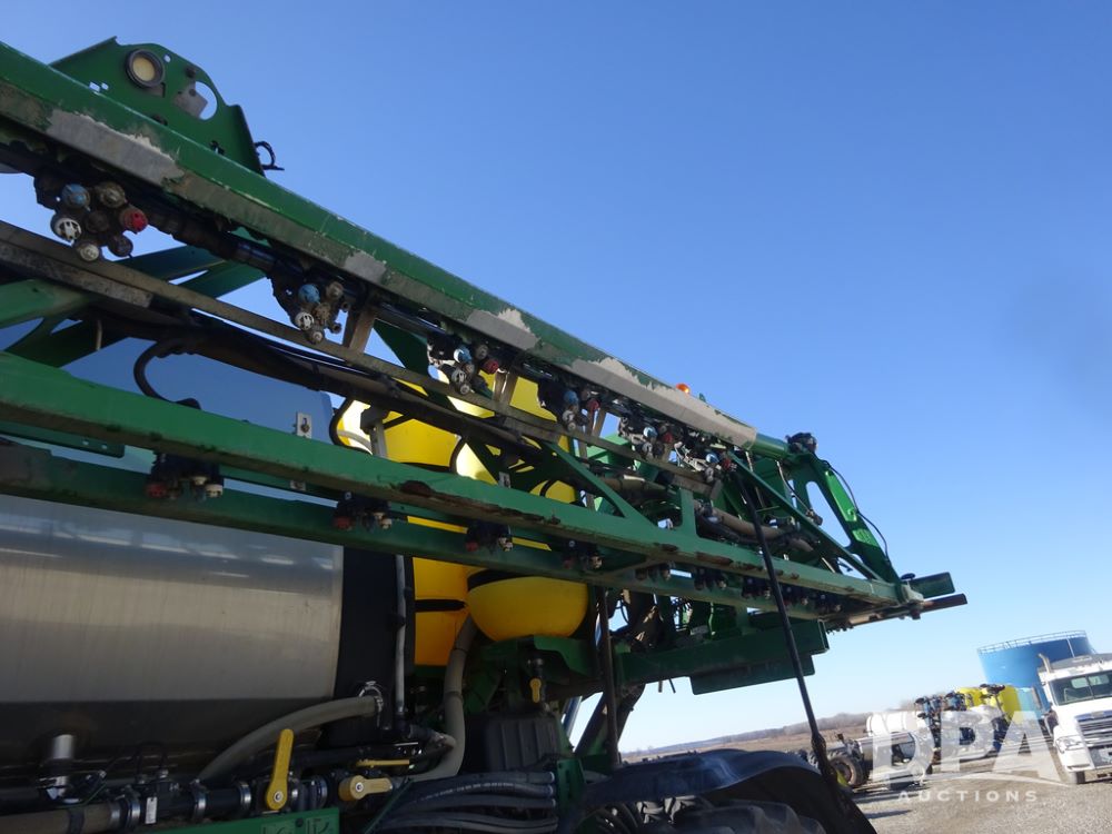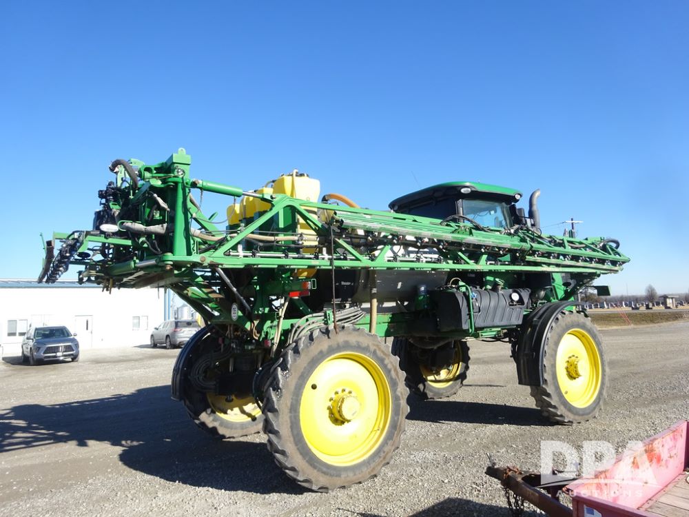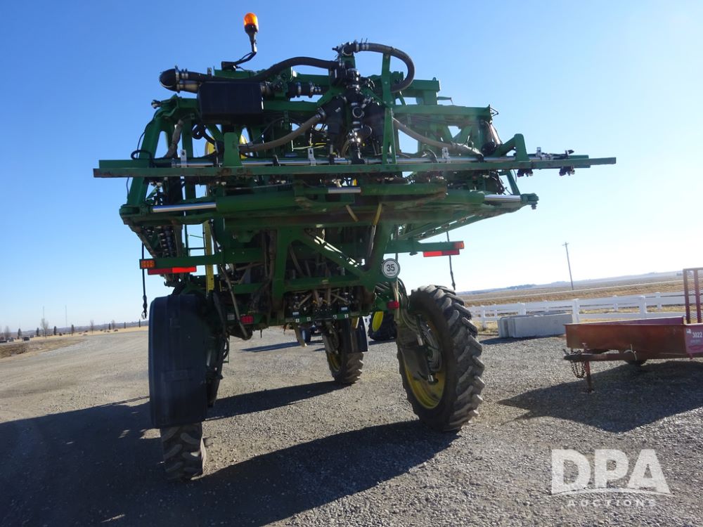 2020 John Deere R4038 Sprayer (PZ14298, Unit 3711), John Deere diesel engine (S/N RG6090U078377), hydrostatic transmission, air conditioning, heat, Am/Fm radio, leather seat, buddy seat, beacon lights, 1000 gallon stainless steel liquid system, 100' boom, rear poly rinse tank, 4 - 50 gallon poly direct injection tank, 2 - Raven Sidekick Pro pumps, stainless steel chemical inductor, automatic solution control, front fill, Firestone VF380/90R46 tires, fenders, rear camera, John Deere StarFire 6000 globe, John Deere monitor, shows 3,287 hours.
