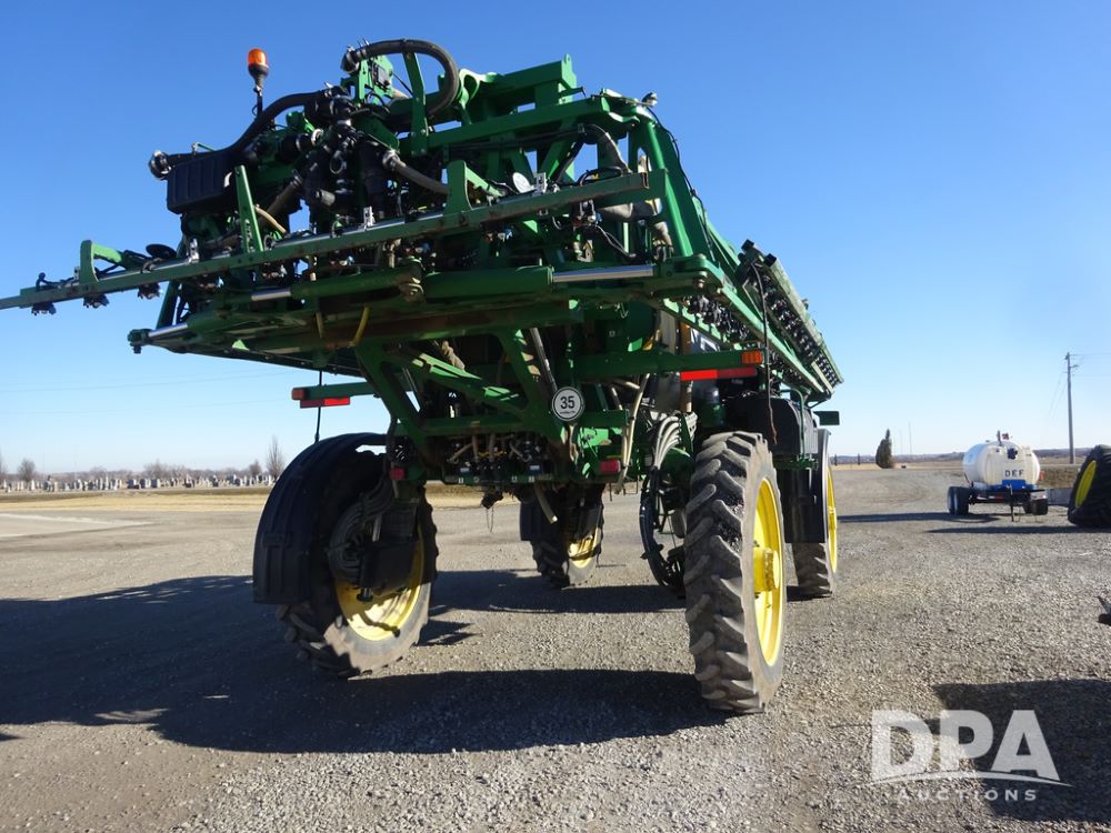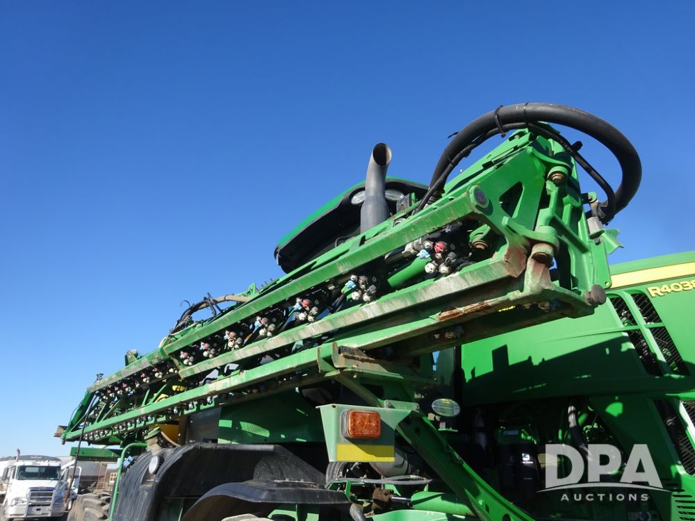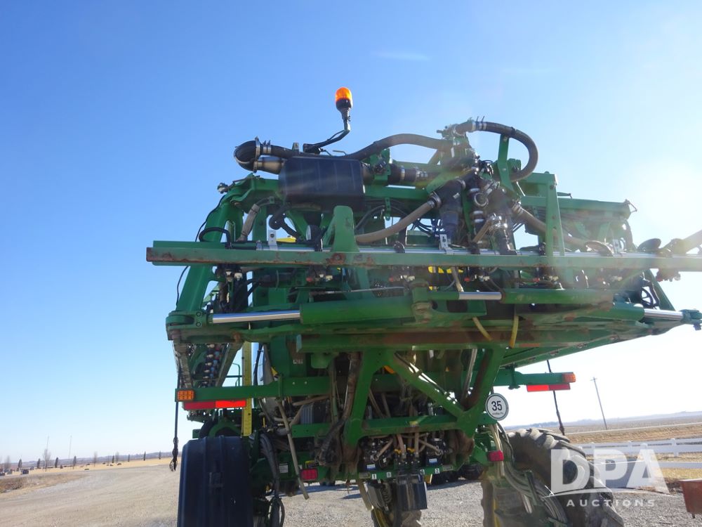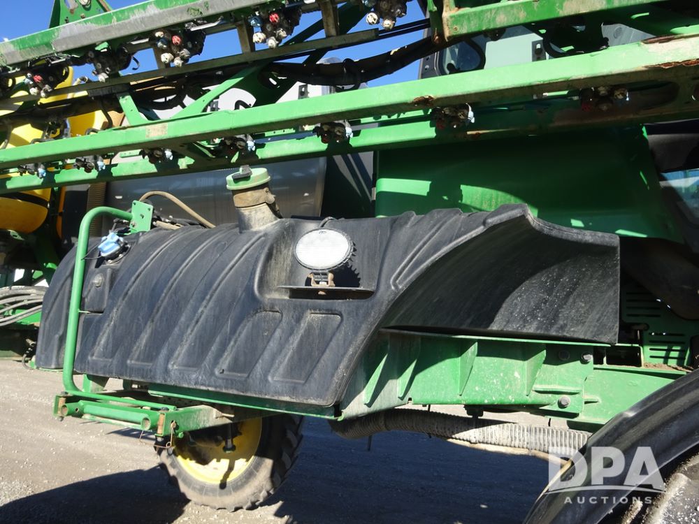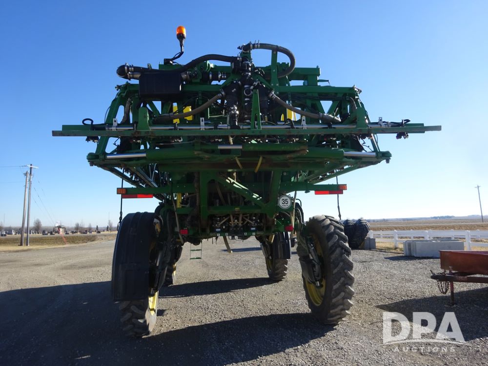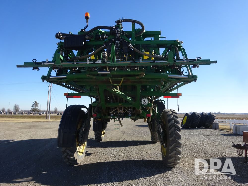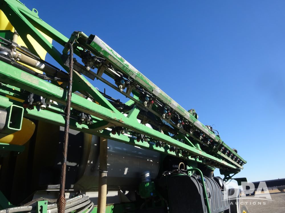 2020 John Deere R4038 Sprayer (PZ14298, Unit 3711), John Deere diesel engine (S/N RG6090U078377), hydrostatic transmission, air conditioning, heat, Am/Fm radio, leather seat, buddy seat, beacon lights, 1000 gallon stainless steel liquid system, 100' boom, rear poly rinse tank, 4 - 50 gallon poly direct injection tank, 2 - Raven Sidekick Pro pumps, stainless steel chemical inductor, automatic solution control, front fill, Firestone VF380/90R46 tires, fenders, rear camera, John Deere StarFire 6000 globe, John Deere monitor, shows 3,287 hours.