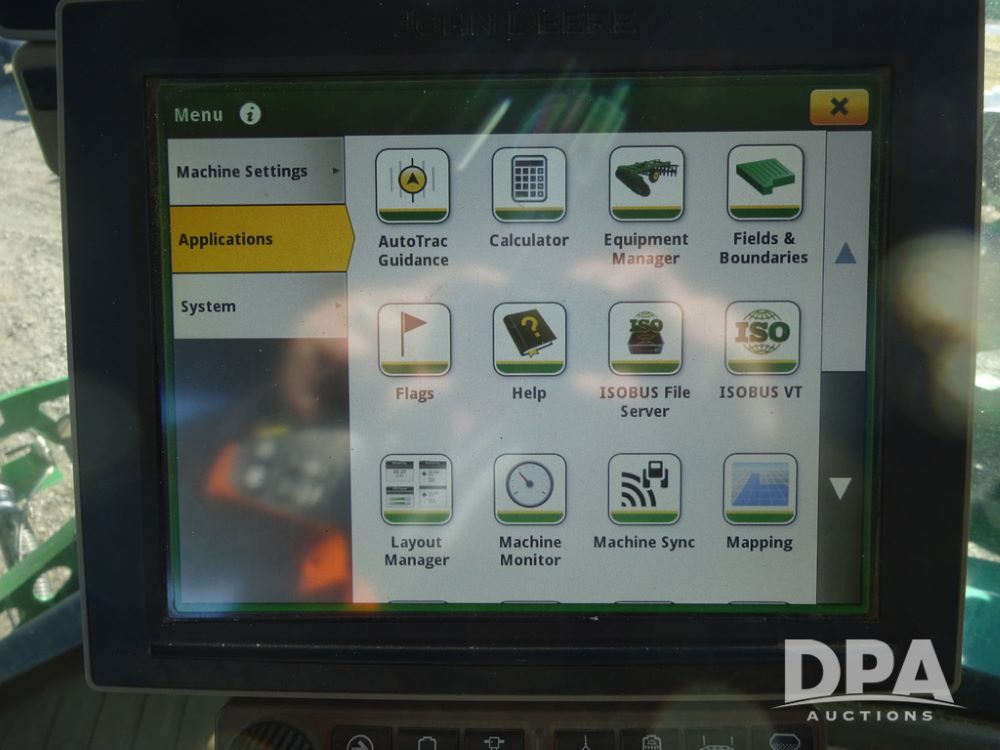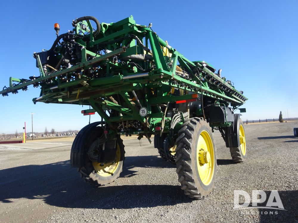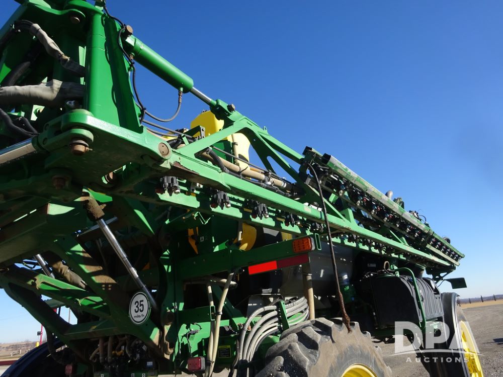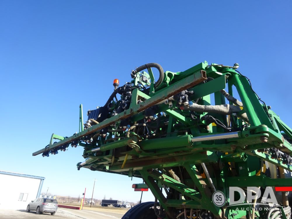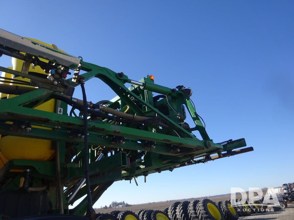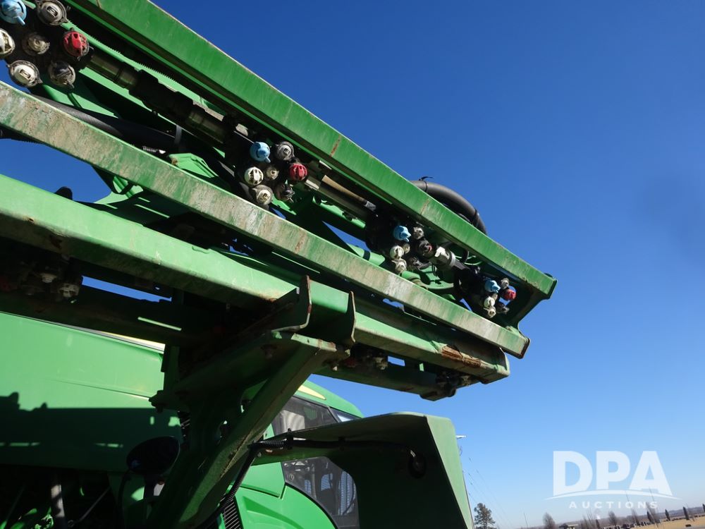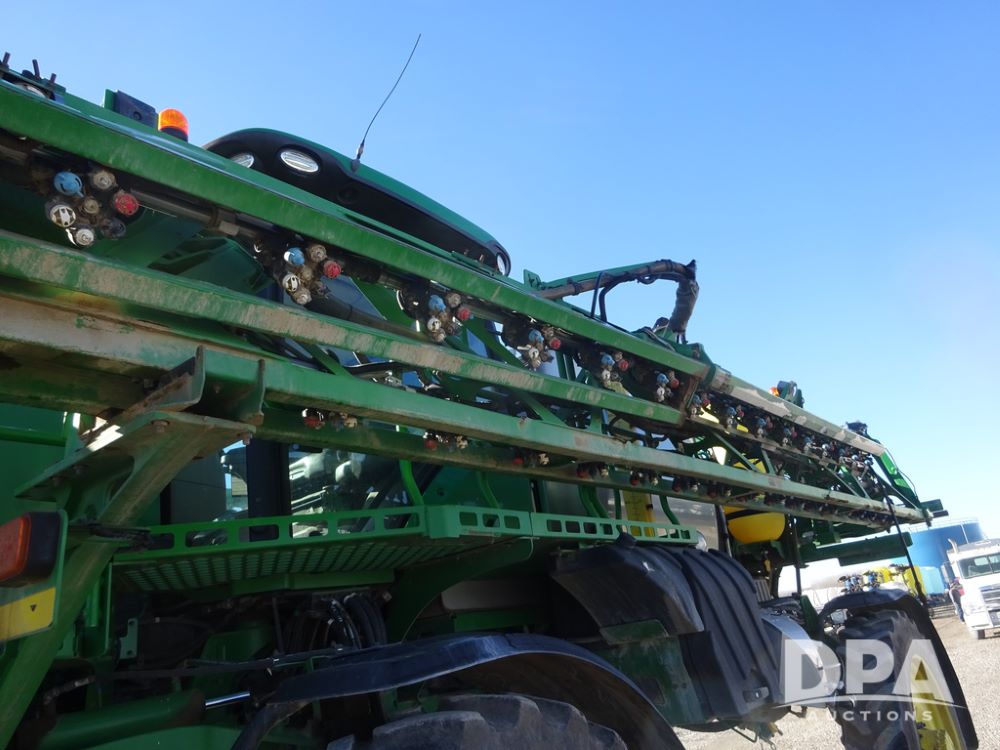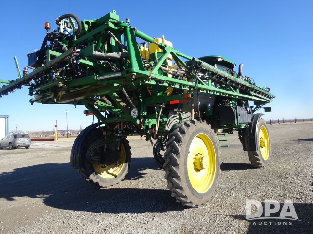 2020 John Deere R4038 Sprayer (PZ14298, Unit 3711), John Deere diesel engine (S/N RG6090U078377), hydrostatic transmission, air conditioning, heat, Am/Fm radio, leather seat, buddy seat, beacon lights, 1000 gallon stainless steel liquid system, 100' boom, rear poly rinse tank, 4 - 50 gallon poly direct injection tank, 2 - Raven Sidekick Pro pumps, stainless steel chemical inductor, automatic solution control, front fill, Firestone VF380/90R46 tires, fenders, rear camera, John Deere StarFire 6000 globe, John Deere monitor, shows 3,287 hours.