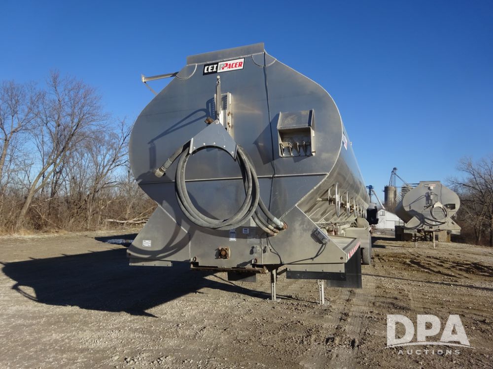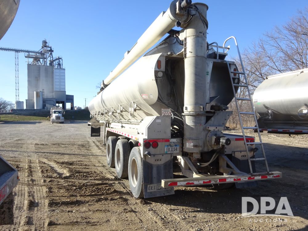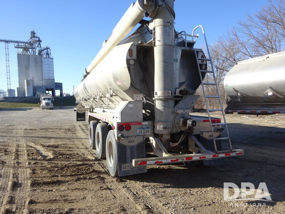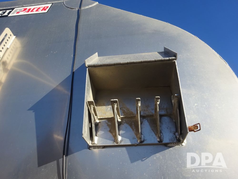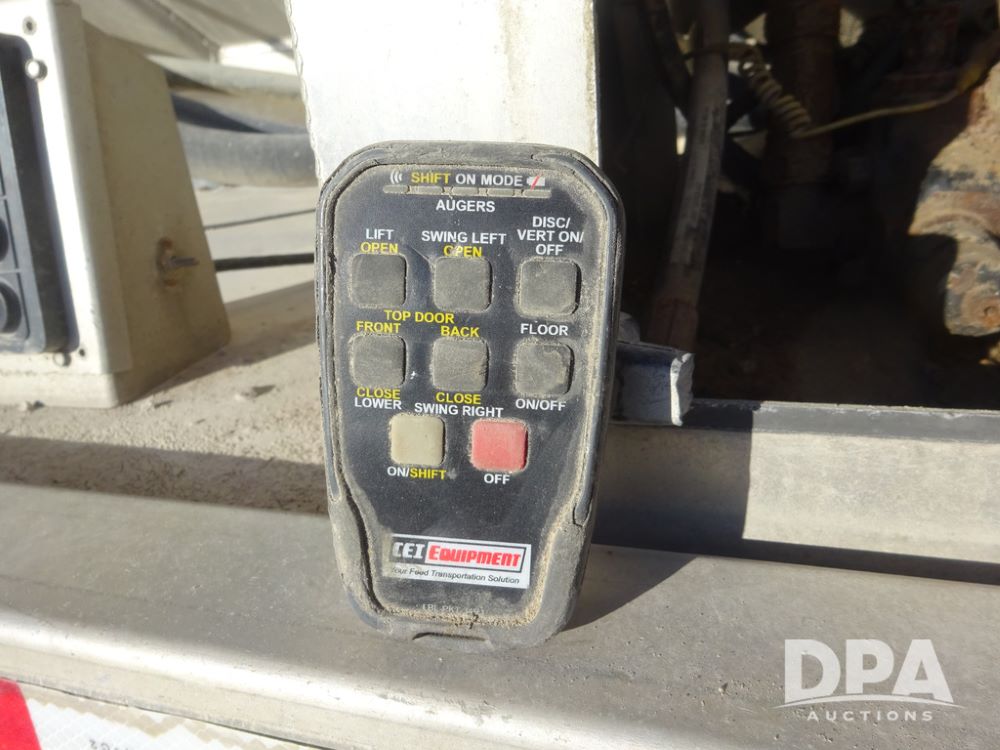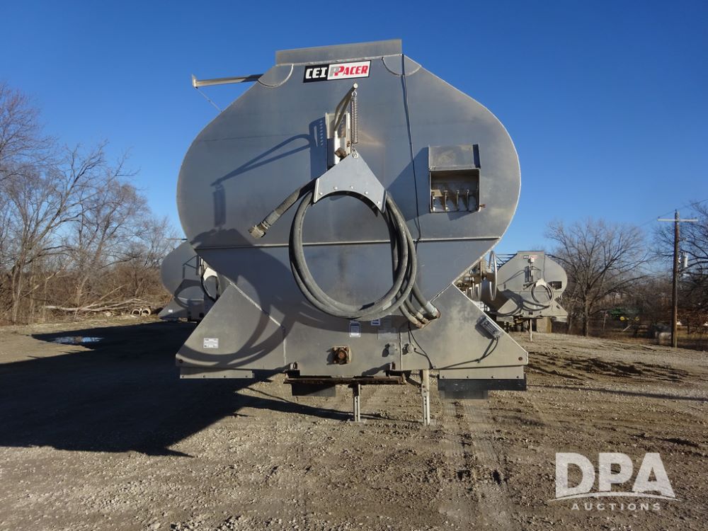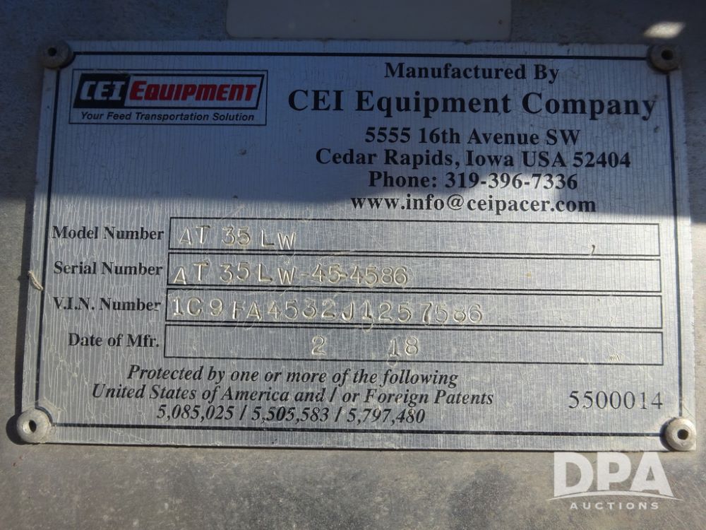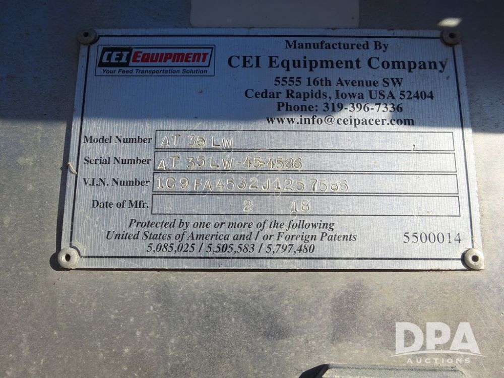 2018 CEI Pacer Feed Trailer (PZ14303, Unit 1562), 2018 CEI Pacer model AT35LW 9 compartment aluminum feed trailer (S/N AT35LW-45-4586), rear overhead discharge auger system, triple axle, air ride suspension, 11R22.5 tires, aluminum rims, hand held remote.