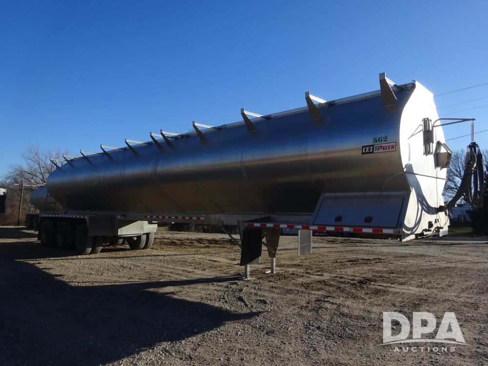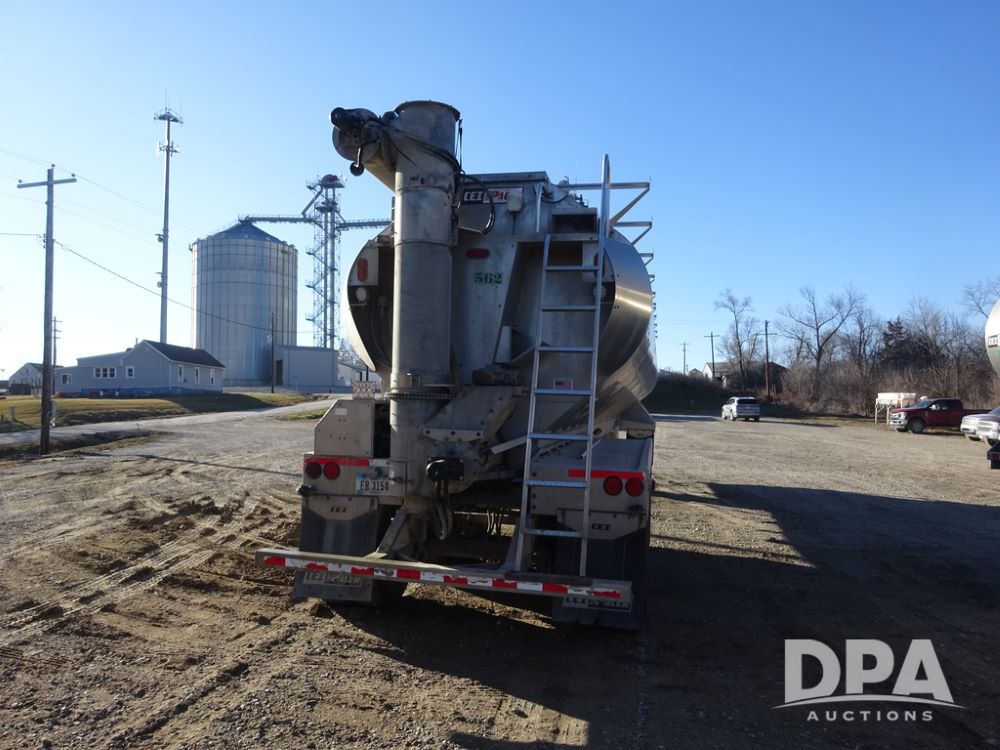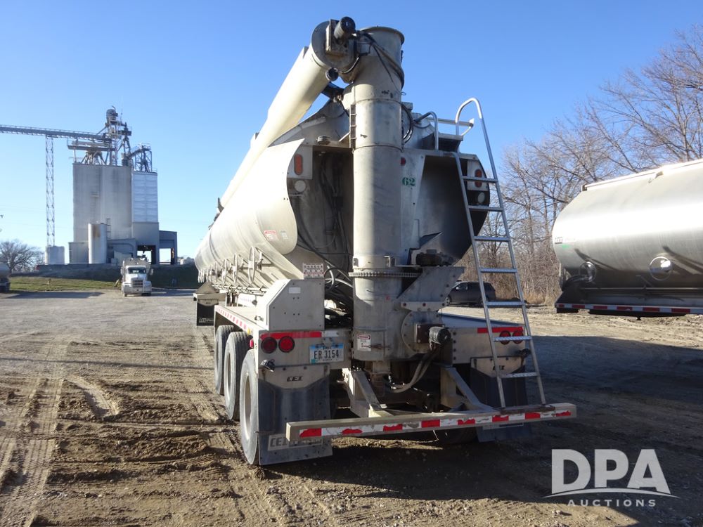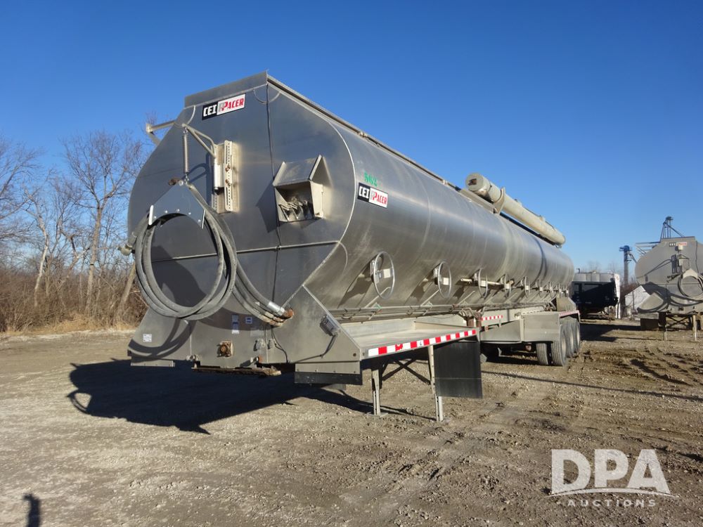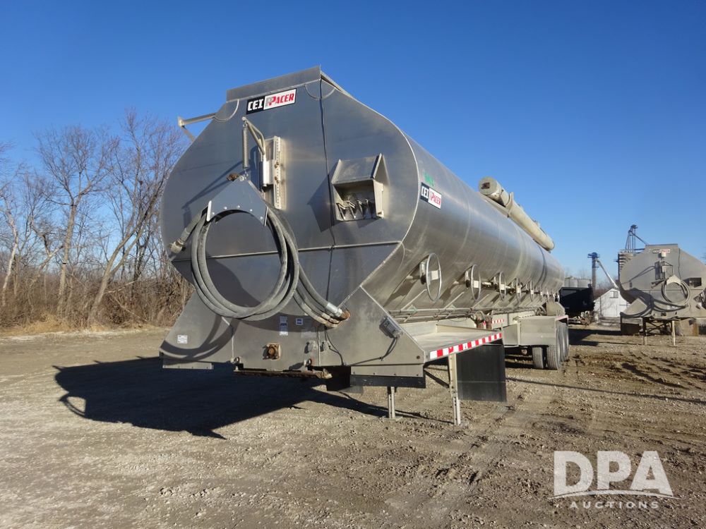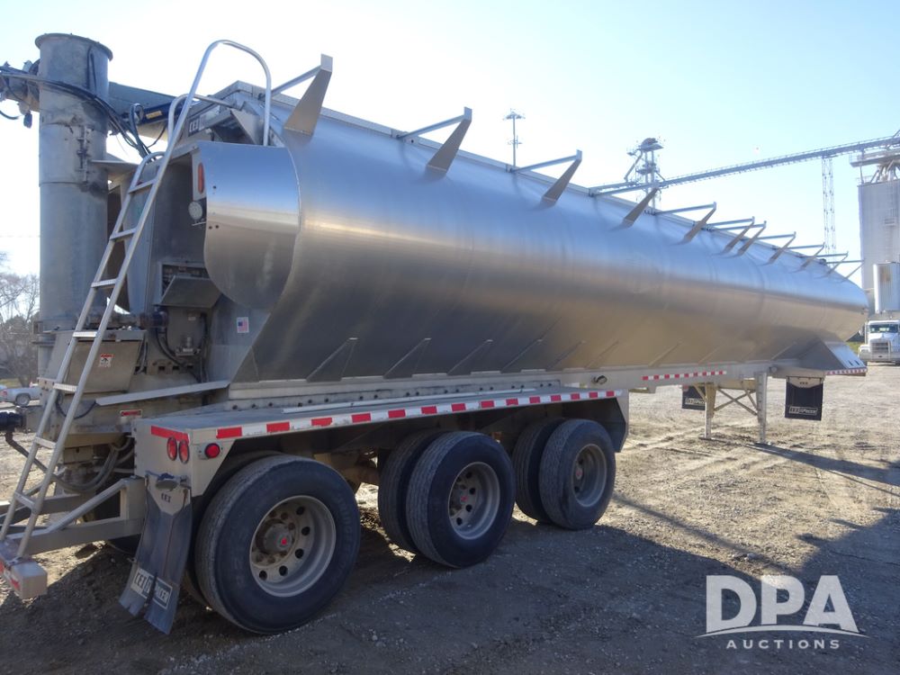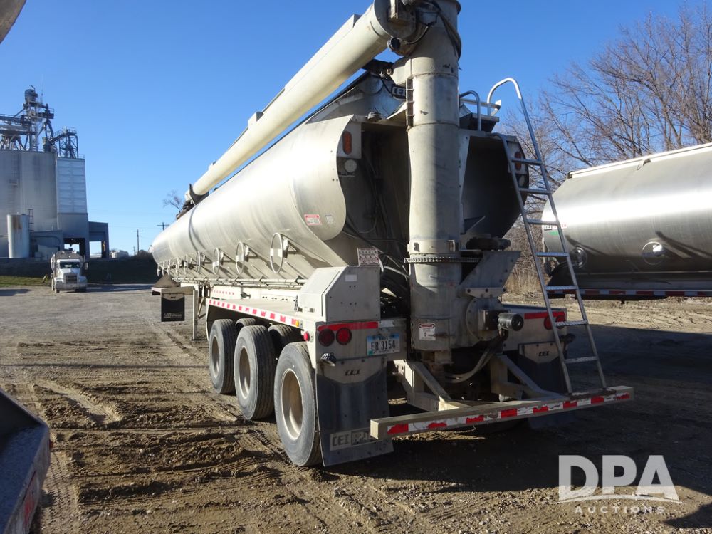 2018 CEI Pacer Feed Trailer (PZ14303, Unit 1562), 2018 CEI Pacer model AT35LW 9 compartment aluminum feed trailer (S/N AT35LW-45-4586), rear overhead discharge auger system, triple axle, air ride suspension, 11R22.5 tires, aluminum rims, hand held remote.