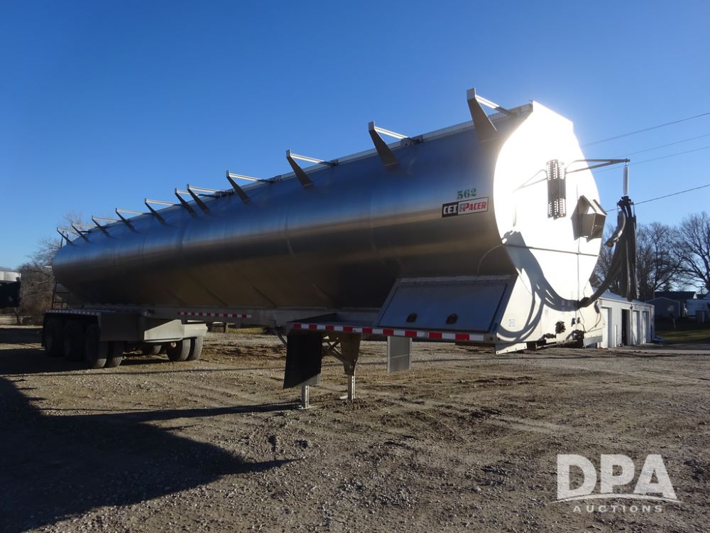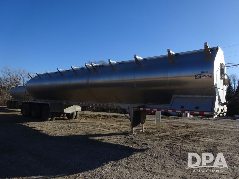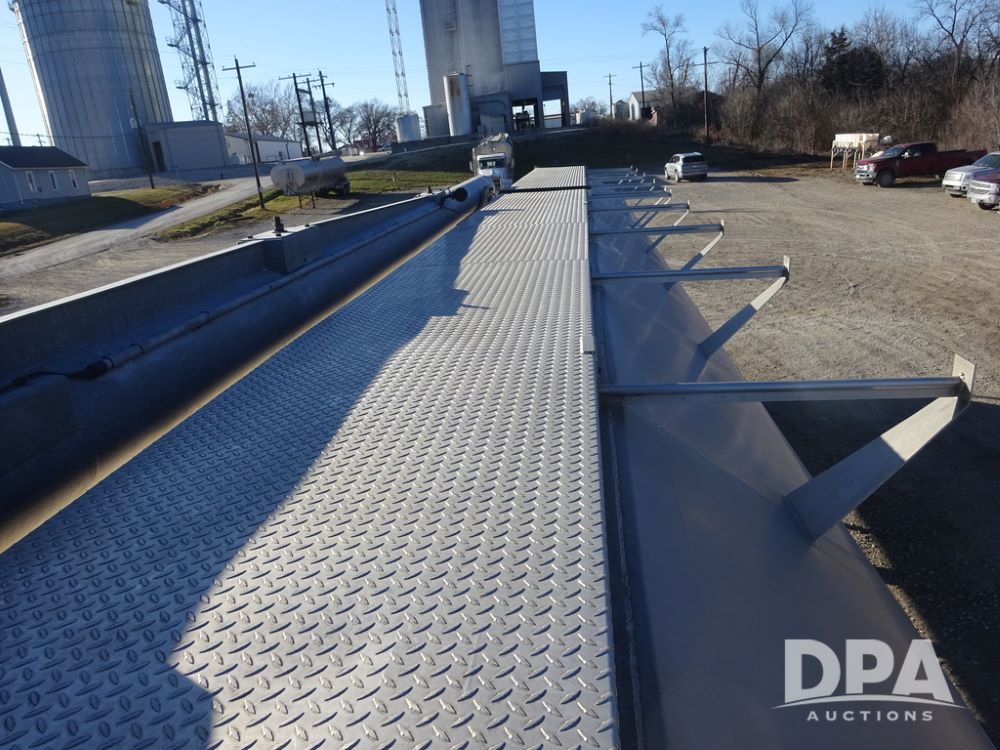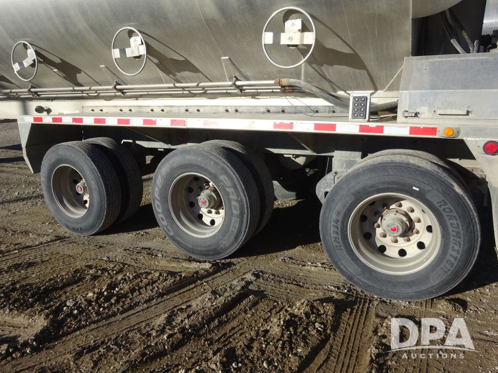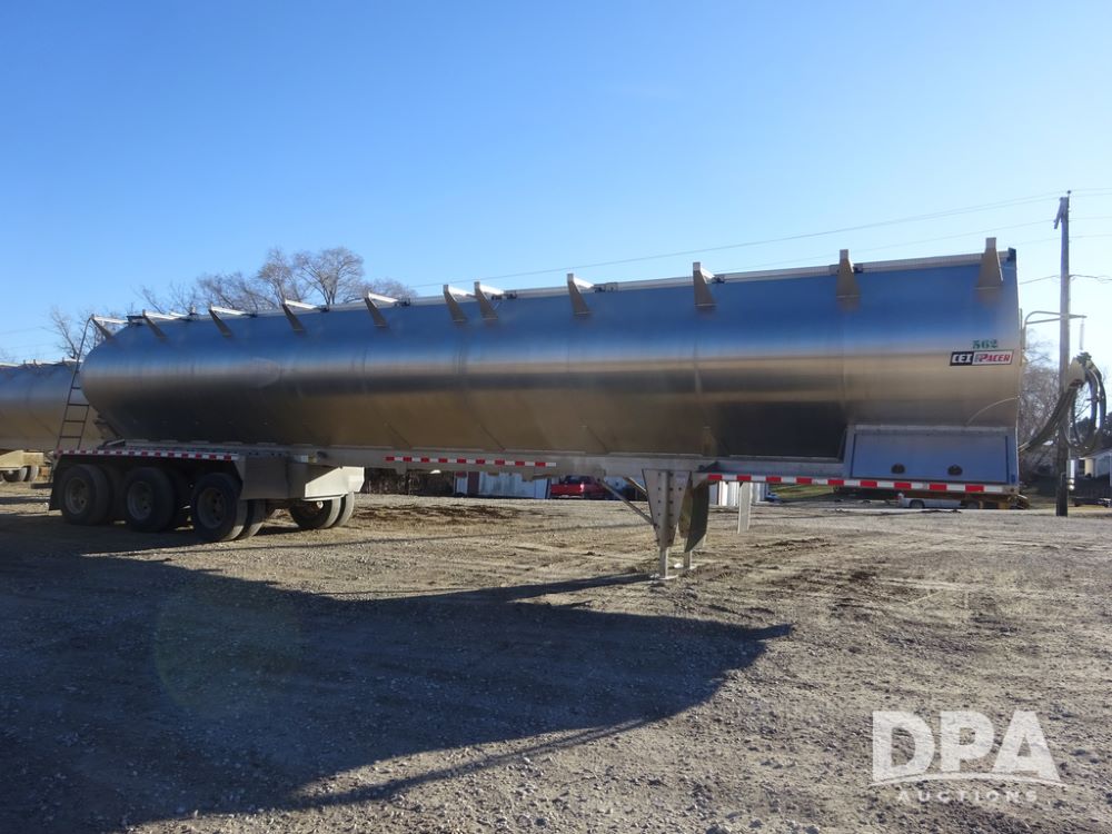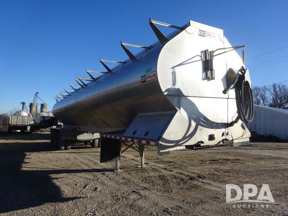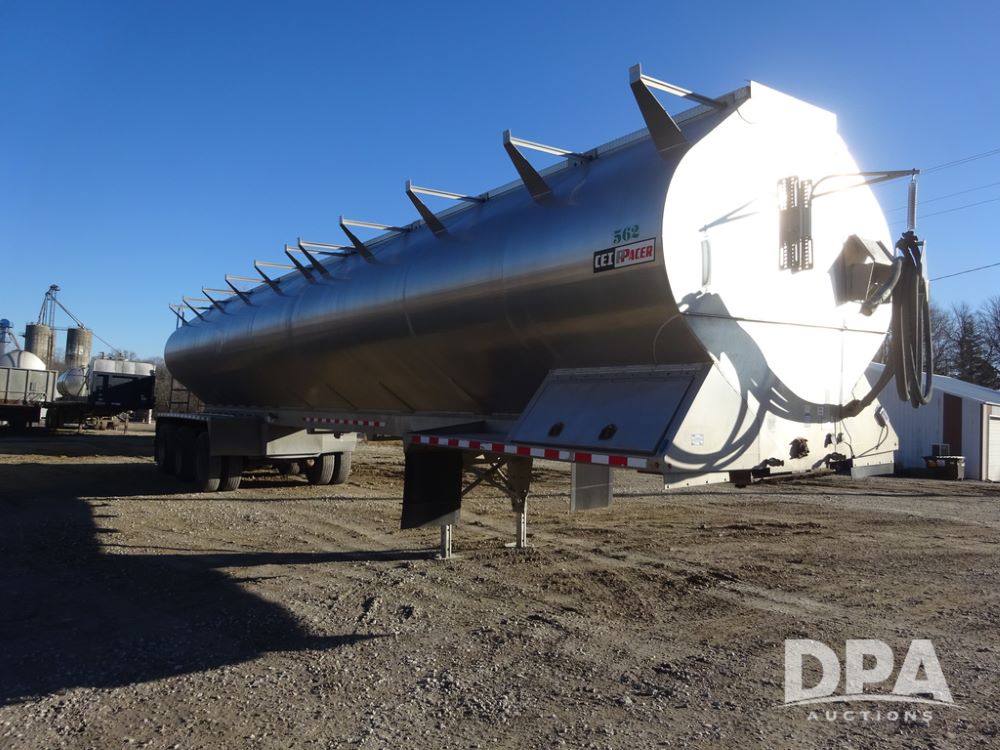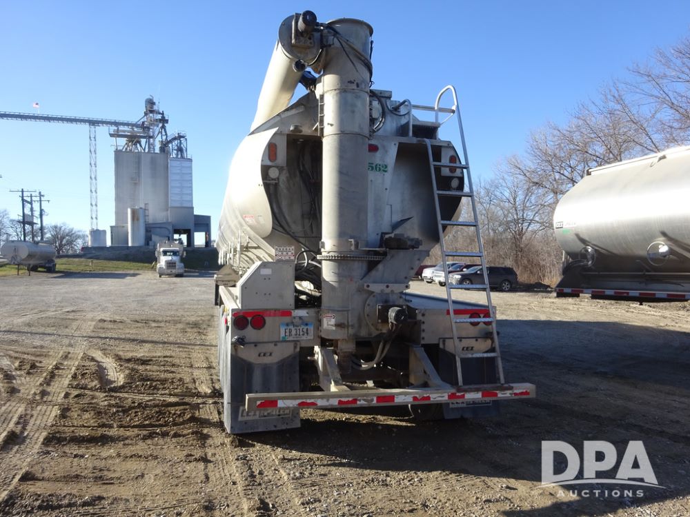 2018 CEI Pacer Feed Trailer (PZ14303, Unit 1562), 2018 CEI Pacer model AT35LW 9 compartment aluminum feed trailer (S/N AT35LW-45-4586), rear overhead discharge auger system, triple axle, air ride suspension, 11R22.5 tires, aluminum rims, hand held remote.