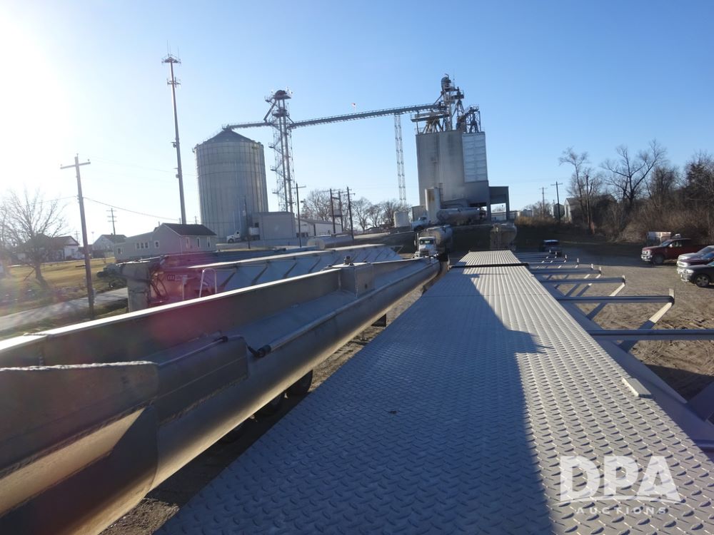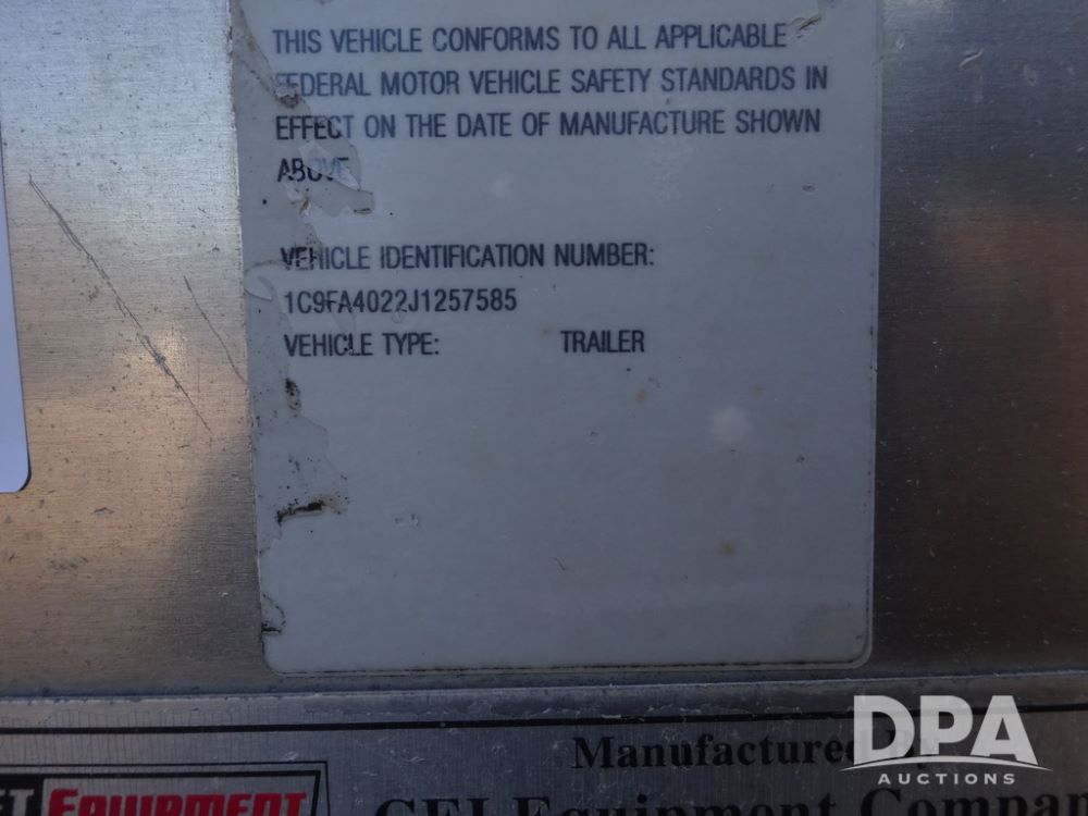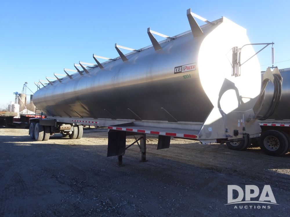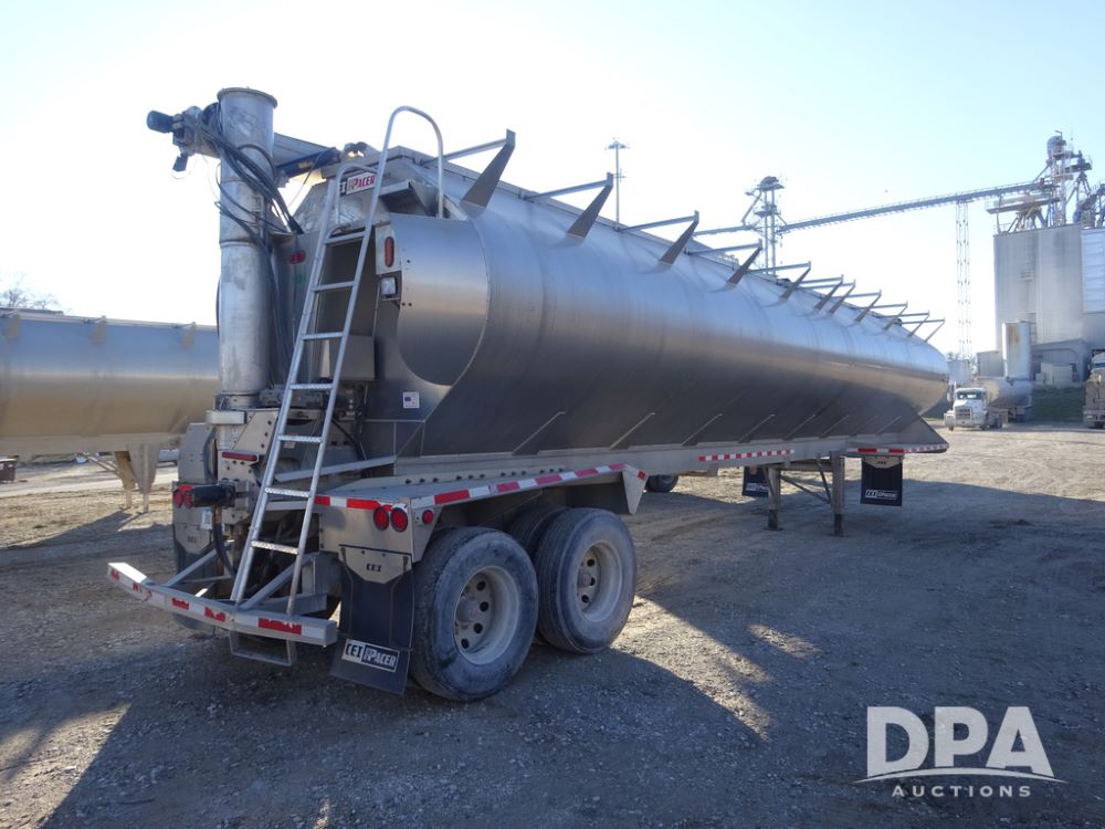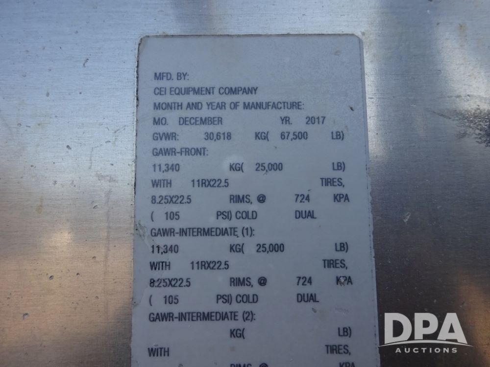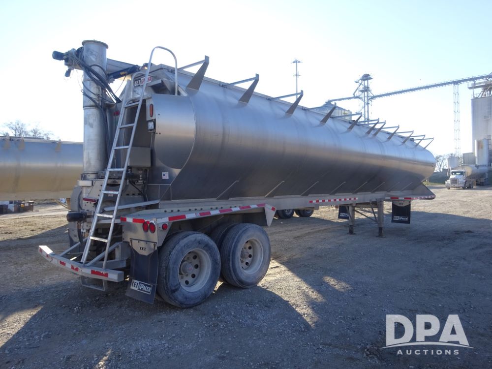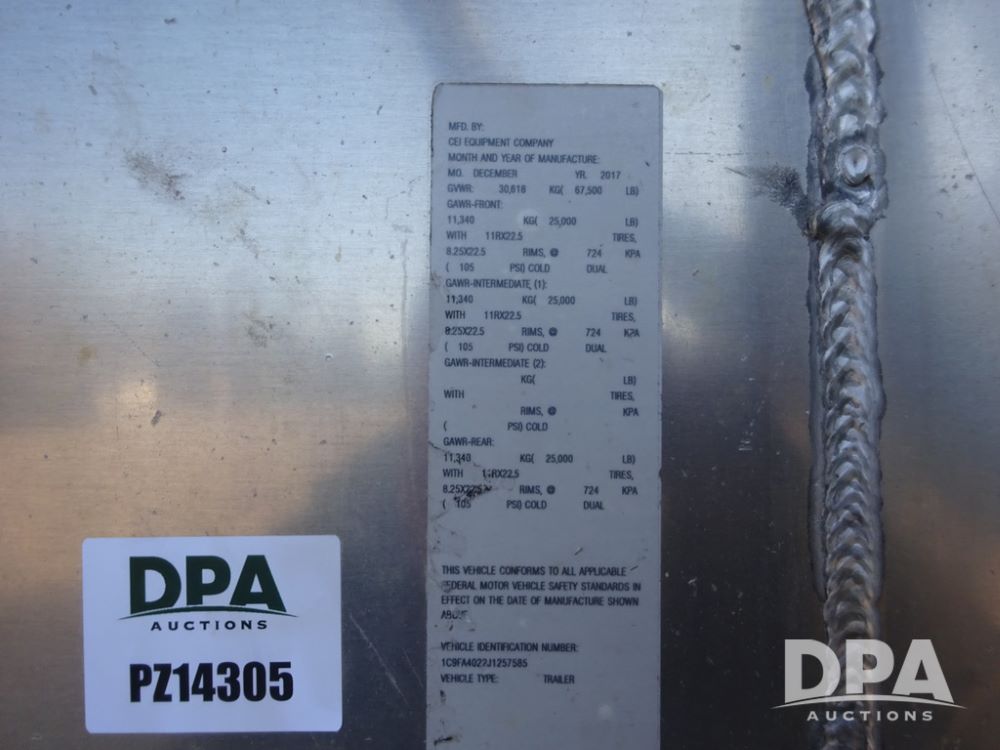 2018 CEI Pacer Feed Trailer (PZ14305, Unit 1004), 2018 CEI Pacer model AT35LW 9 compartment aluminum feed trailer (S/N AT35LW-40.5-4585), rear overhead discharge auger system, tandem axle, air ride suspension, 11R22.5 tires, aluminum rims, hand held remote.