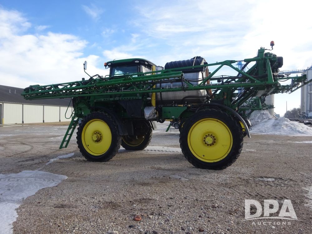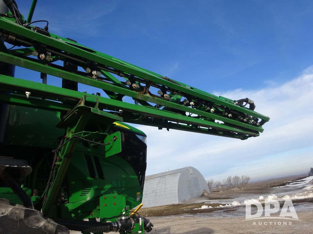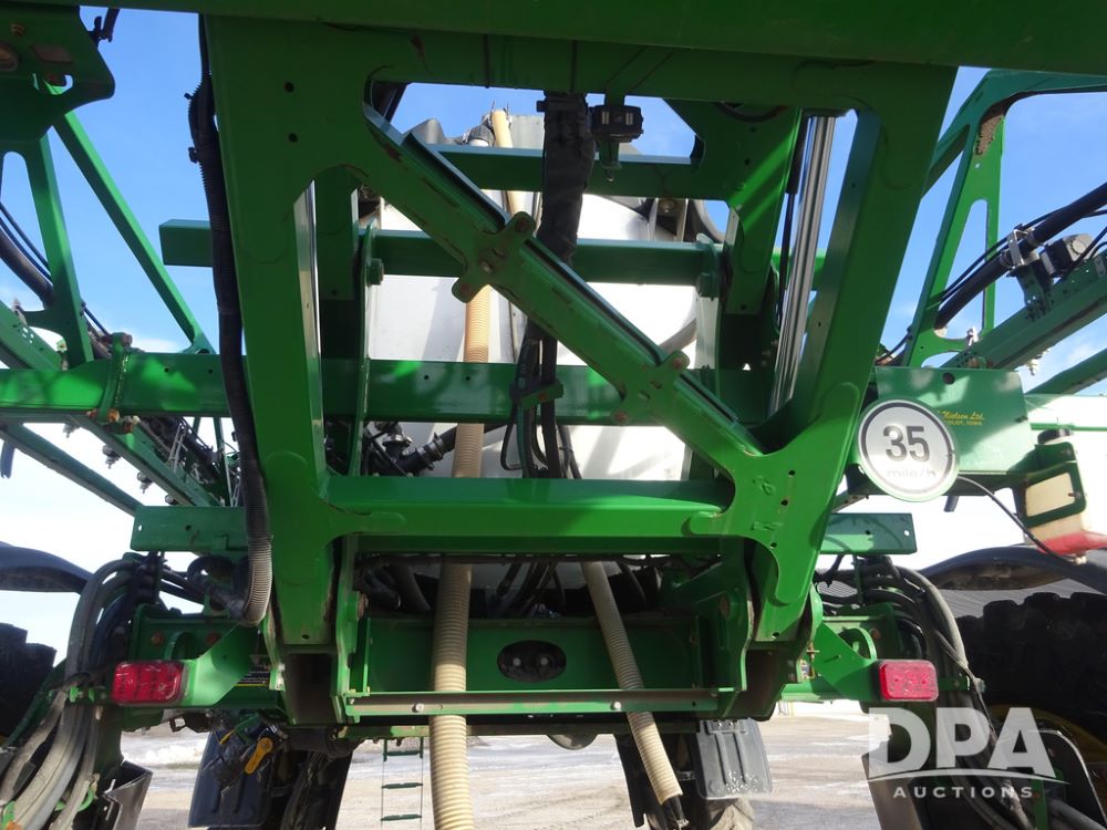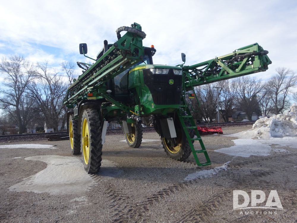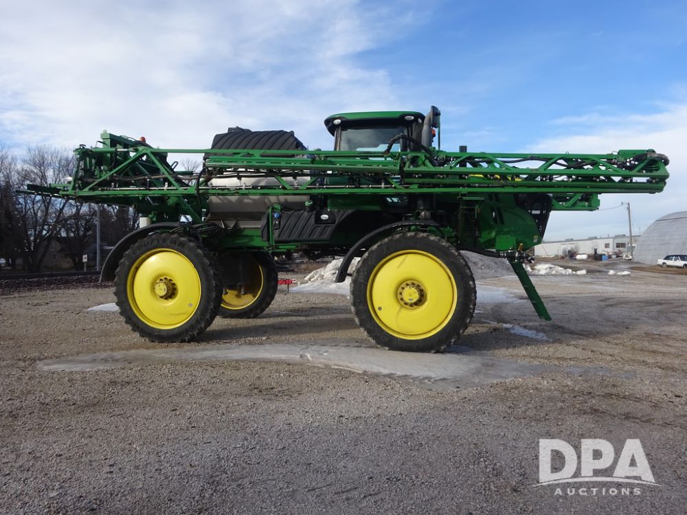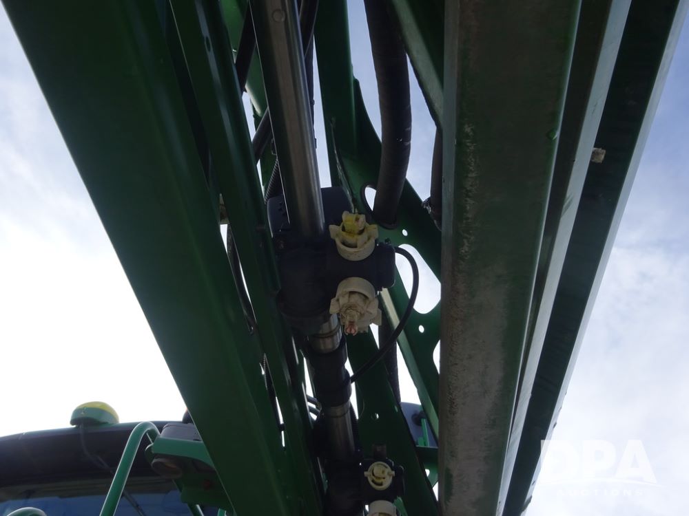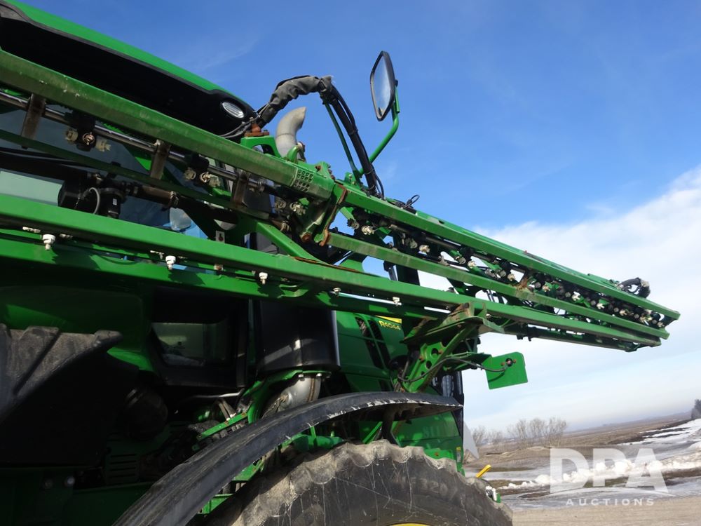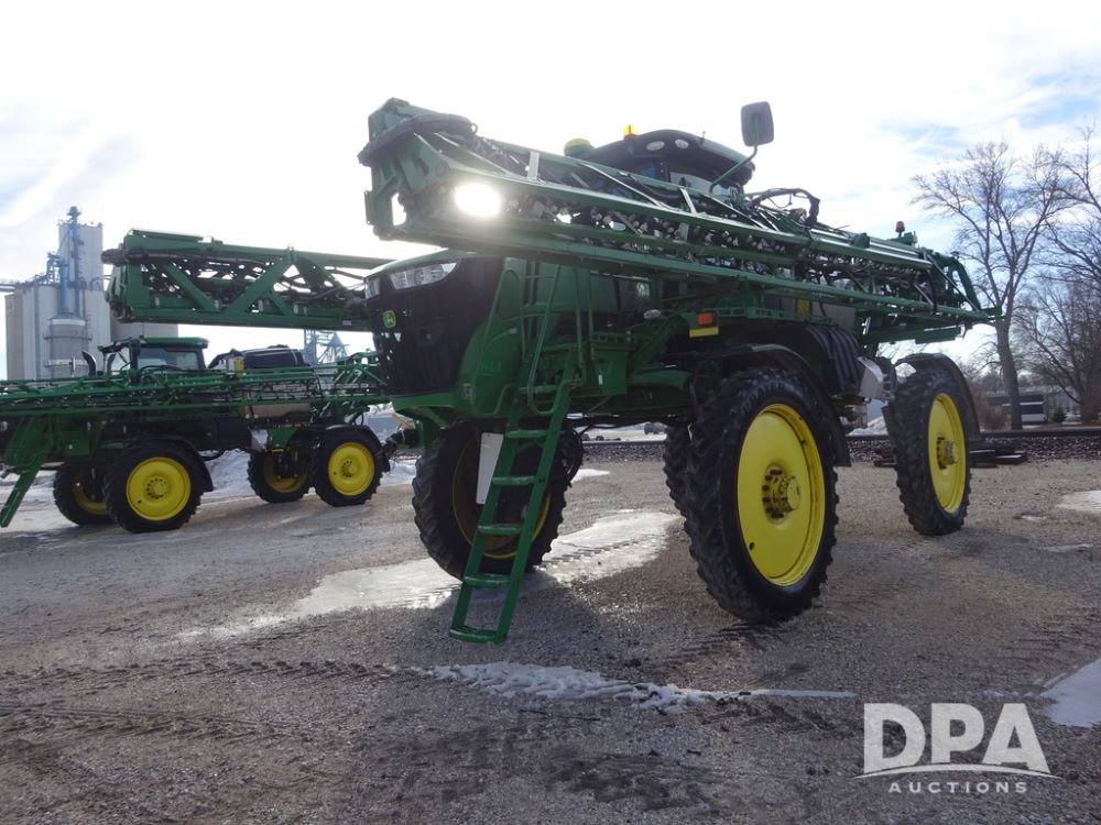 2019 John Deere R4044 Sprayer (PZ14308, Unit 811), John Deere diesel engine (S/N RG6090U066246), hydrostatic transmission, air conditioning, heat, Am/Fm radio, leather seat, buddy seat, beacon lights, 1200 gallon stainless steel liquid system, 120' boom, top poly rinse tank, stainless steel chemical inductor, automatic solution control, front fill, belly shields, Good Year Ultra Sprayer IF320/105R54 tires, fenders, rear camera, John Deere StarFire 6000 globe, John Deere monitor, shows 3,467 hours.