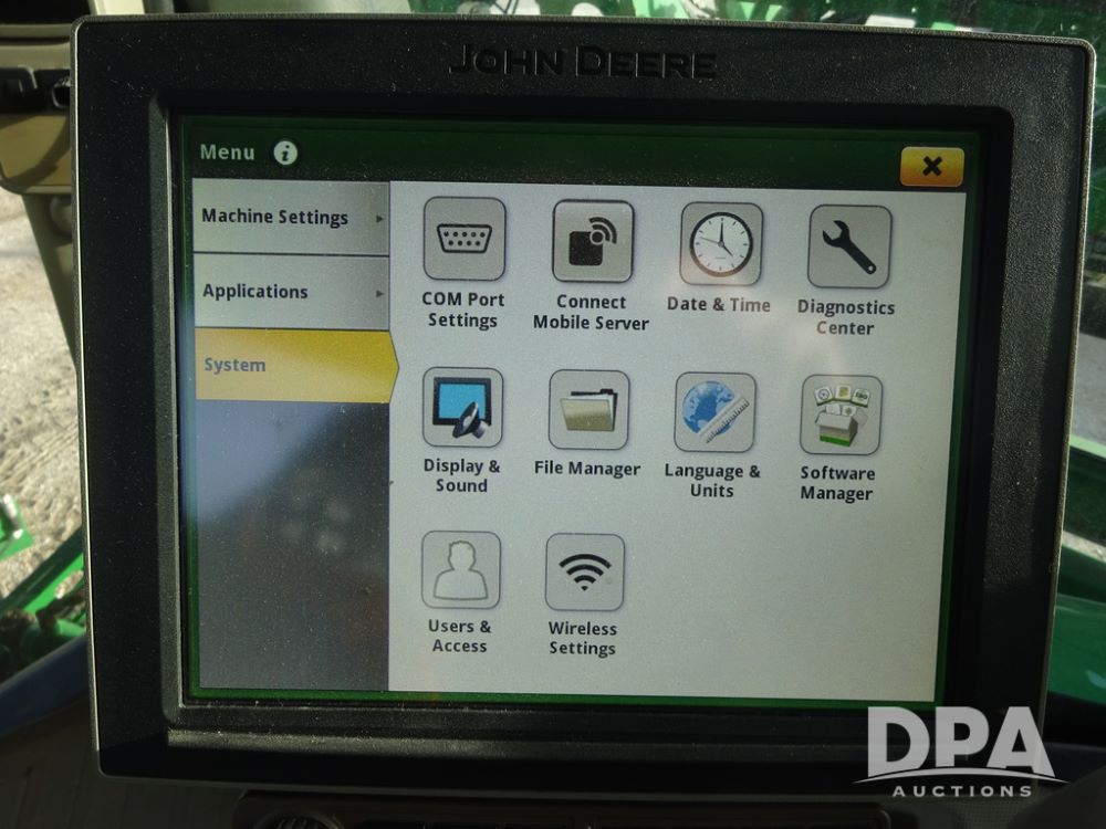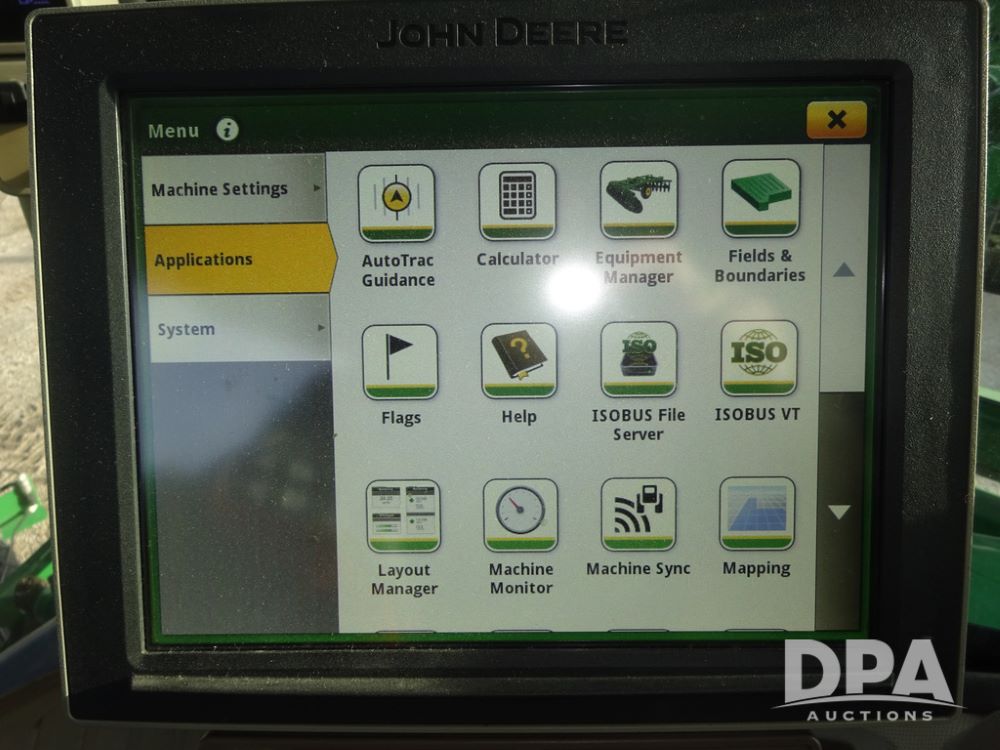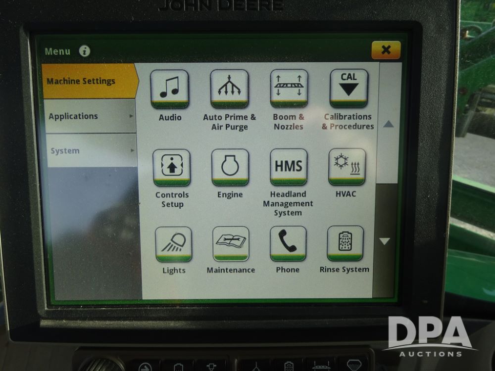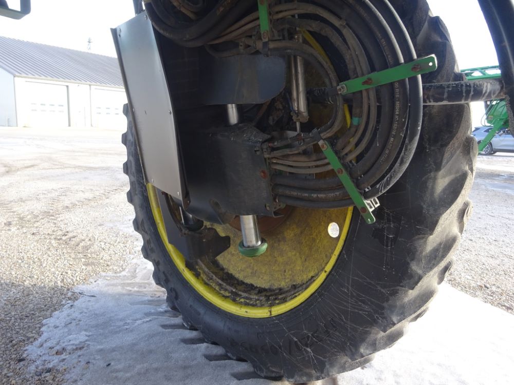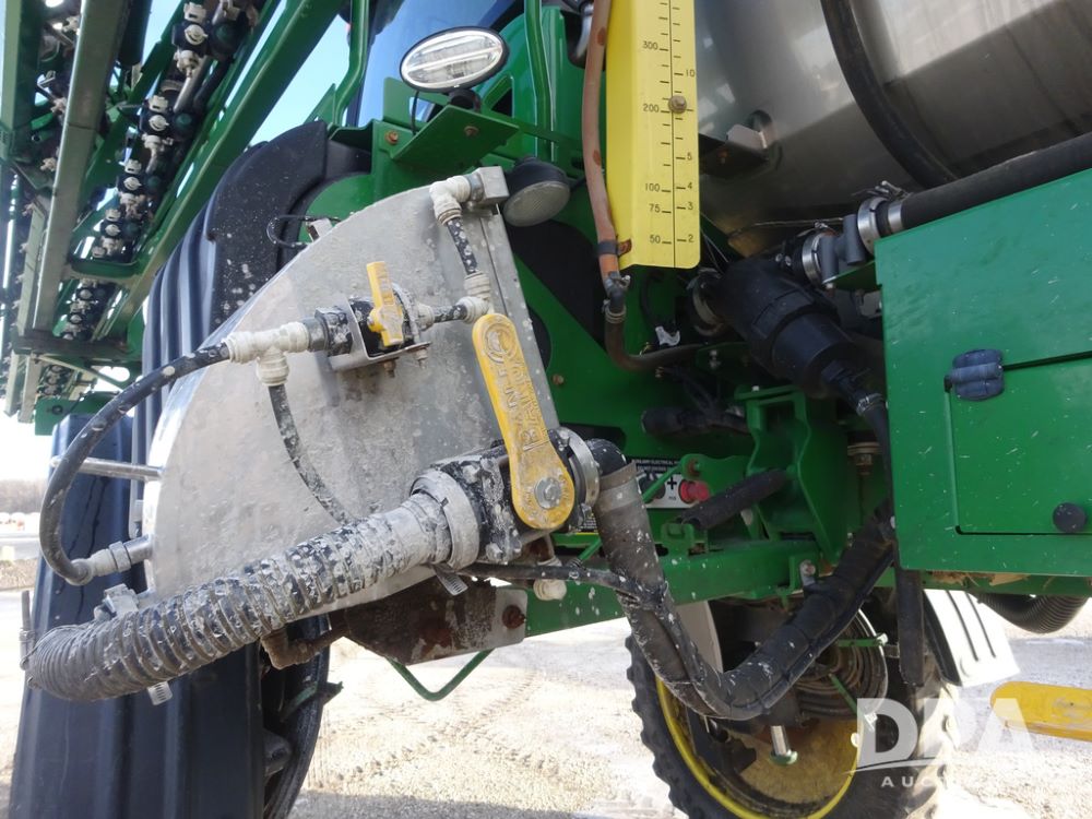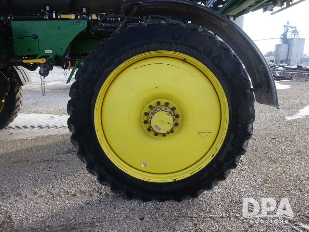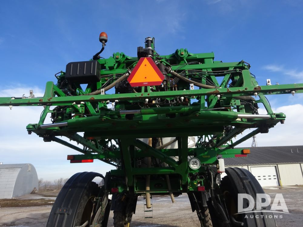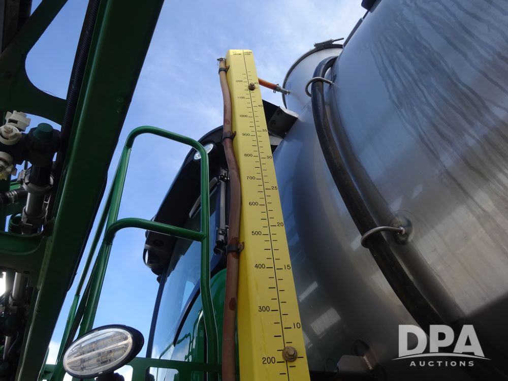 2019 John Deere R4044 Sprayer (PZ14308, Unit 811), John Deere diesel engine (S/N RG6090U066246), hydrostatic transmission, air conditioning, heat, Am/Fm radio, leather seat, buddy seat, beacon lights, 1200 gallon stainless steel liquid system, 120' boom, top poly rinse tank, stainless steel chemical inductor, automatic solution control, front fill, belly shields, Good Year Ultra Sprayer IF320/105R54 tires, fenders, rear camera, John Deere StarFire 6000 globe, John Deere monitor, shows 3,467 hours.