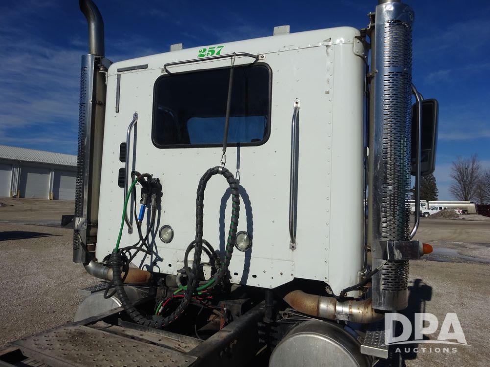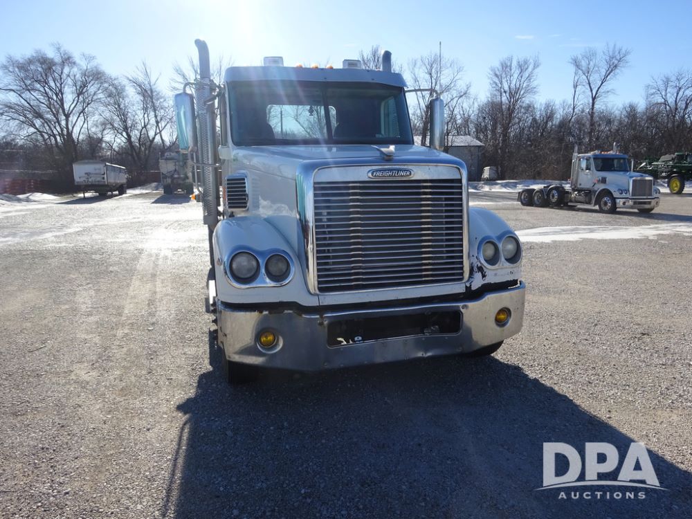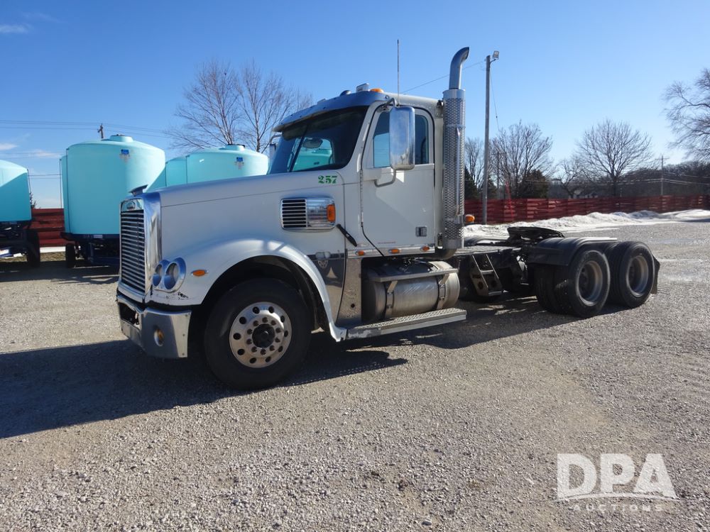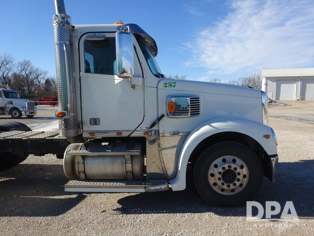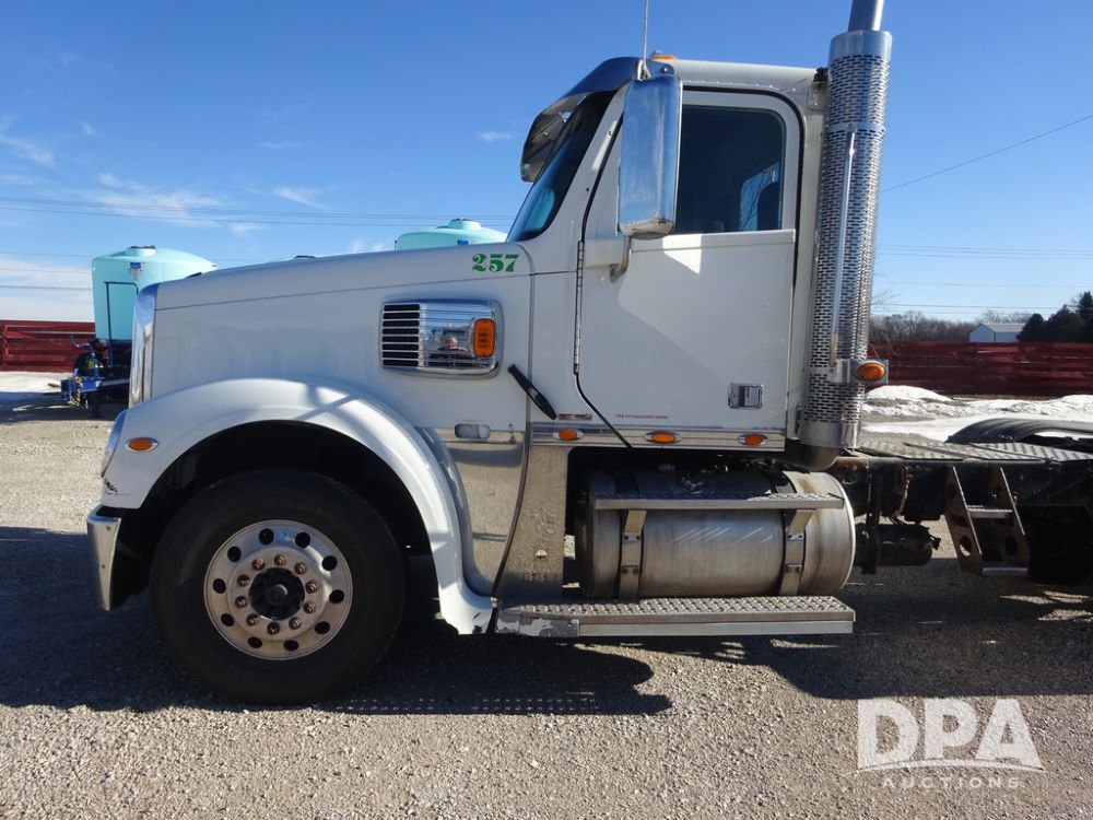2015 Freightliner Coronado Day Cab Glider Truck (PZ14311, Unit 257), Detroit Series 60 diesel engine, Eaton Fuller 13 speed transmission, air conditioning, heat, Am/Fm radio, cruise control, engine brake, power windows, 5th wheel, tandem axle, full screw, air ride suspension, 11R22.5 tires, aluminum rims, rear quarter fenders, shows 553,234 miles.