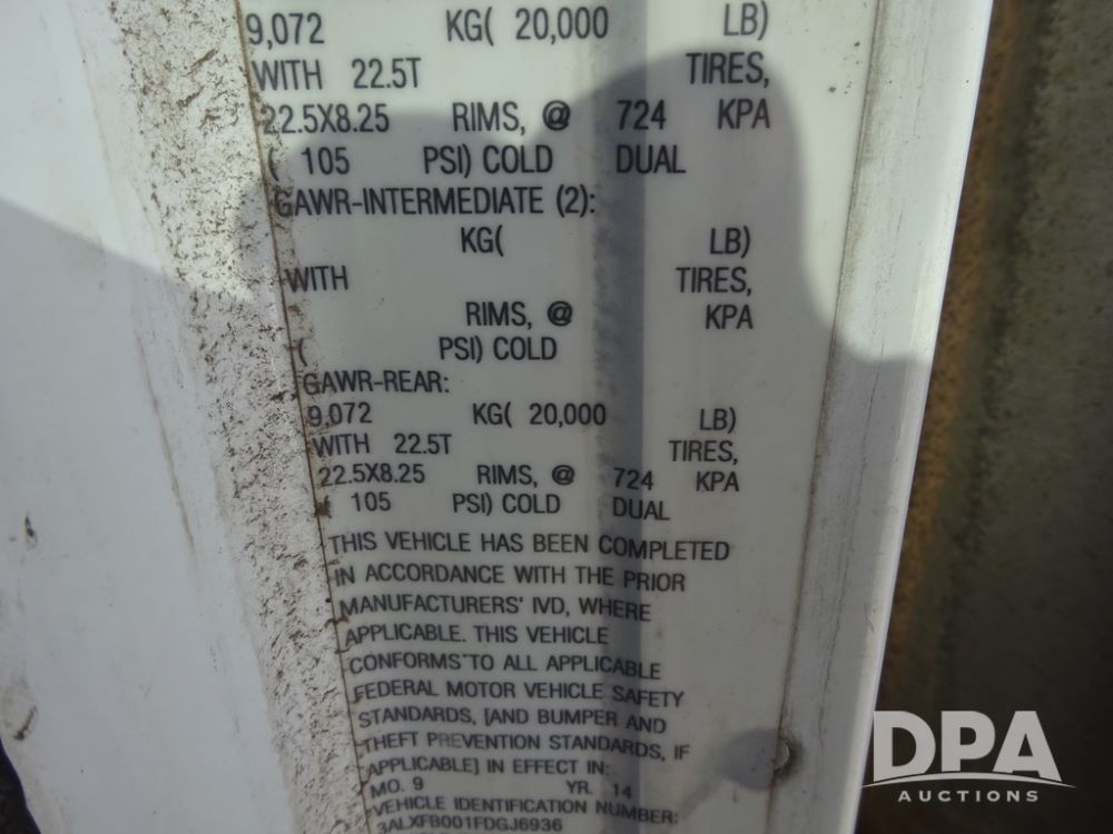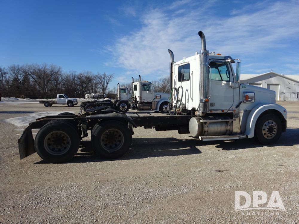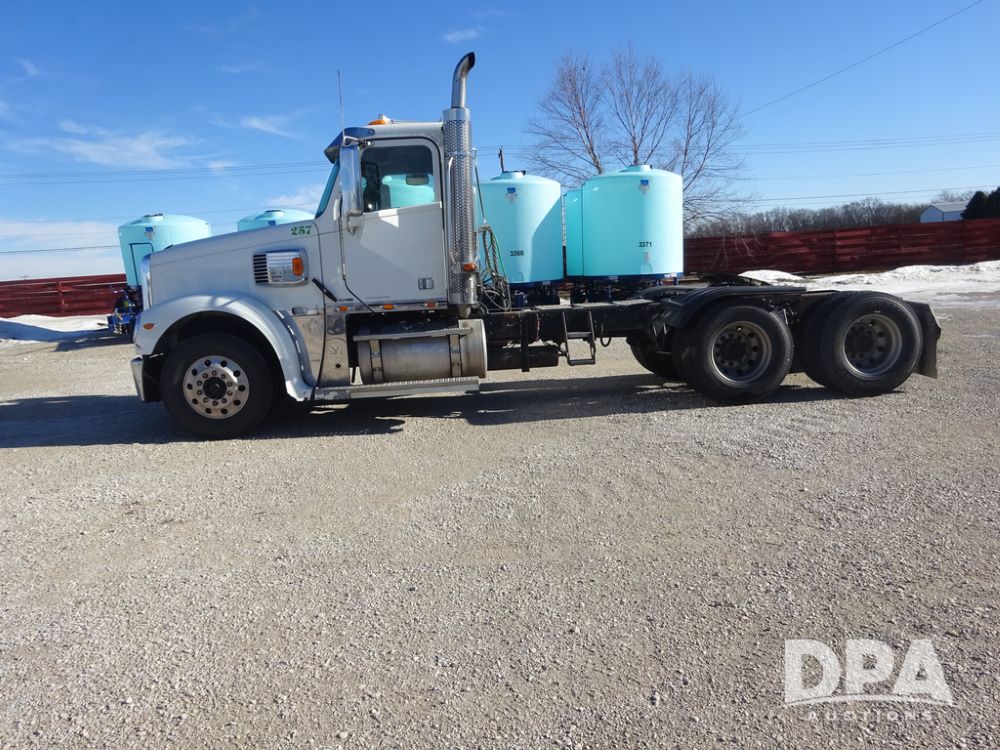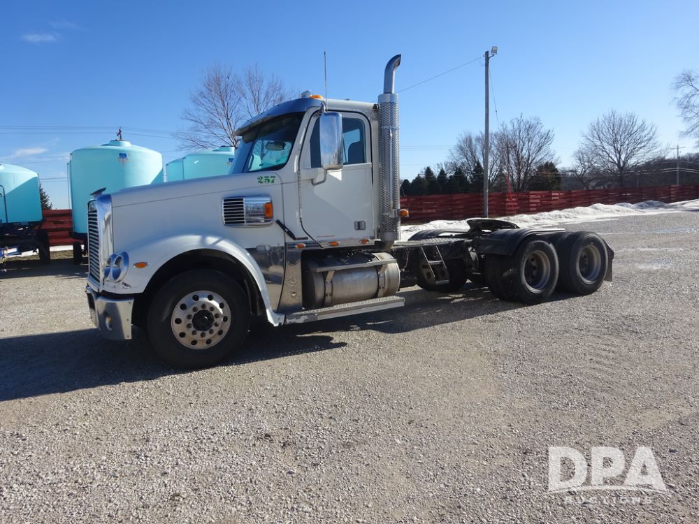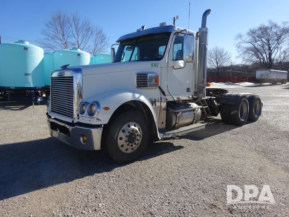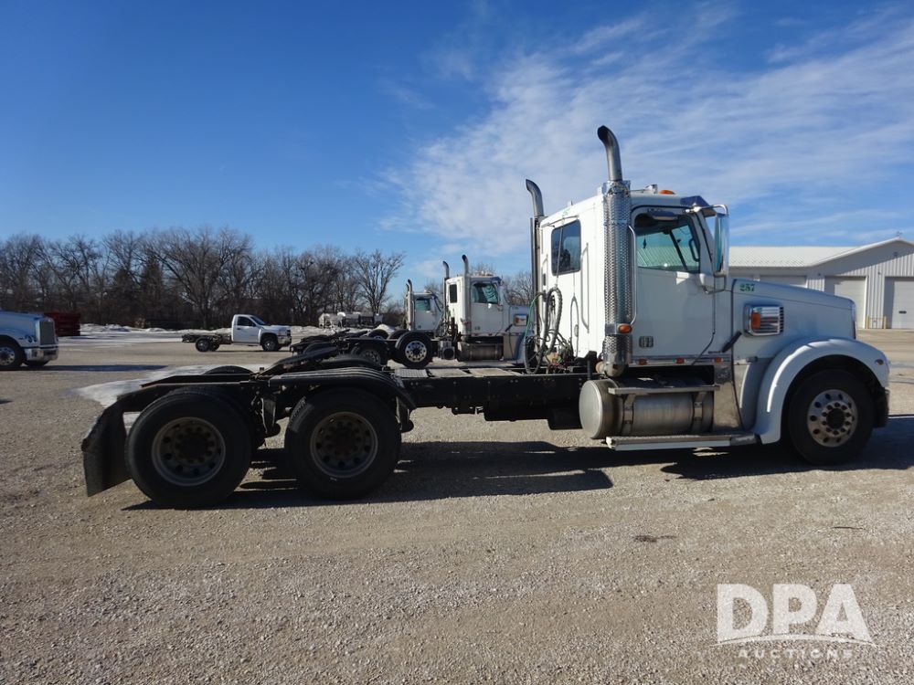 2015 Freightliner Coronado Day Cab Glider Truck (PZ14311, Unit 257), Detroit Series 60 diesel engine, Eaton Fuller 13 speed transmission, air conditioning, heat, Am/Fm radio, cruise control, engine brake, power windows, 5th wheel, tandem axle, full screw, air ride suspension, 11R22.5 tires, aluminum rims, rear quarter fenders, shows 553,234 miles.