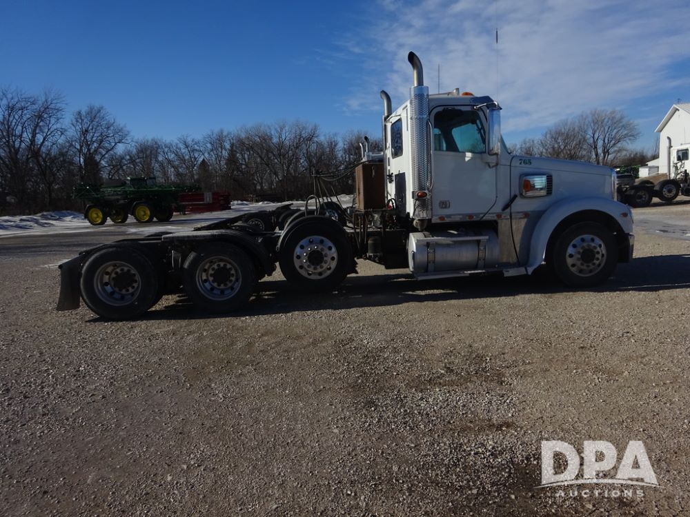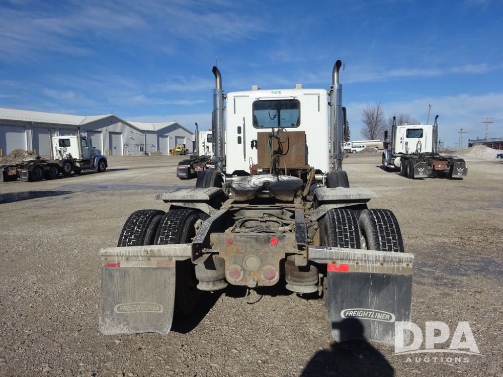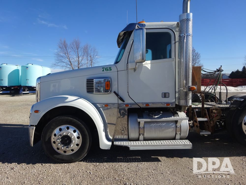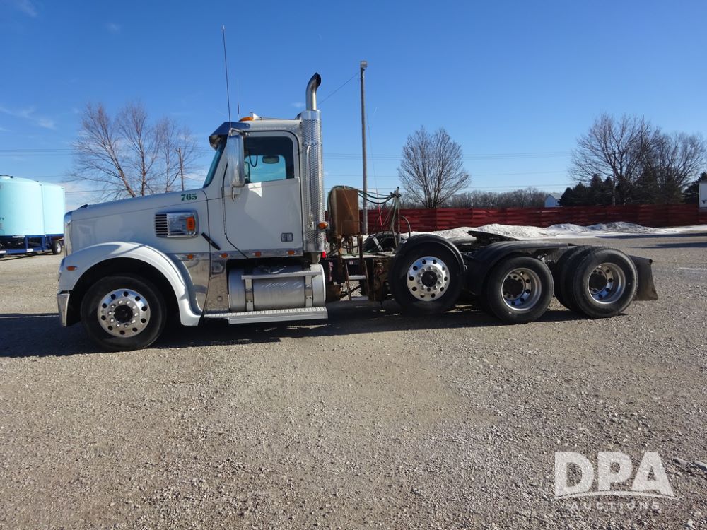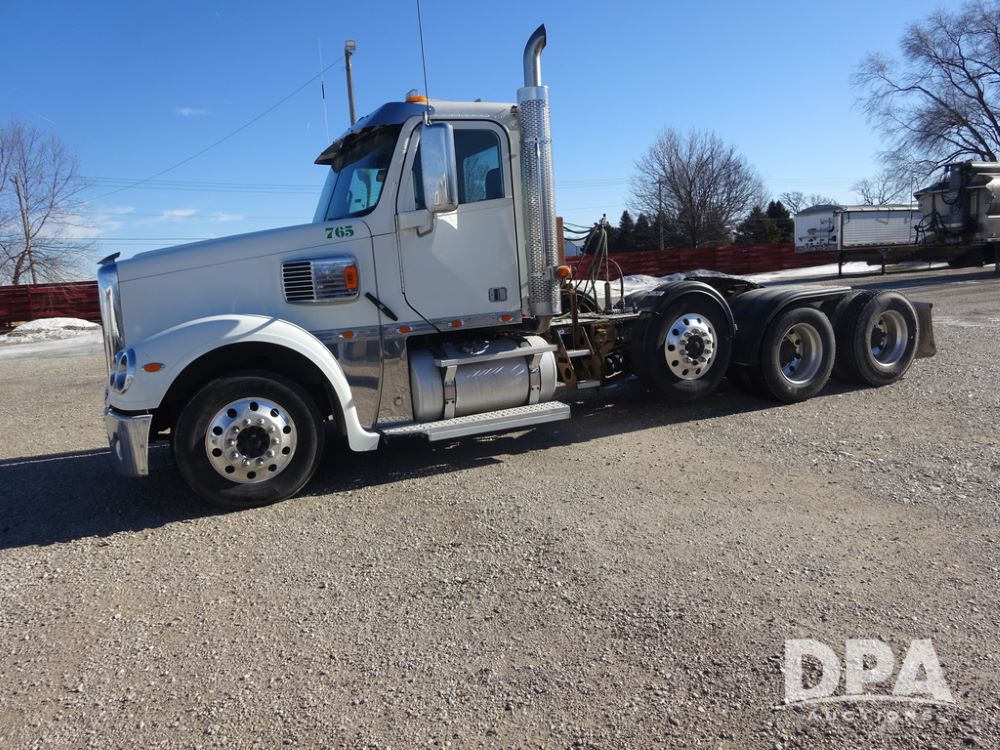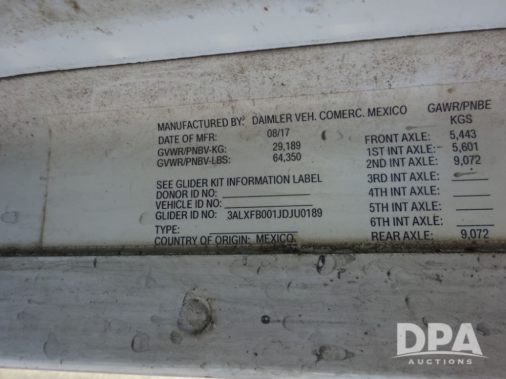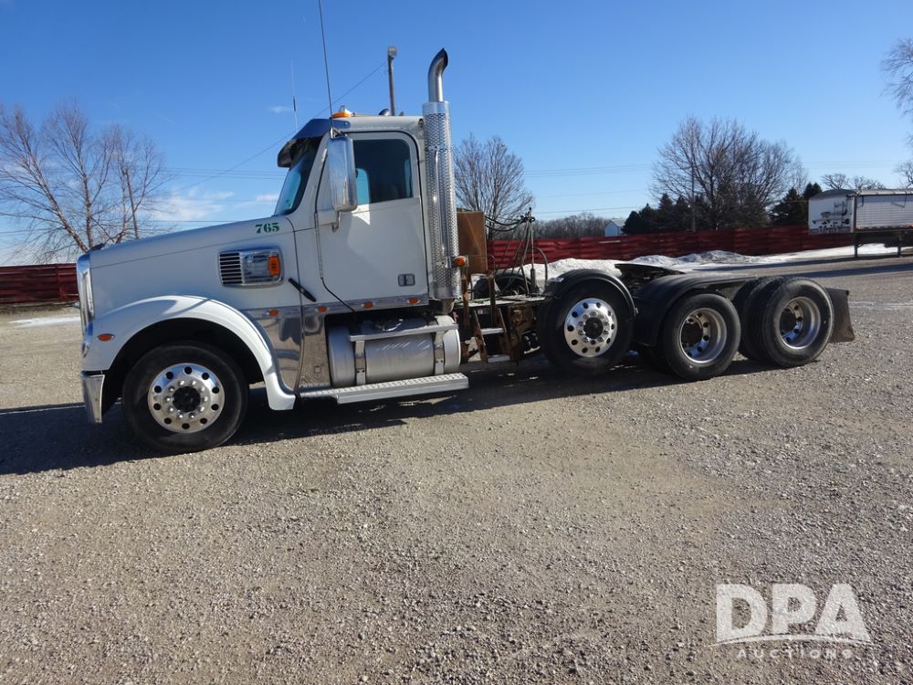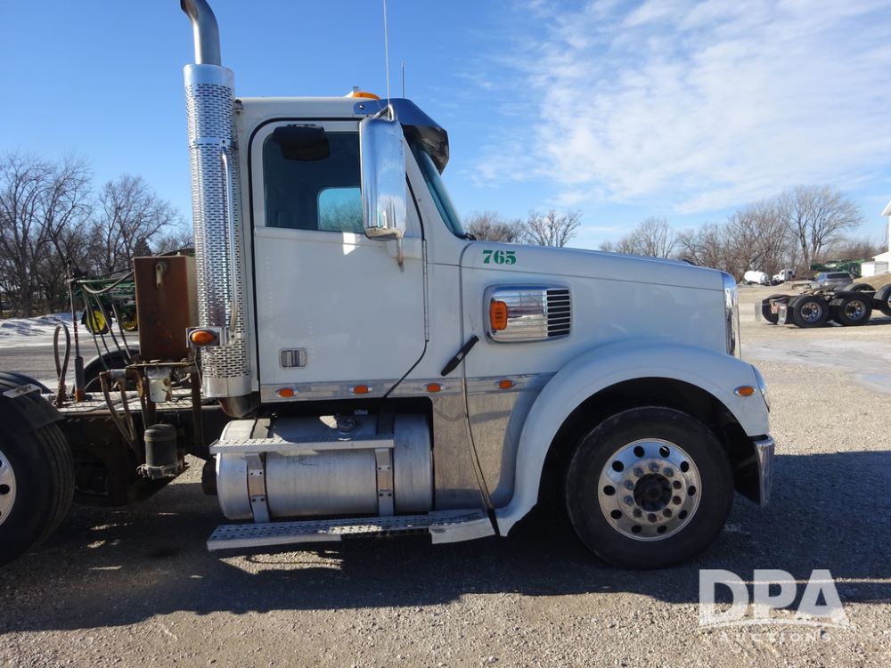 2018 Freightliner Coronado Day Cab Glider Truck (PZ14312, Unit 765), Detroit Series 60 diesel engine, Eaton Fuller 13 speed transmission, air conditioning, heat, Am/Fm CD radio, cruise control, engine brake, power windows & locks, 5th wheel, wet kit, tandem axle, full screw, air ride suspension, pusher axle, 295/75R22.5 tires, aluminum rims, rear quarter fenders, 295/75R22.5 pusher tires, aluminum rims, fenders, shows 507,575 miles.