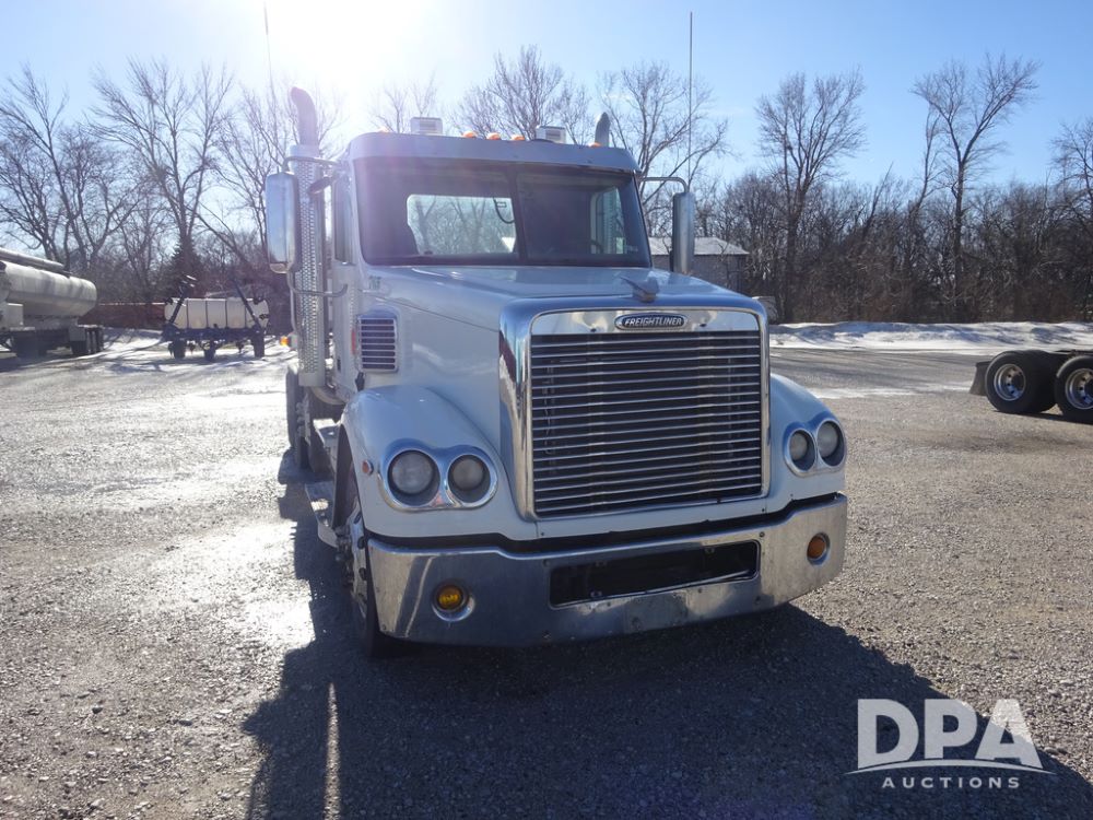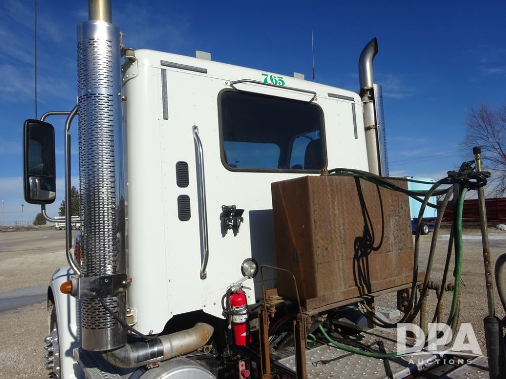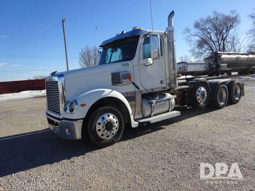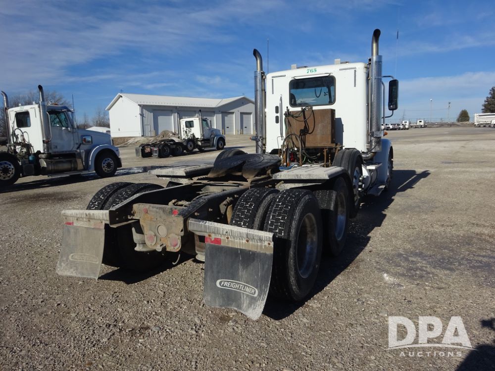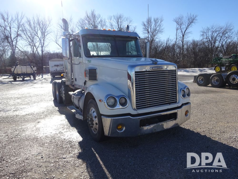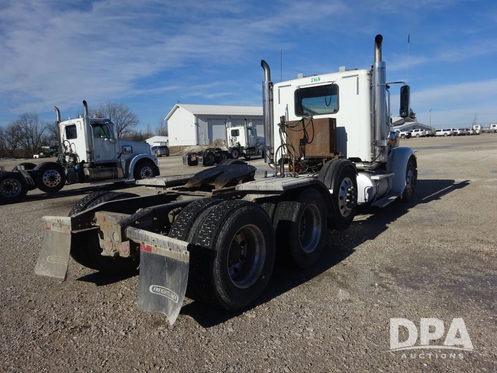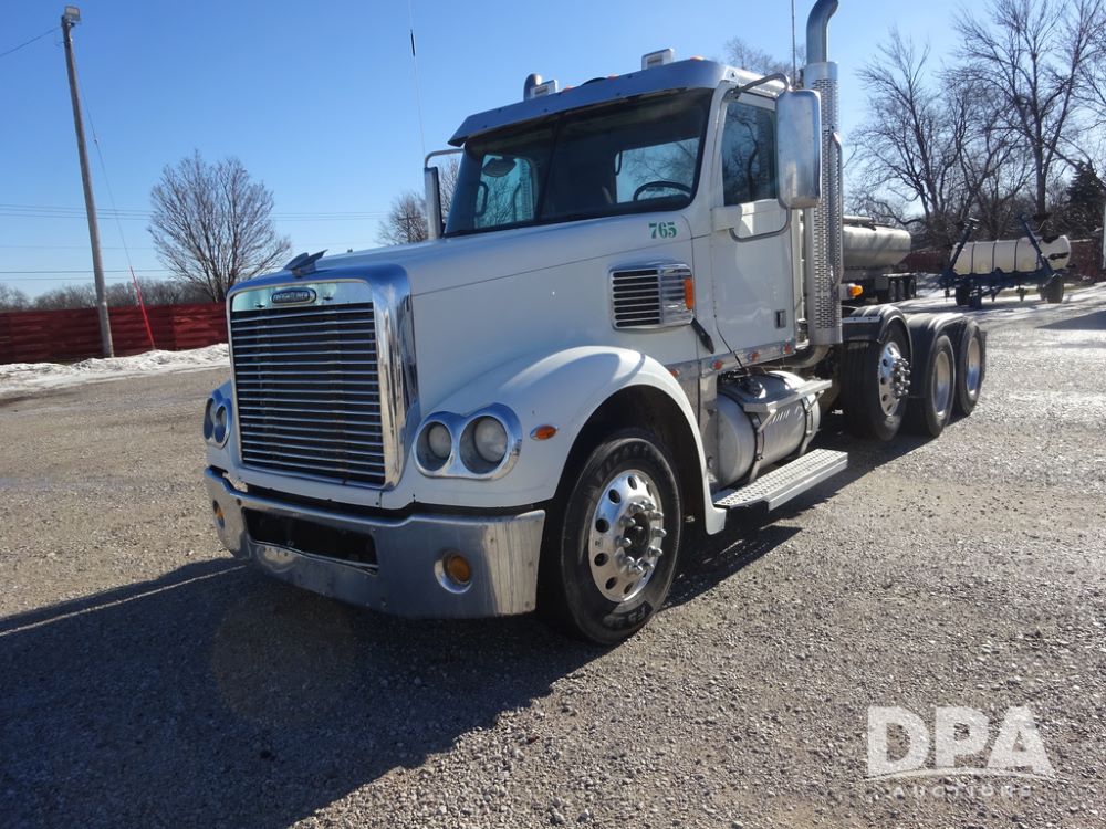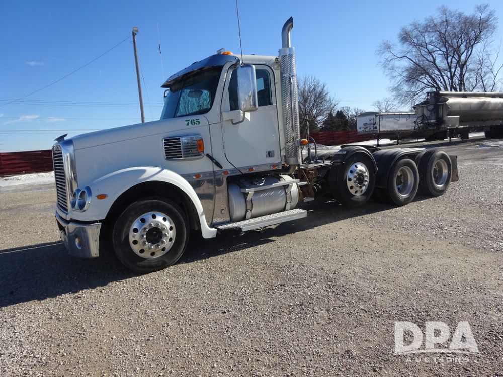 2018 Freightliner Coronado Day Cab Glider Truck (PZ14312, Unit 765), Detroit Series 60 diesel engine, Eaton Fuller 13 speed transmission, air conditioning, heat, Am/Fm CD radio, cruise control, engine brake, power windows & locks, 5th wheel, wet kit, tandem axle, full screw, air ride suspension, pusher axle, 295/75R22.5 tires, aluminum rims, rear quarter fenders, 295/75R22.5 pusher tires, aluminum rims, fenders, shows 507,575 miles.