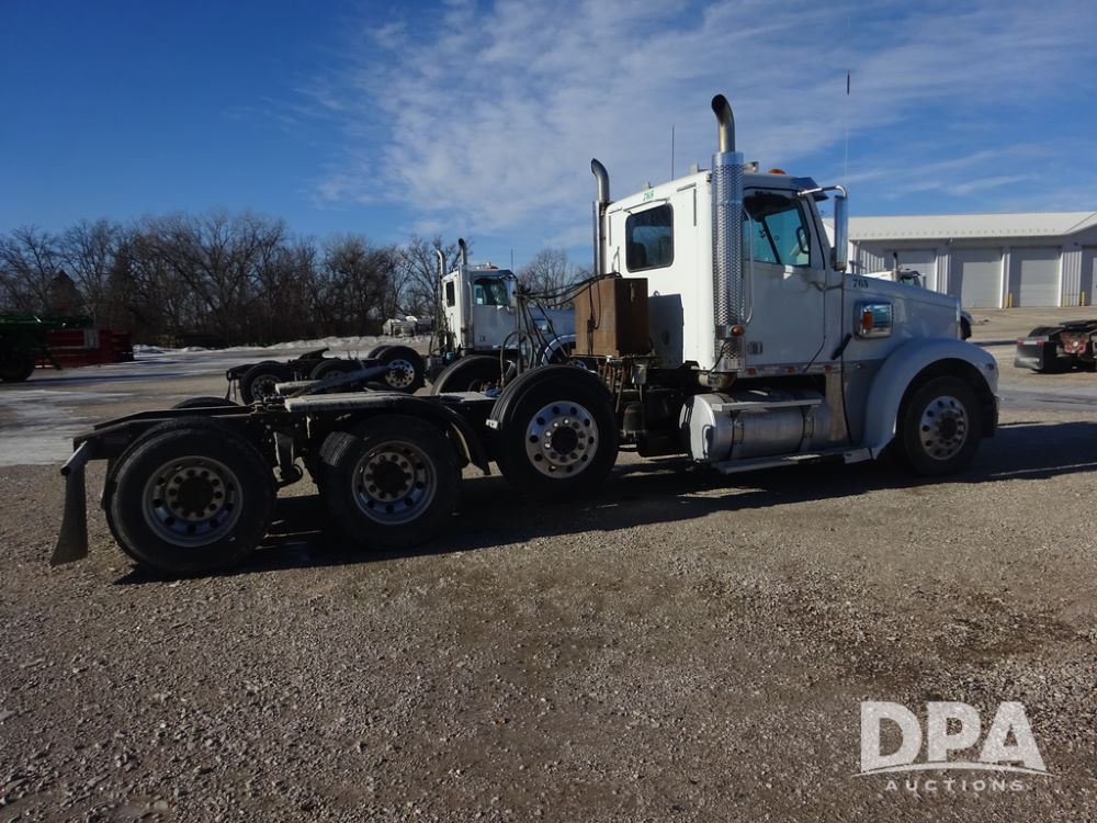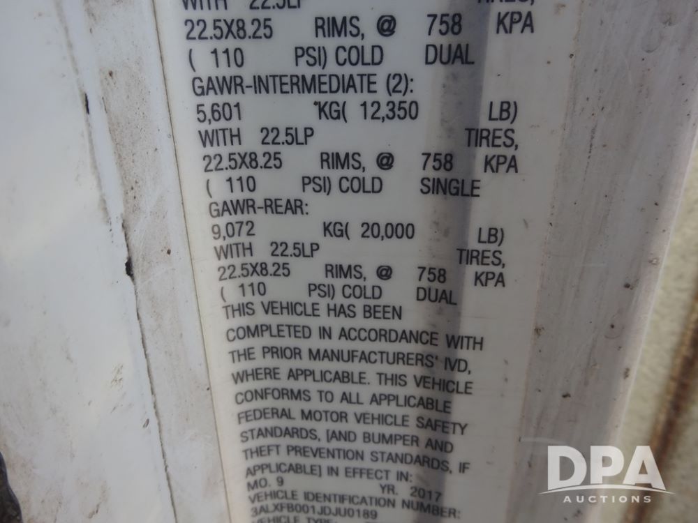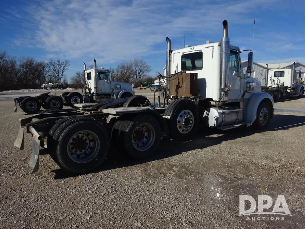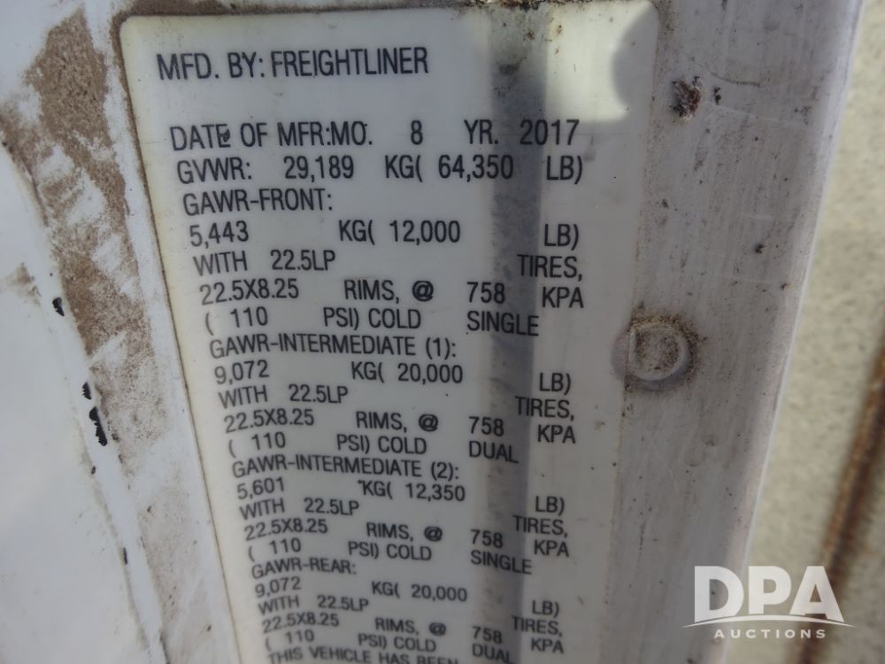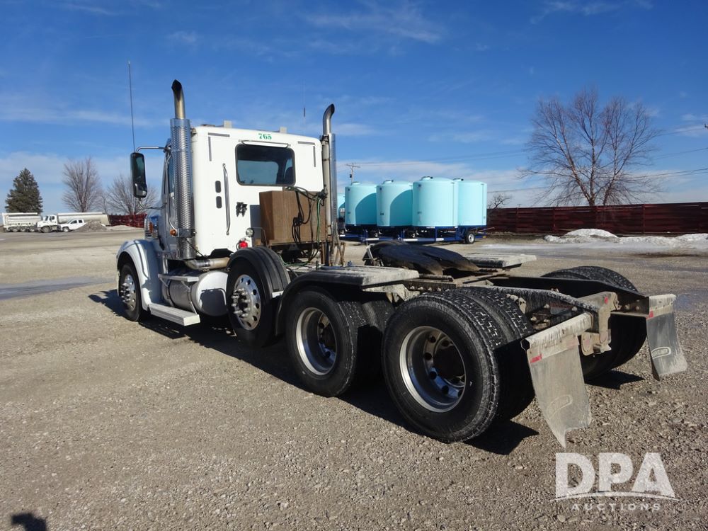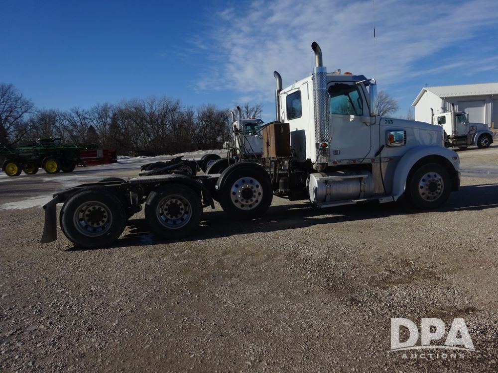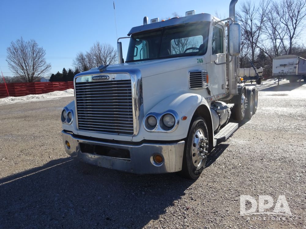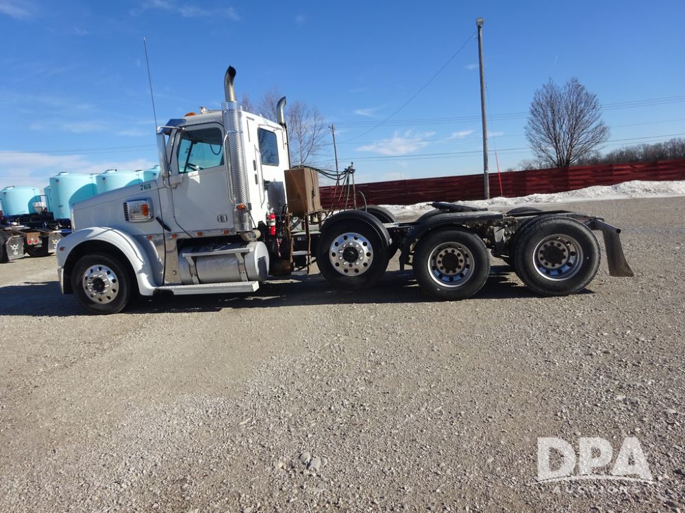 2018 Freightliner Coronado Day Cab Glider Truck (PZ14312, Unit 765), Detroit Series 60 diesel engine, Eaton Fuller 13 speed transmission, air conditioning, heat, Am/Fm CD radio, cruise control, engine brake, power windows & locks, 5th wheel, wet kit, tandem axle, full screw, air ride suspension, pusher axle, 295/75R22.5 tires, aluminum rims, rear quarter fenders, 295/75R22.5 pusher tires, aluminum rims, fenders, shows 507,575 miles.