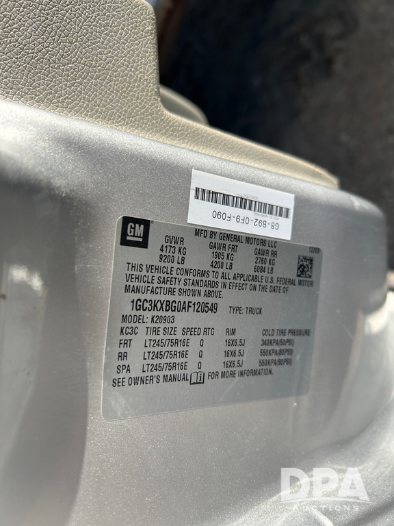 Serial Number: 1GC3KXBG0AF120549