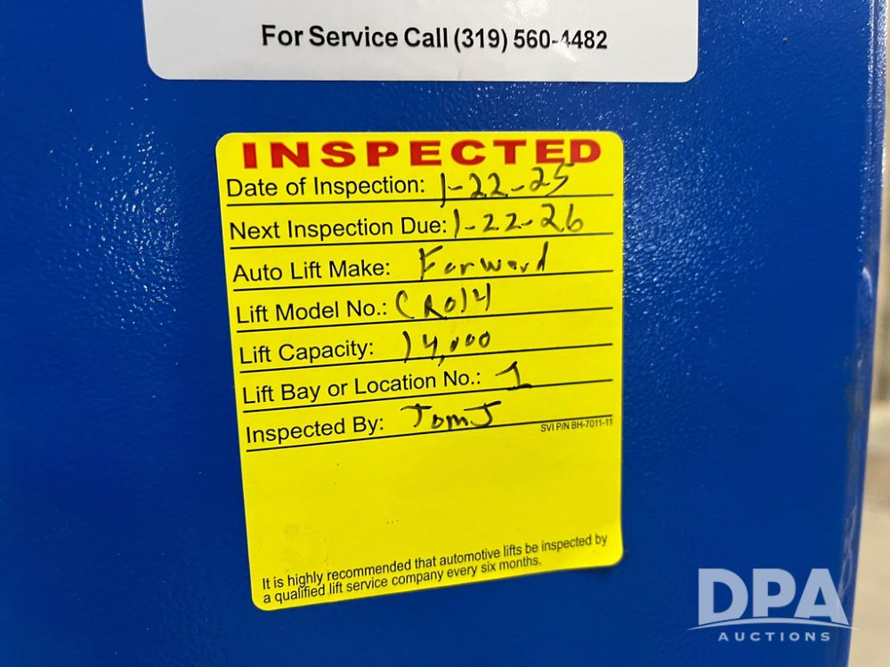 Forward Lift Car Hoist (JN3402), Forward Model CR014 car hoist, 14,000 pound lift capacity, 4 post car lift, drive on ramps, hydraulic.