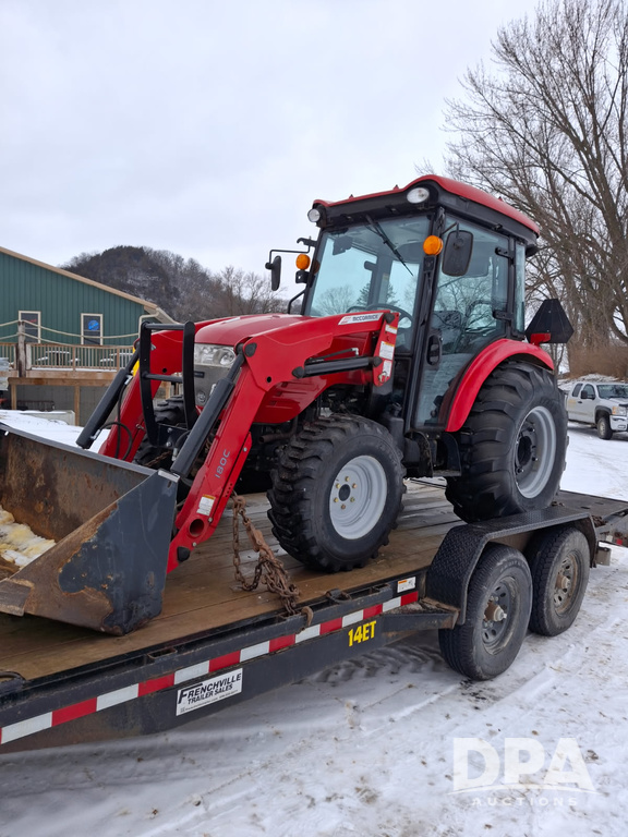 2017 McCormick X1.55 Tractor (PD5450), 4 cylinder diesel engine, 47 hp, hydrostatic transmission, PTO, 2 rear remotes, 3 point, backup rear camera, Universal Quick Attach 180C bucket, shows 663 hours.