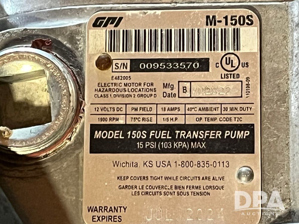 Fuel Tank (JN3654), GPI Model 150S fuel transfer pump, fuel gun.