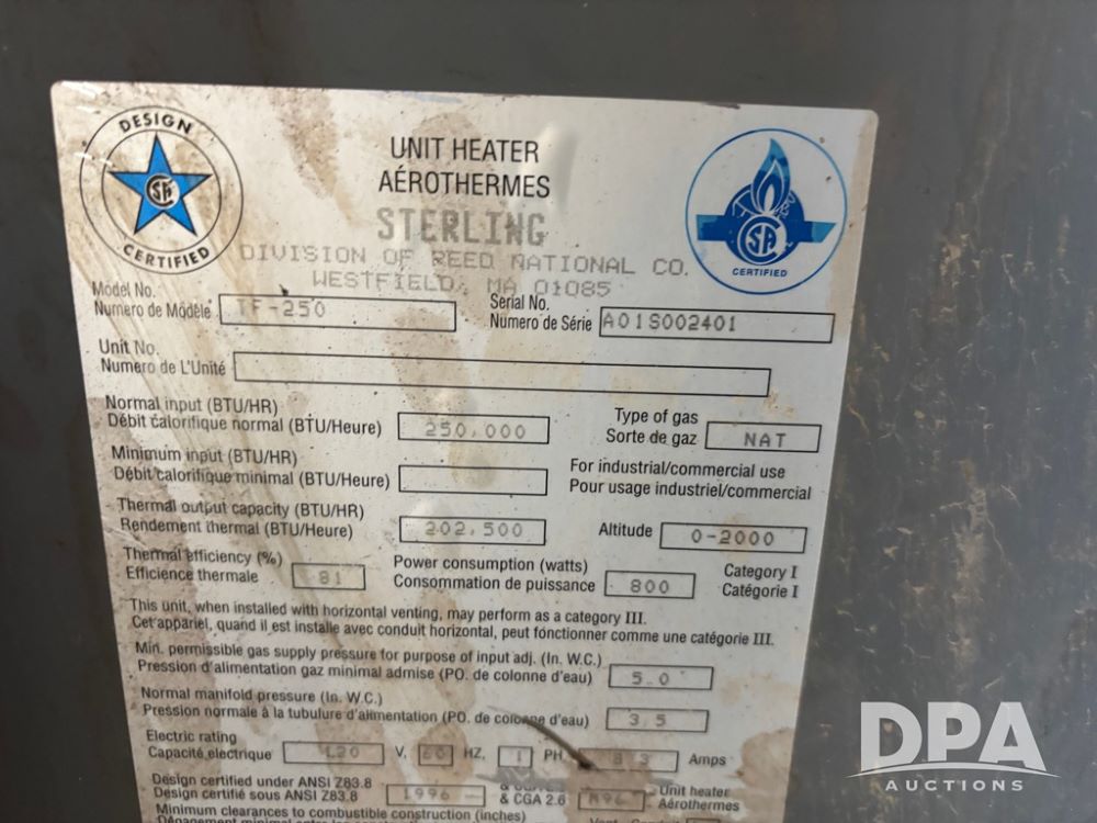 Equipment Sold "AS IS, WHERE IS": All equipment/property is sold "AS IS, WHERE IS" with no warranty or guarantees, expressed or implied, No operational assessments have been made by DPA Auctions on this item, it has been photographed ONLY.