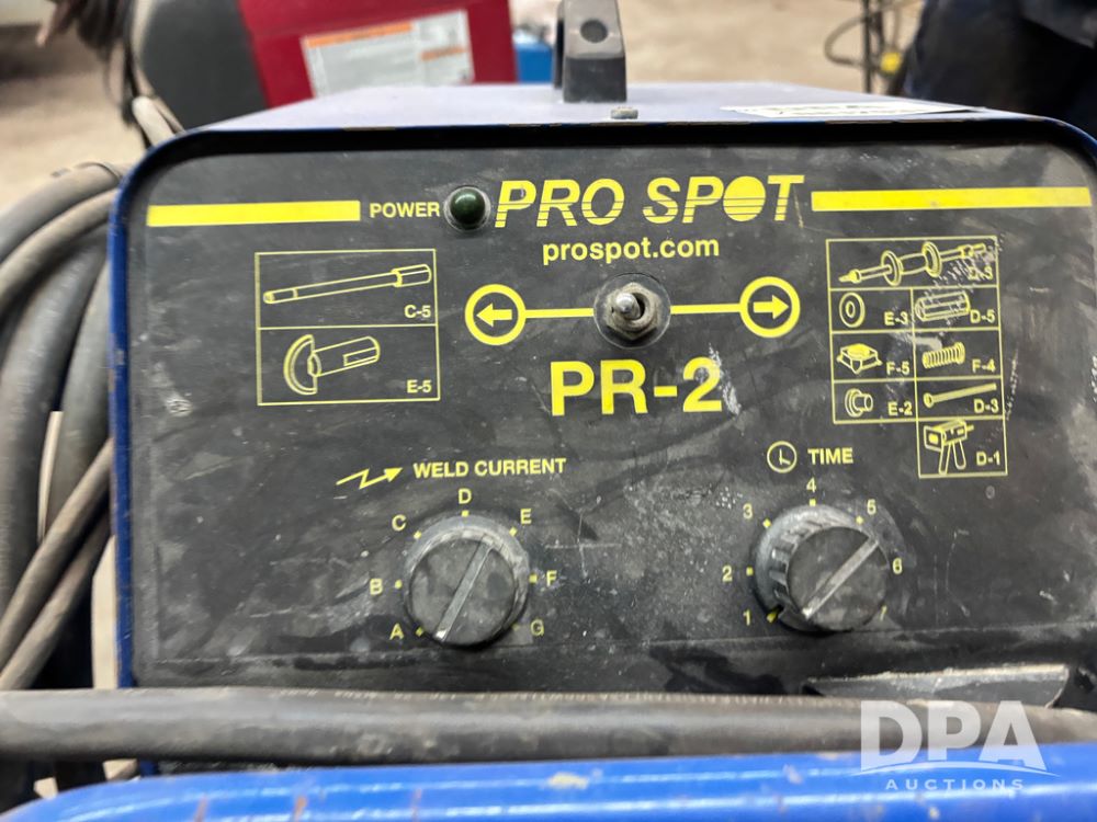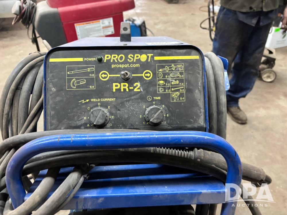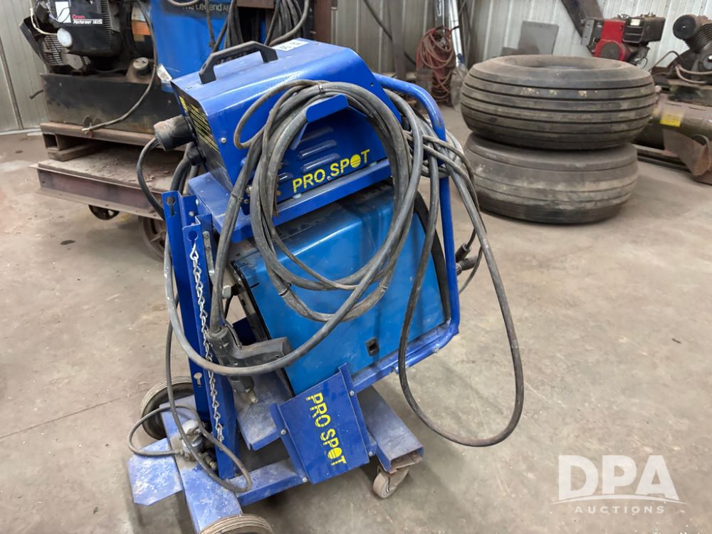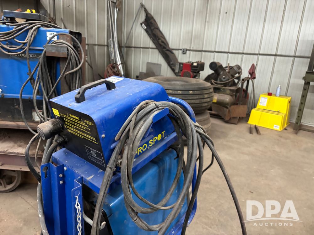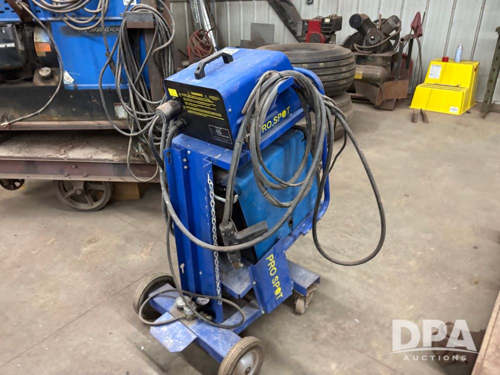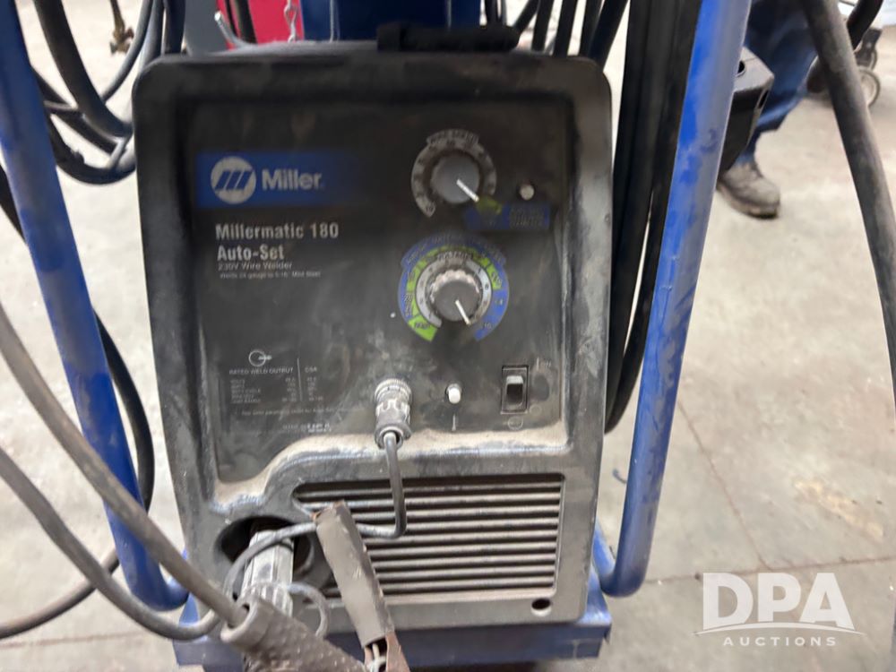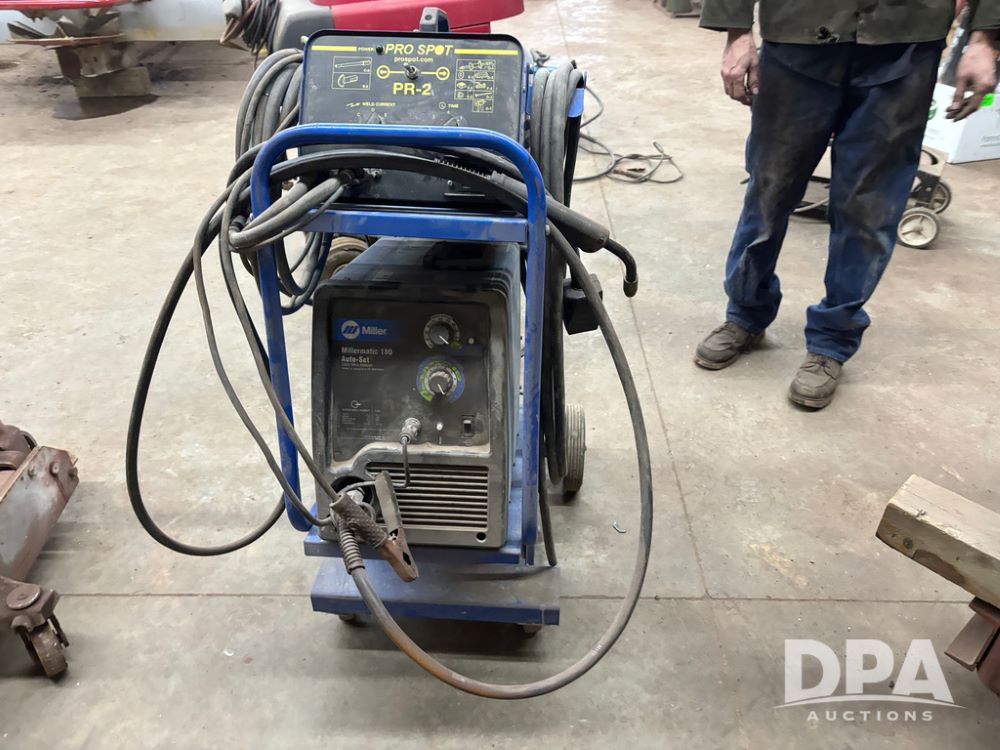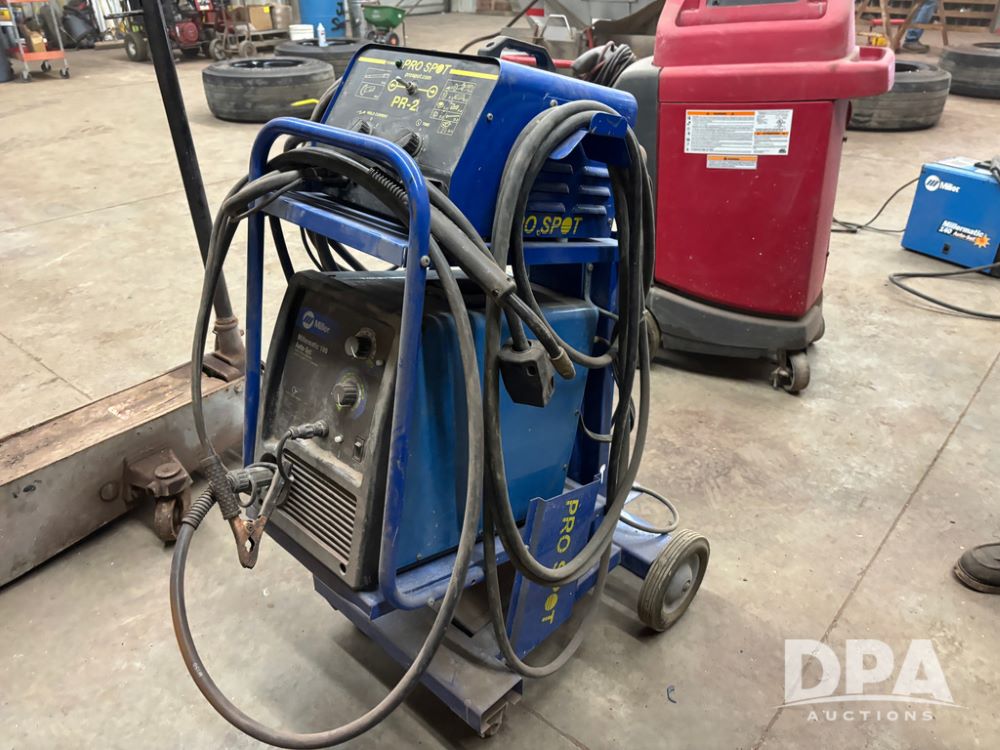 Miller Welder (DR12931), Miller Matic 180 auto set, and Pro Spot PR-2, both sitting on portable cart.