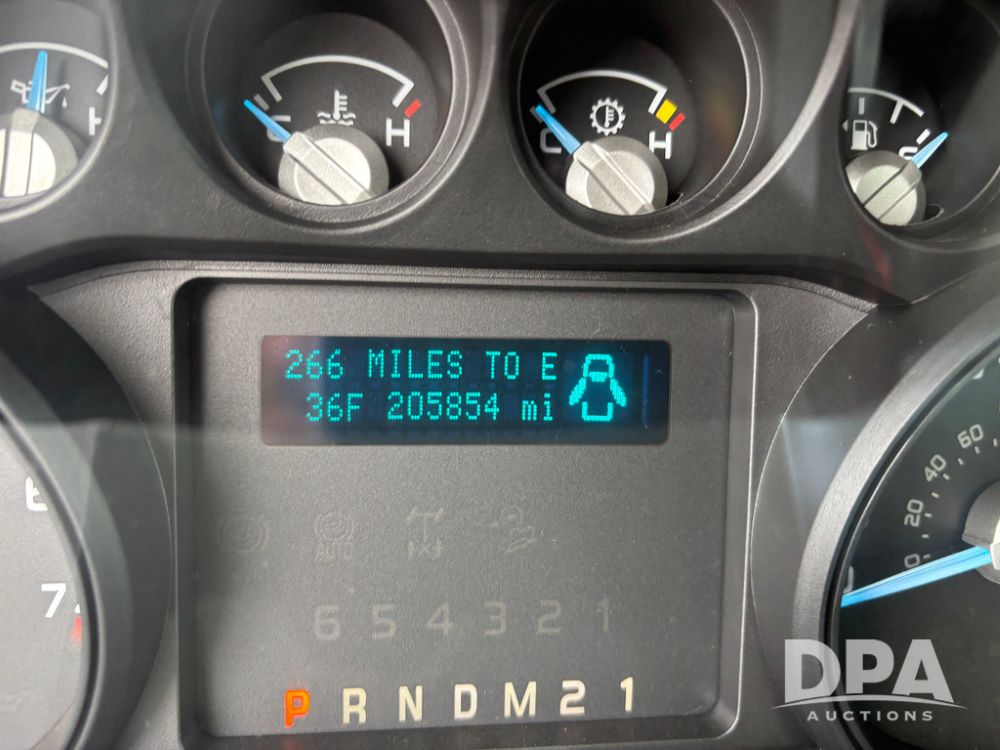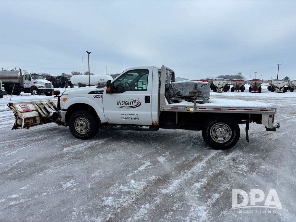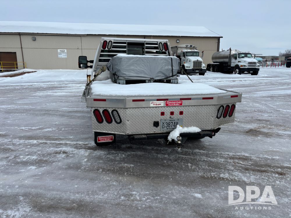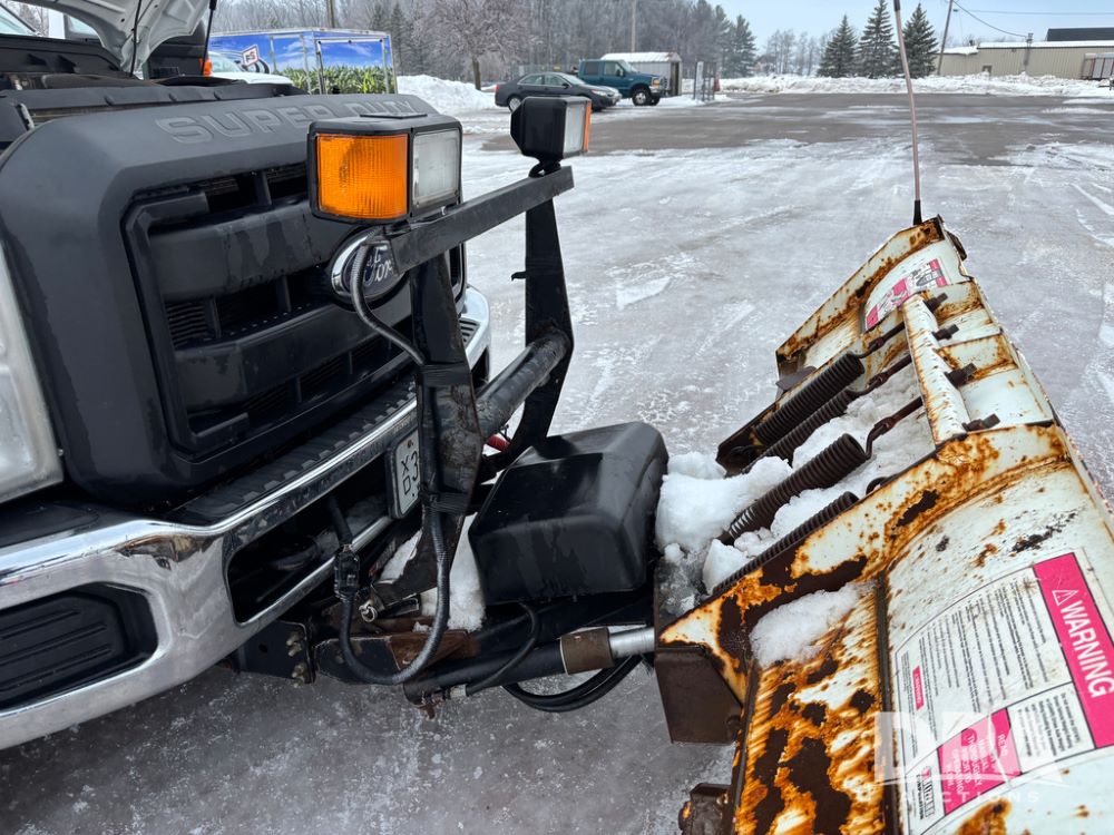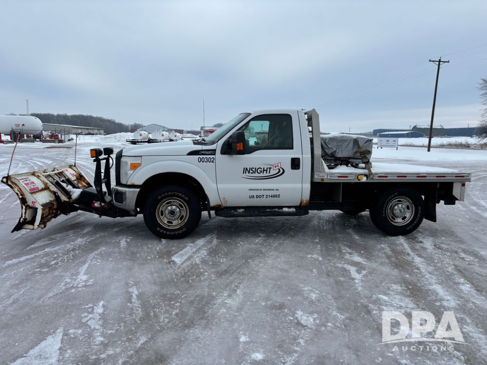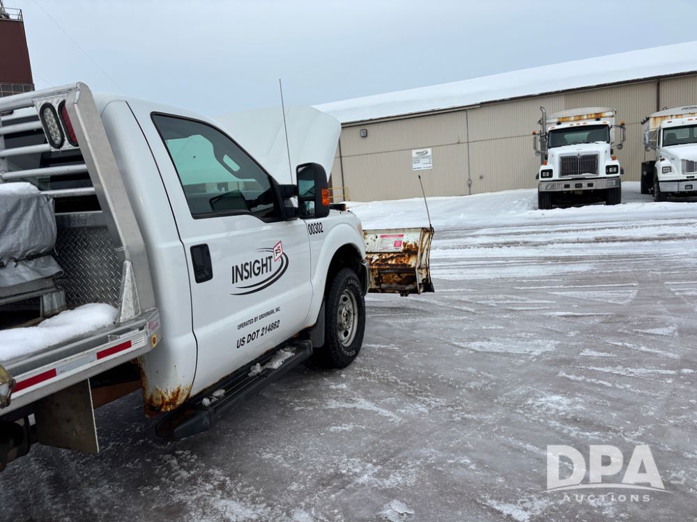 2012 Ford F250 Pickup (DR12934 Unit 0302), gas engine, automatic transmission, 4X4, Zimmerman 8' aluminum flatbed w/headache rack, Power Hitch front mounted snow plow w/cab controls, AM/FM CD radio, cruise control, rear receiver hitch, 285/70R17 tires, odometer reads 205,854 miles.