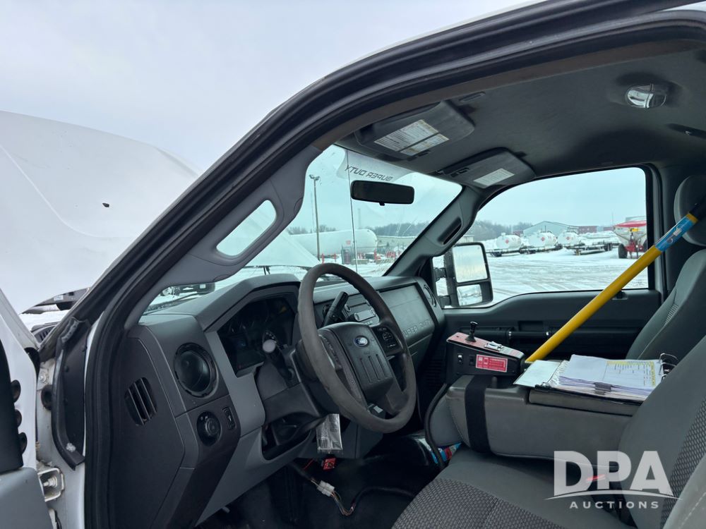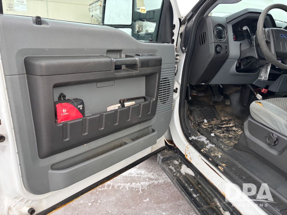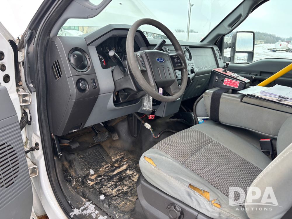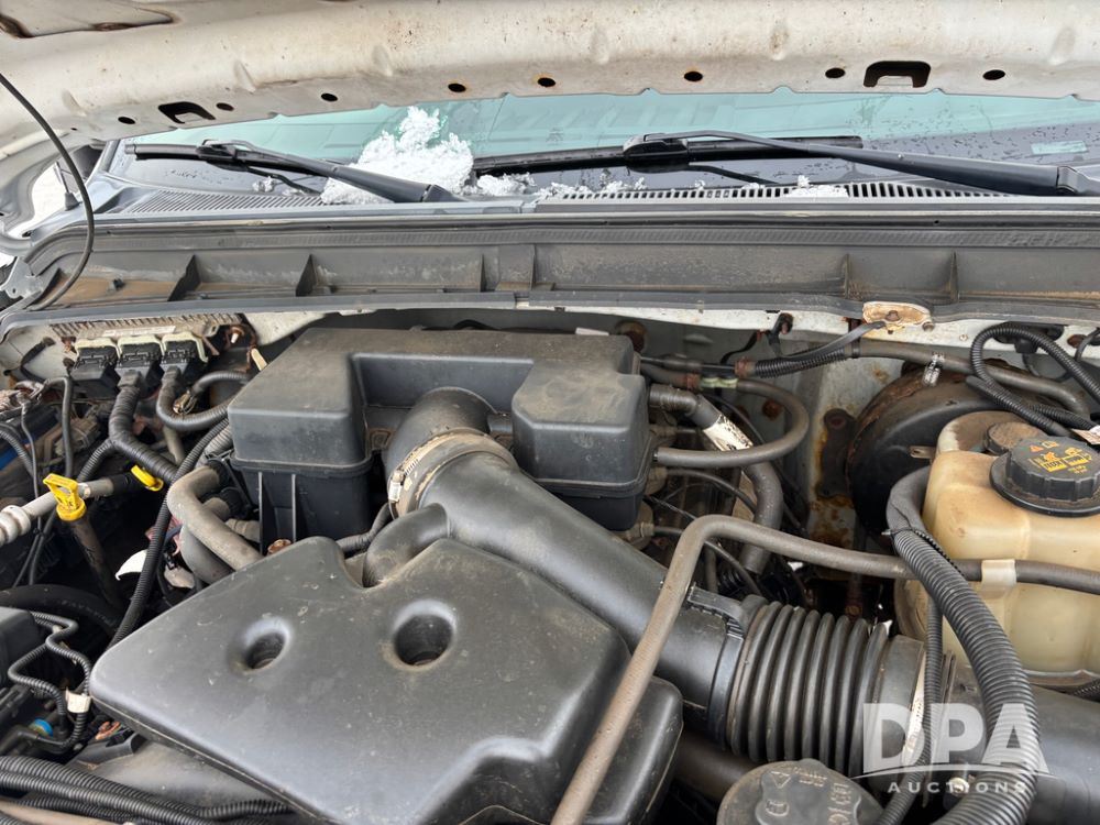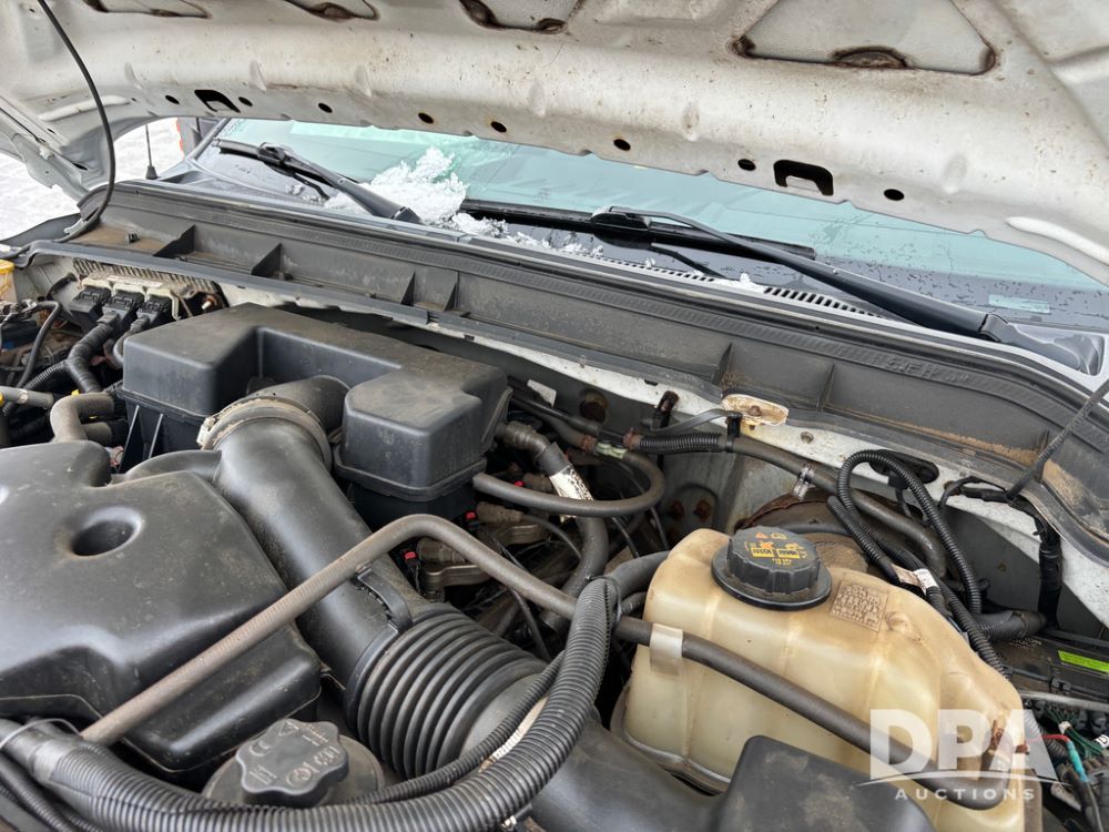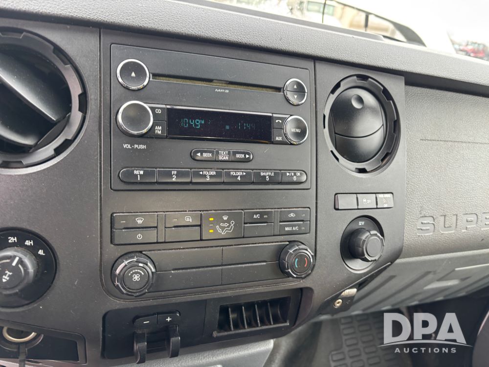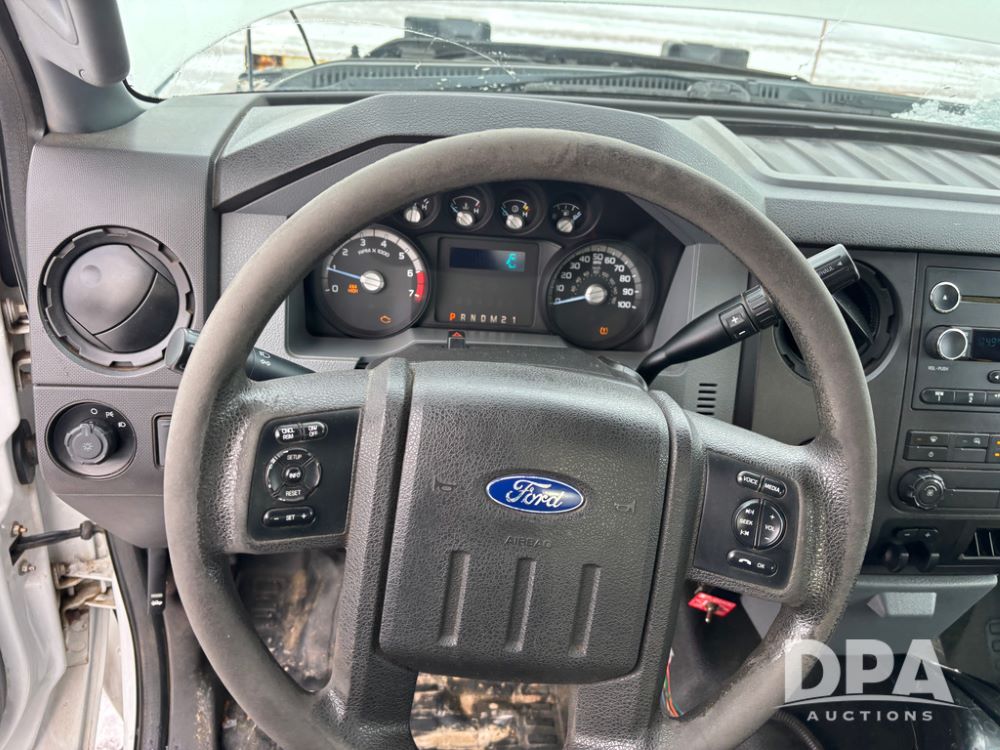 2012 Ford F250 Pickup (DR12934 Unit 0302), gas engine, automatic transmission, 4X4, Zimmerman 8' aluminum flatbed w/headache rack, Power Hitch front mounted snow plow w/cab controls, AM/FM CD radio, cruise control, rear receiver hitch, 285/70R17 tires, odometer reads 205,854 miles.