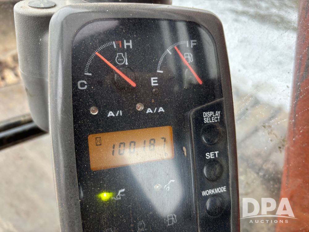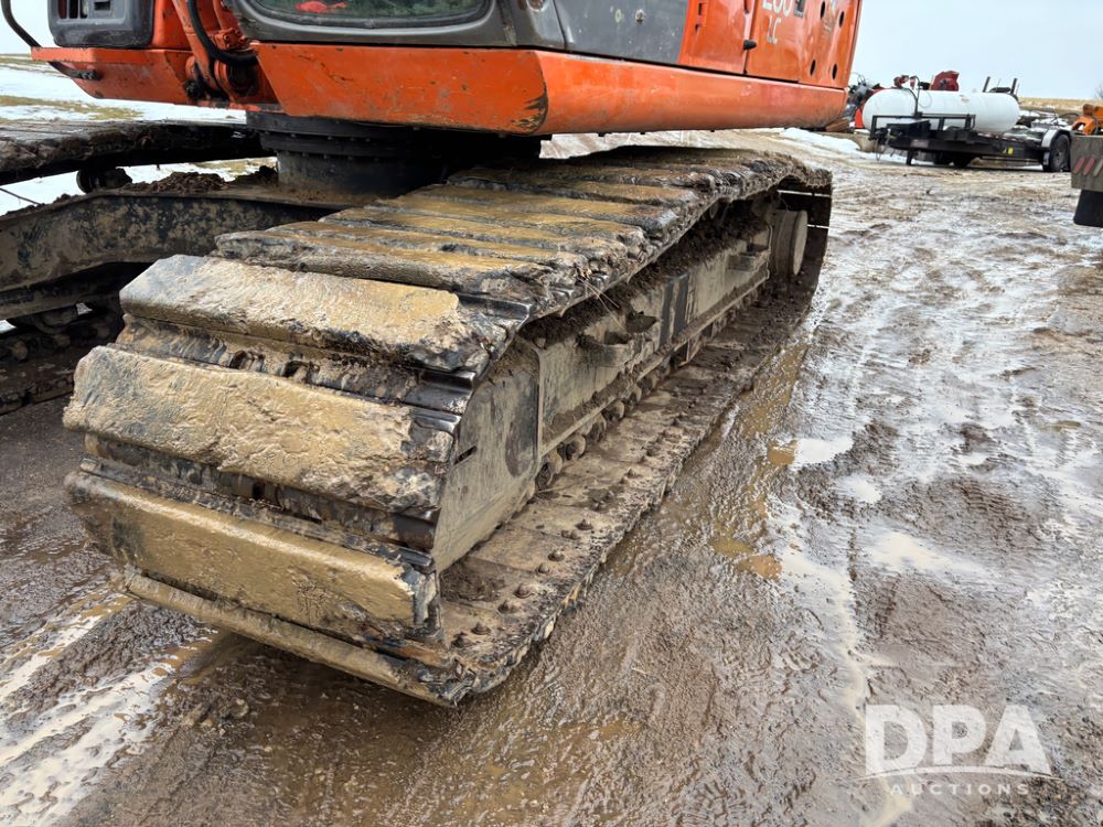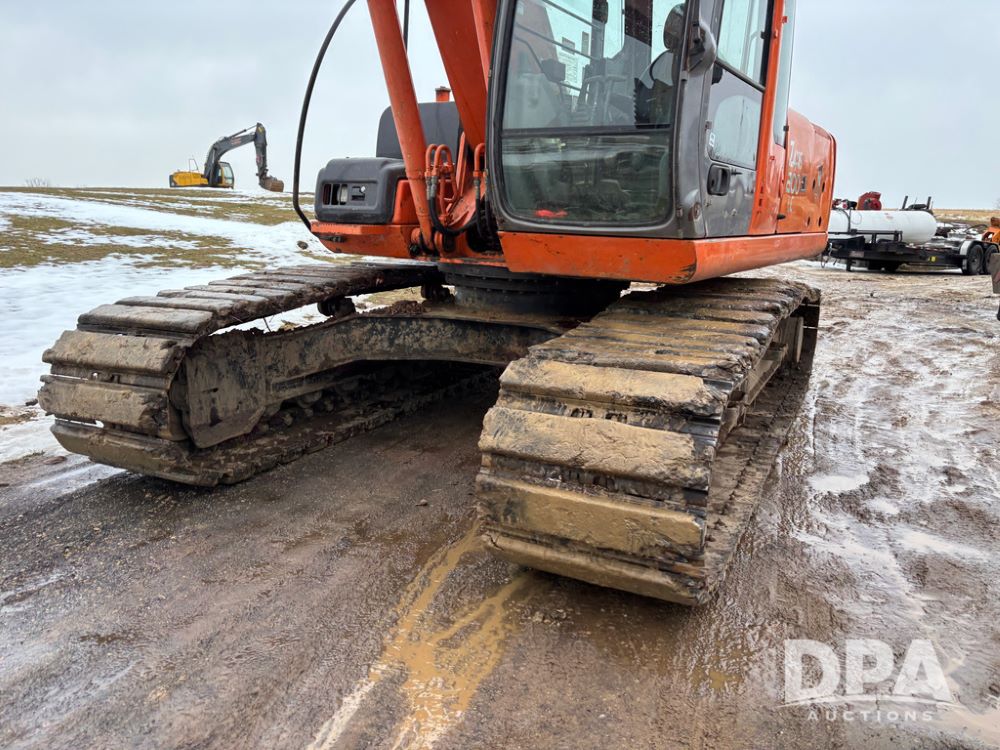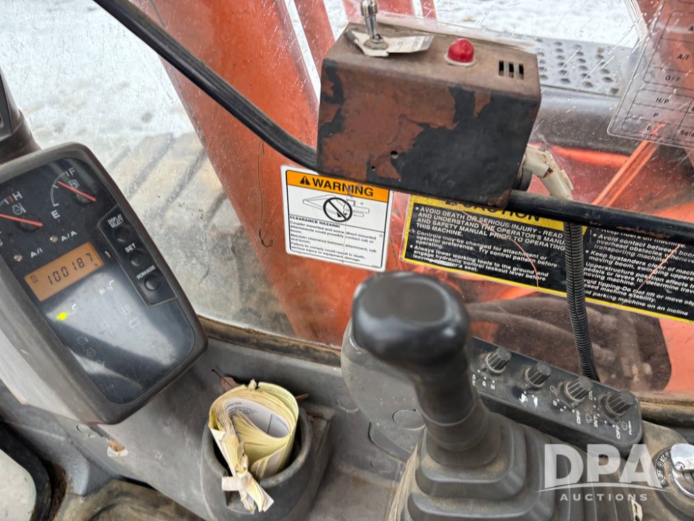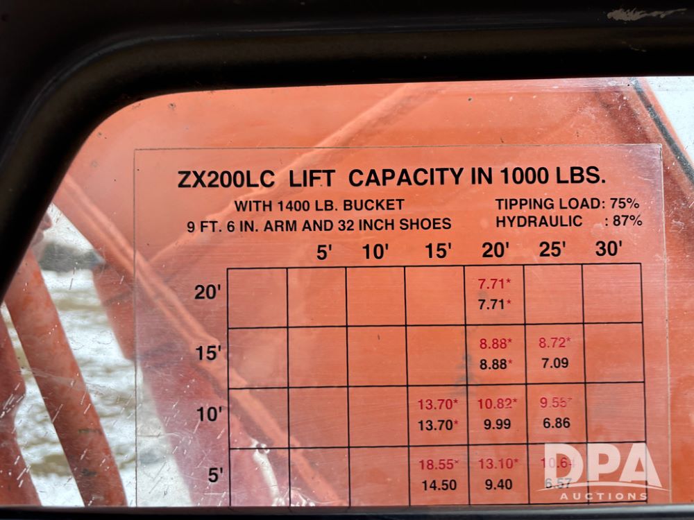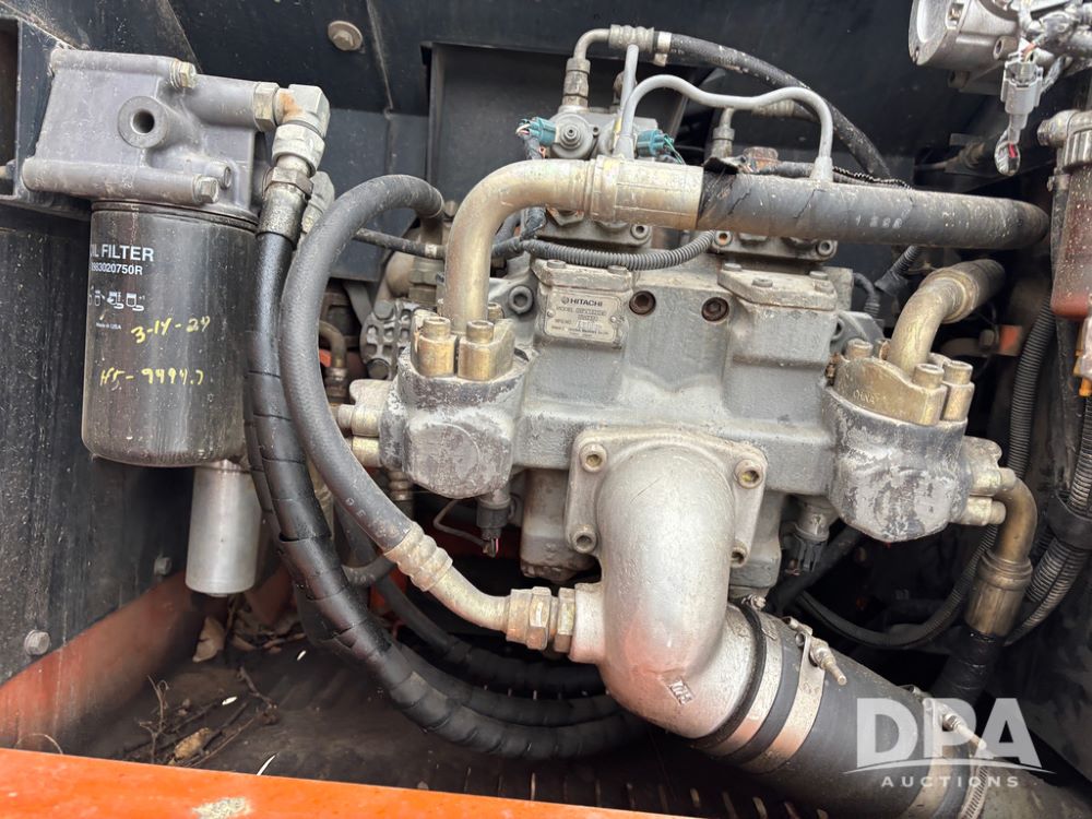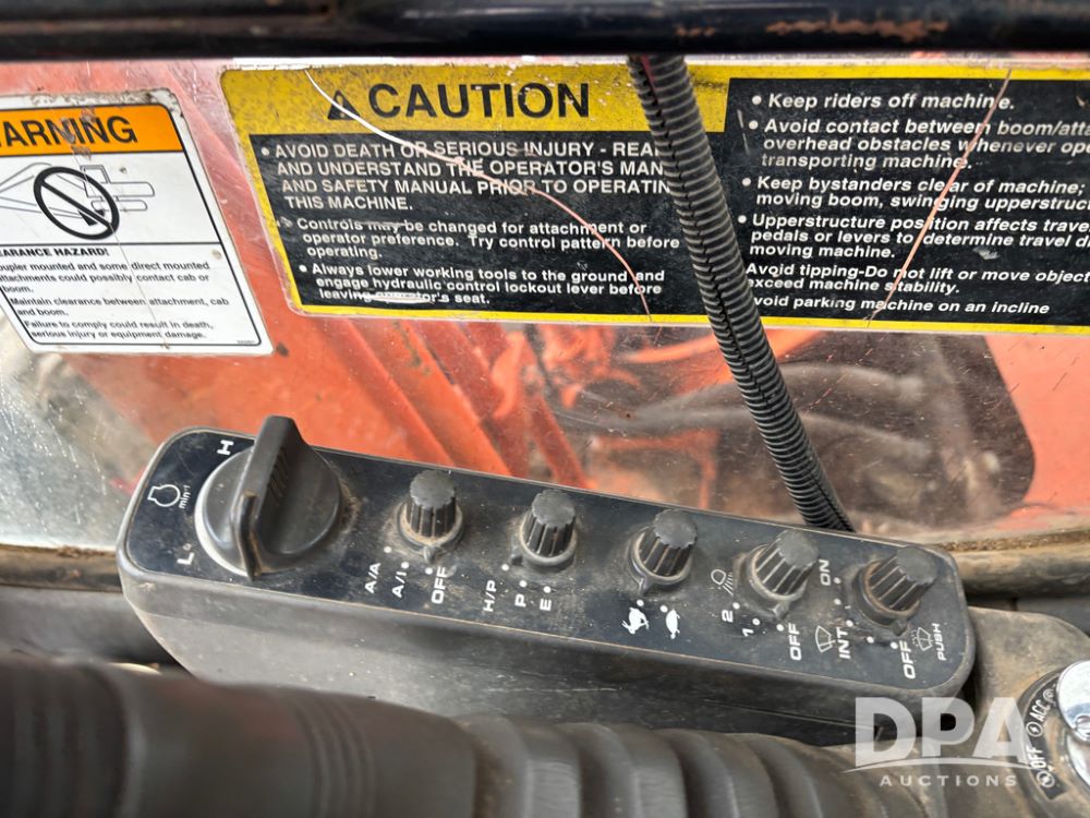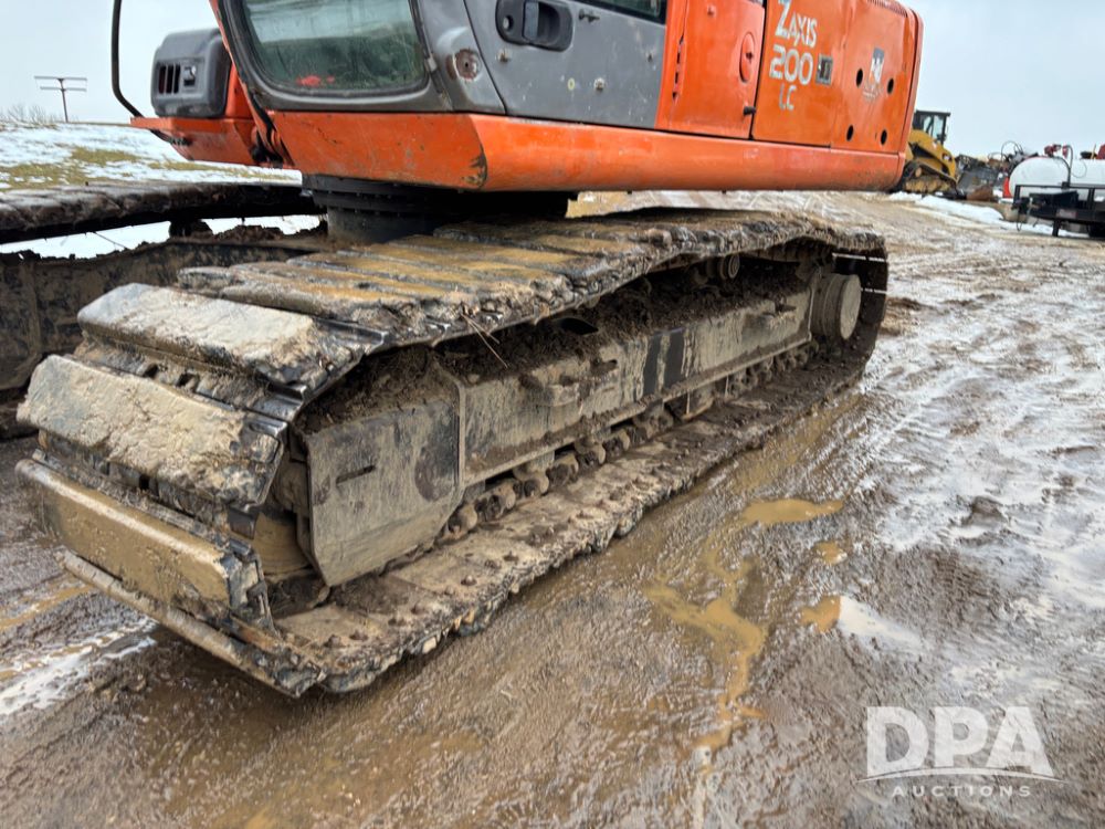 Hitchi 200 Excavator (DR12939), Isuzu diesel engine, hydrostatic drive, manual thumb, good under carriage, 32'' rubber pads, 2024 48'' tooth bucket, JRB hydraulic quick tach, enclosed cab w/heat and air conditioning, shows 10,018 hours.