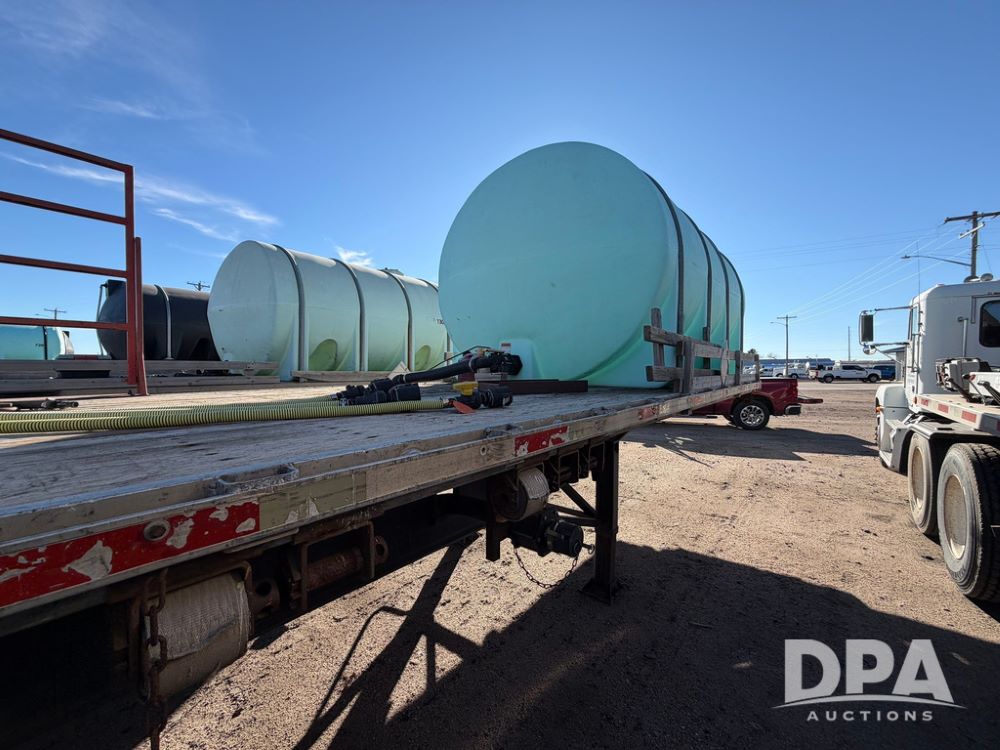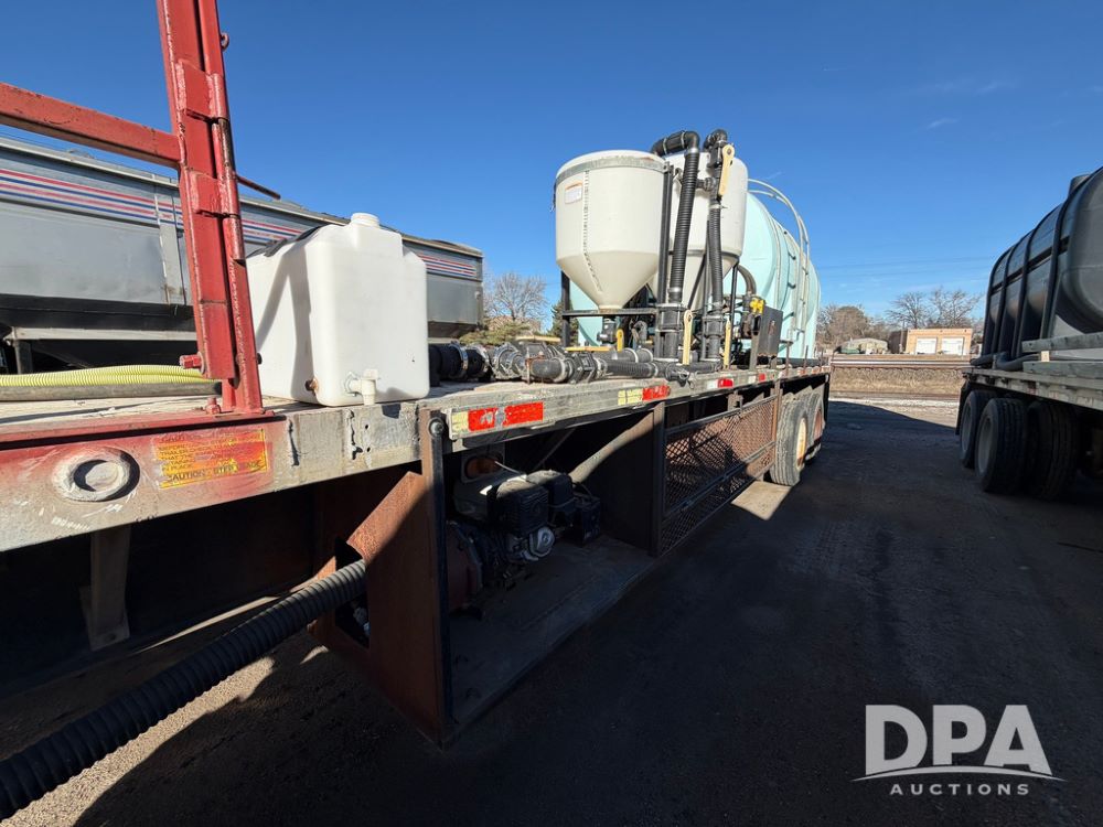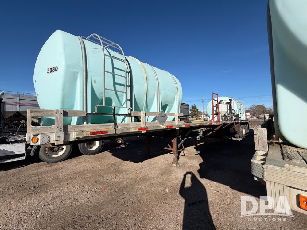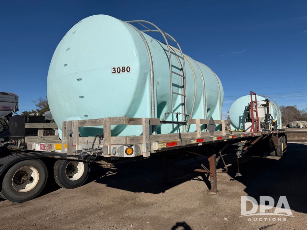 2006 Utility Liquid Tender Trailer (RR0586, Unit 3080), 48' trailer, twin 3,200-gallon poly liquid tanks, electric start Honda liquid pump, tank ladders, Stemco Hub seals, adjustable axles, air ride suspension, (2) 3,200 tanks, 2 inductor tanks, hoses, 4 chemical pumps, Honda engine and pump and discharge hose, 295/75R22.5 tires.