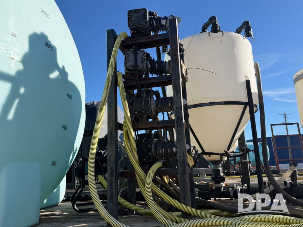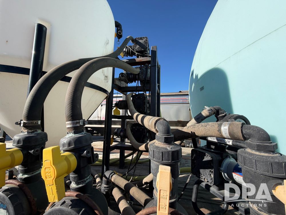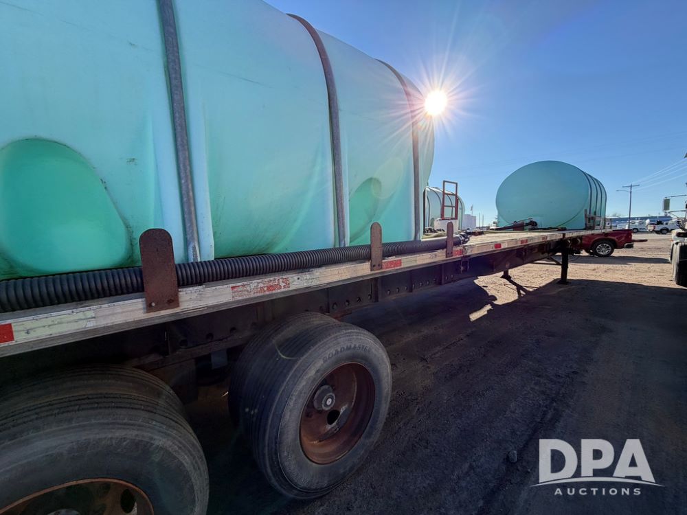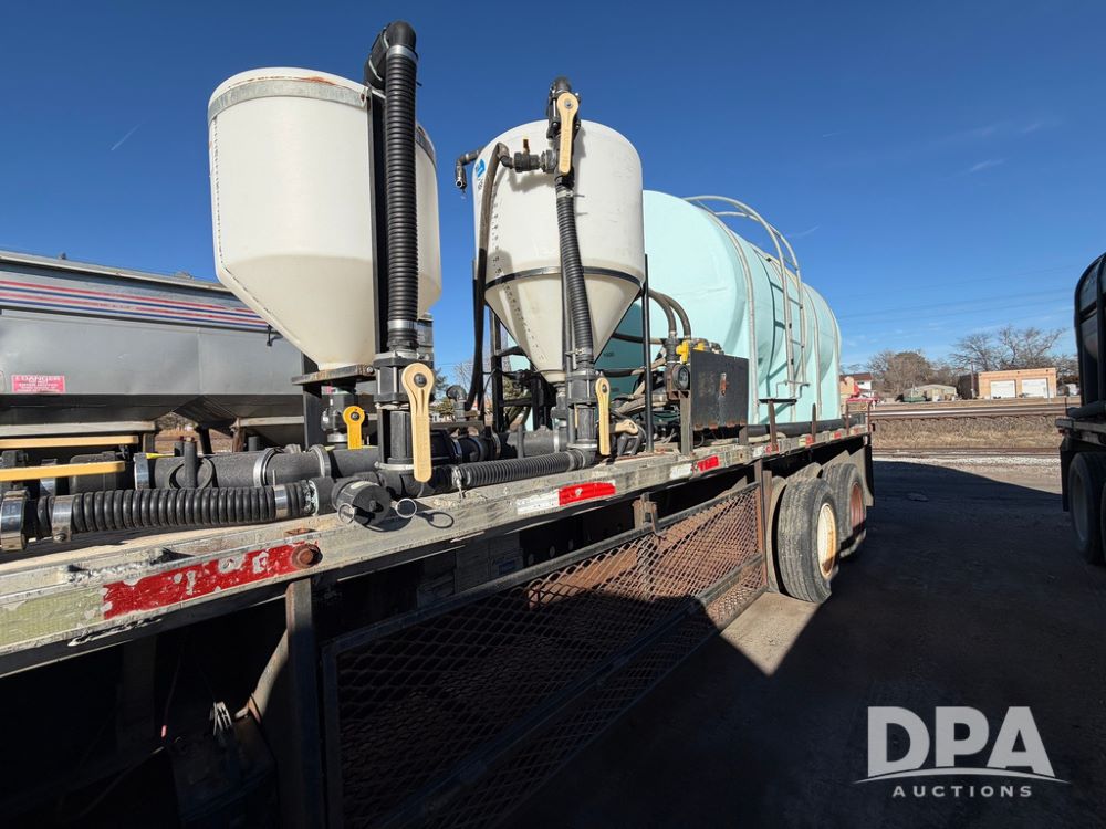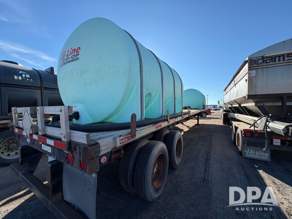 2006 Utility Liquid Tender Trailer (RR0586, Unit 3080), 48' trailer, twin 3,200-gallon poly liquid tanks, electric start Honda liquid pump, tank ladders, Stemco Hub seals, adjustable axles, air ride suspension, (2) 3,200 tanks, 2 inductor tanks, hoses, 4 chemical pumps, Honda engine and pump and discharge hose, 295/75R22.5 tires.