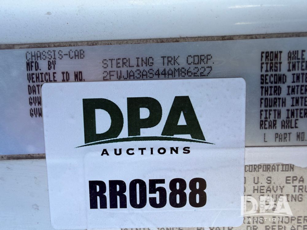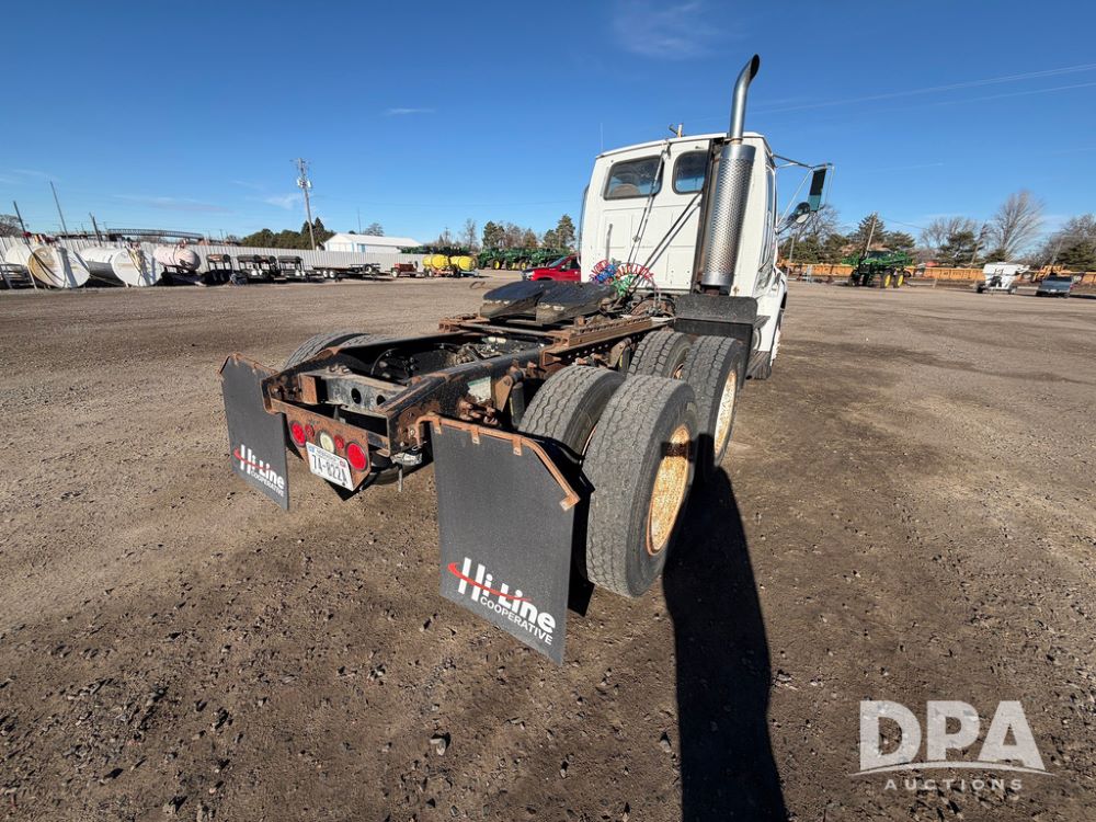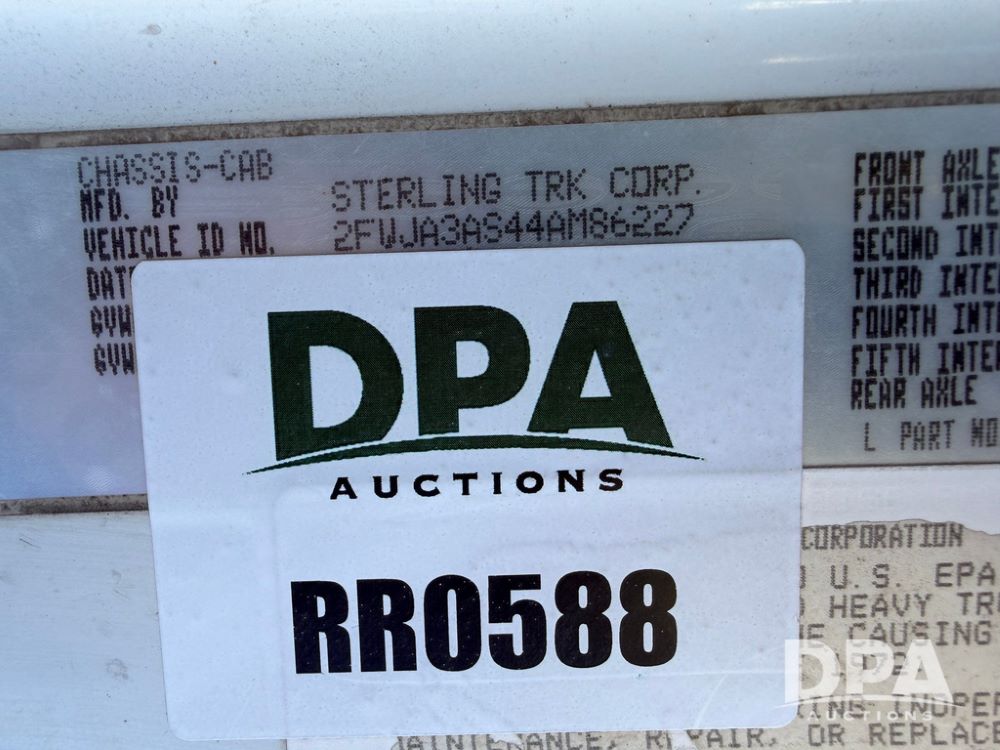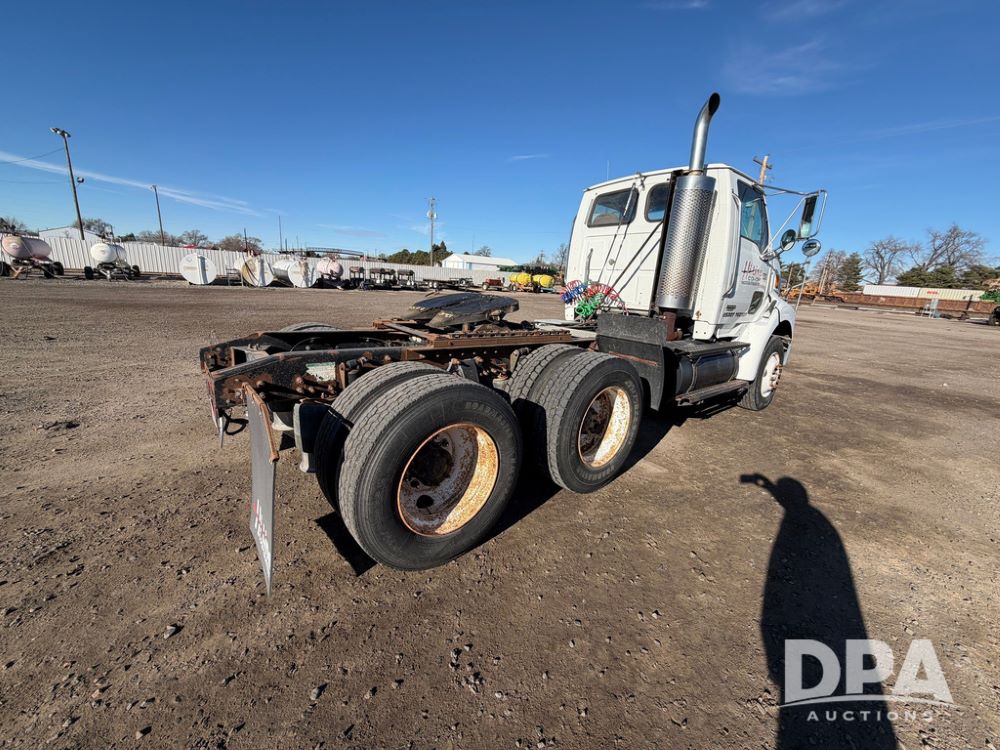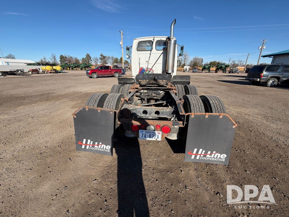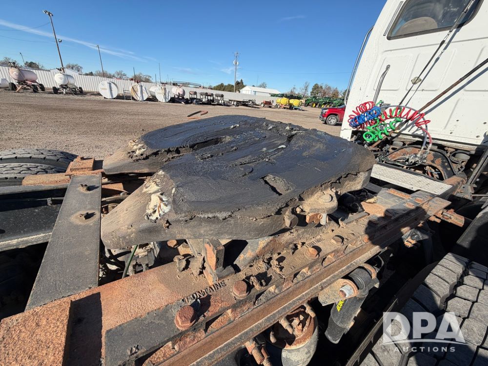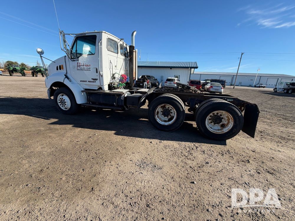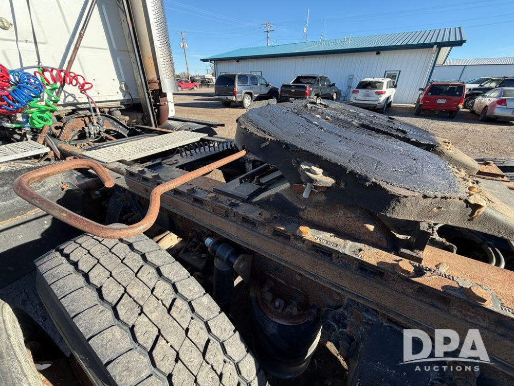 2004 Sterling AT9500 Day Cab Truck (RR0588, Unit 130), Caterpillar C-12 diesel 410HP engine, manual transmission, heat, air conditioning, AM/FM radio, cruise control, tandem axle, twin screw, air ride suspension, 5th wheel plate, 275/80R22.5 fronts, 295/75R22.5 rears, shows 442,365 miles.