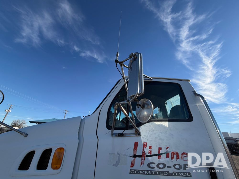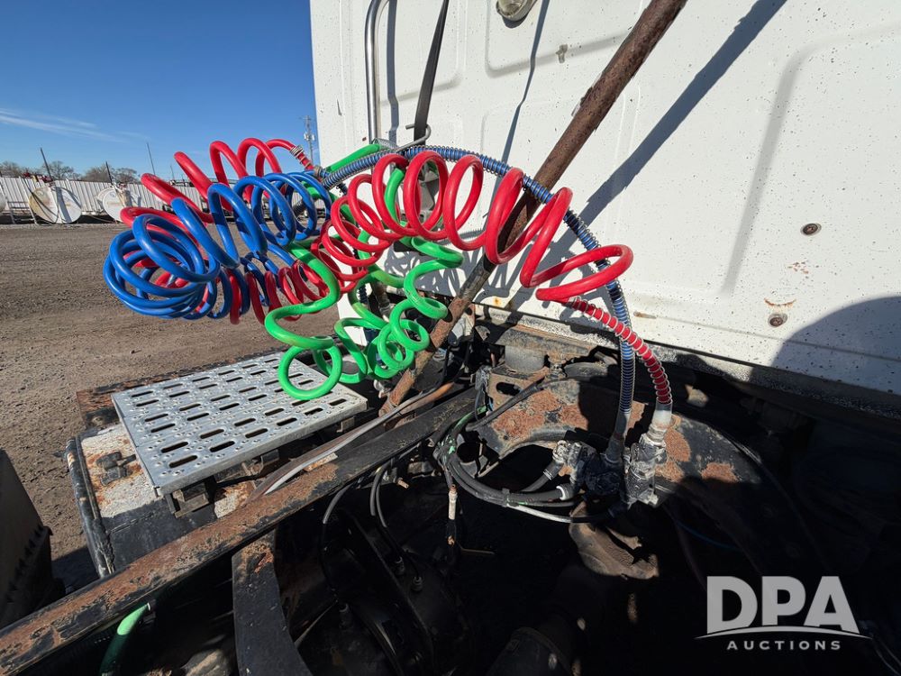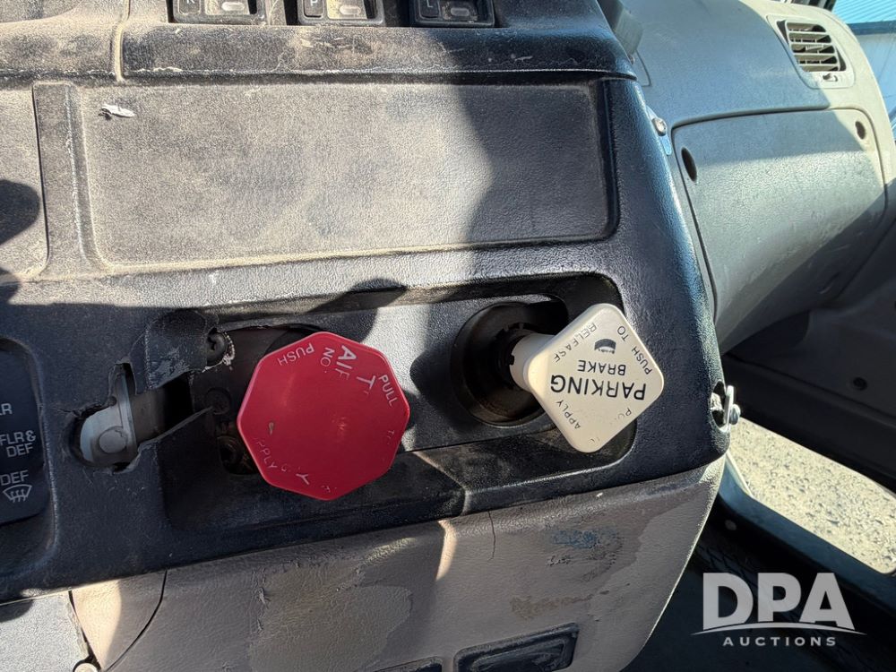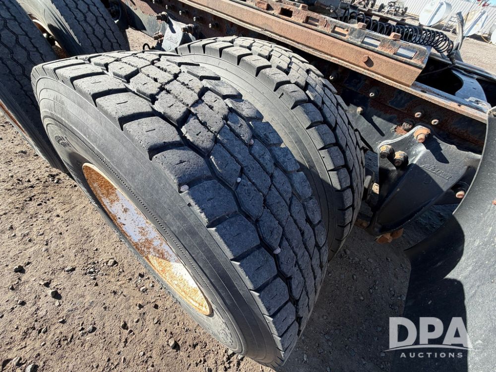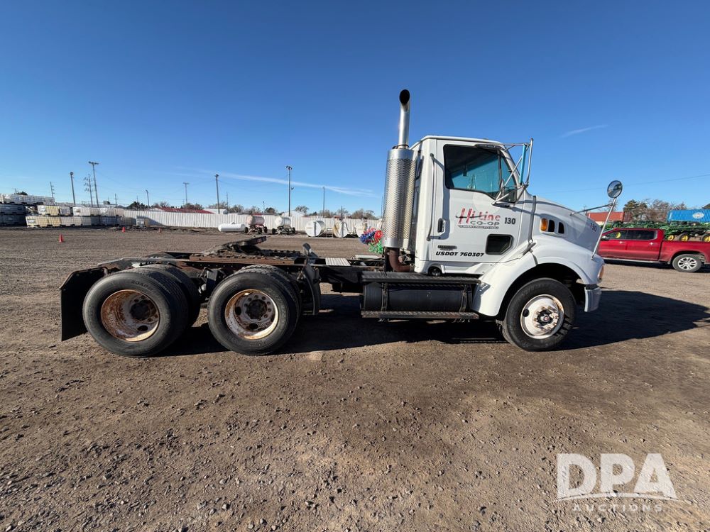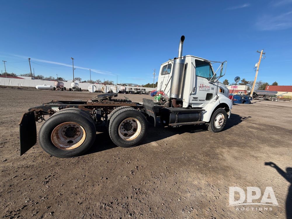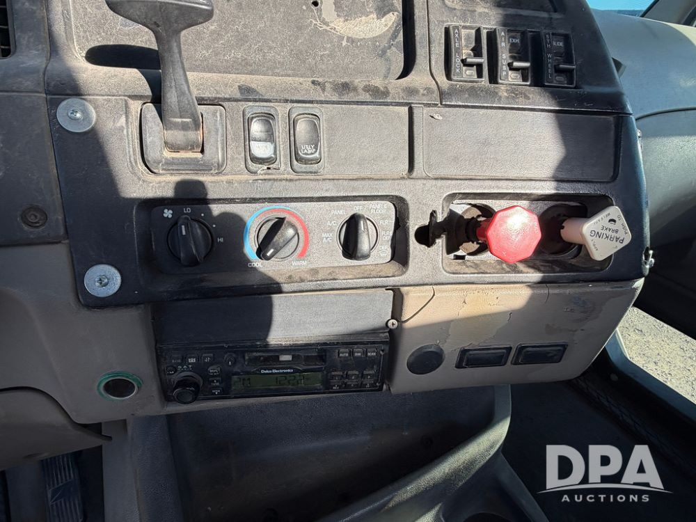 2004 Sterling AT9500 Day Cab Truck (RR0588, Unit 130), Caterpillar C-12 diesel 410HP engine, manual transmission, heat, air conditioning, AM/FM radio, cruise control, tandem axle, twin screw, air ride suspension, 5th wheel plate, 275/80R22.5 fronts, 295/75R22.5 rears, shows 442,365 miles.