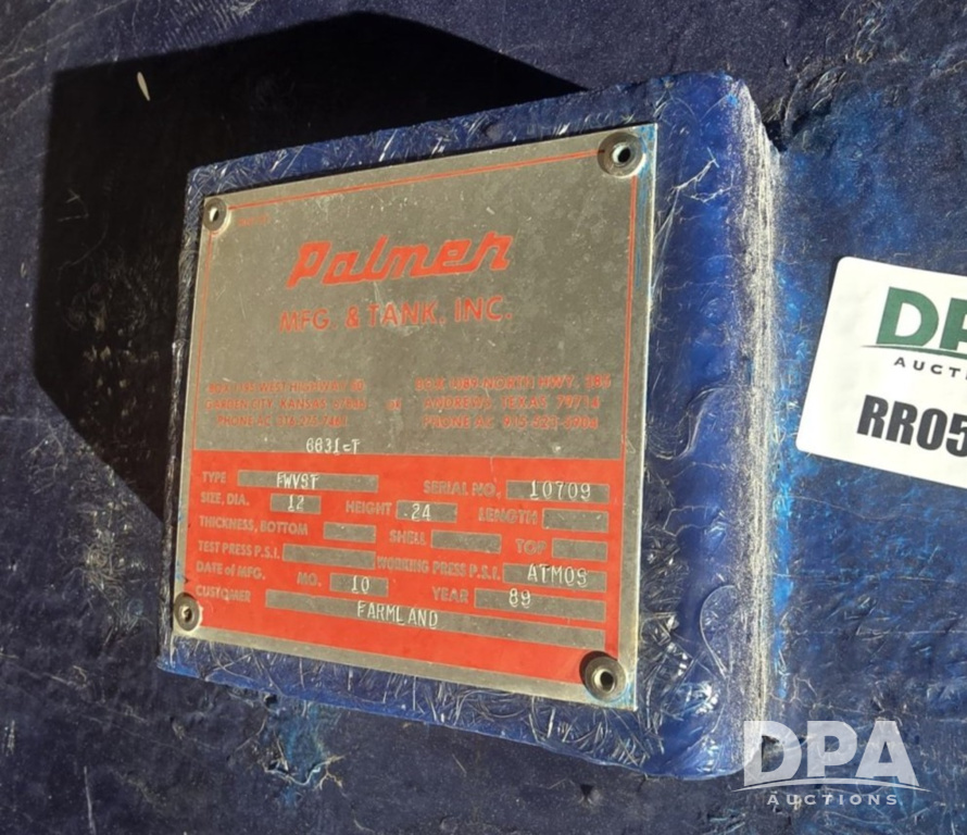 1989 Palmer Fiberglass Tank (RR0590), 21,000 gallon fiberglass tank.