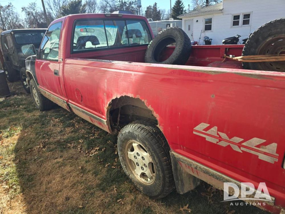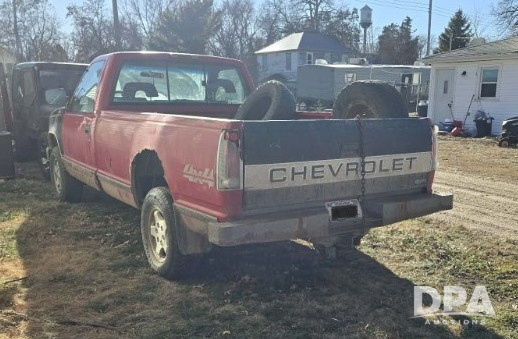1994 GMC Sierra K1500 Pickup (ED5408), 350engine, automatic transmission, heat gets stuck on defrost but does heat cab, Chevy grill and tailgate, patch panels for bed, new upper and lower ball joints, 2 extra sets of rims and tires, 235/70R16 tires, motor and trans rebuilt at 390,250 miles, shows 482,431 miles.