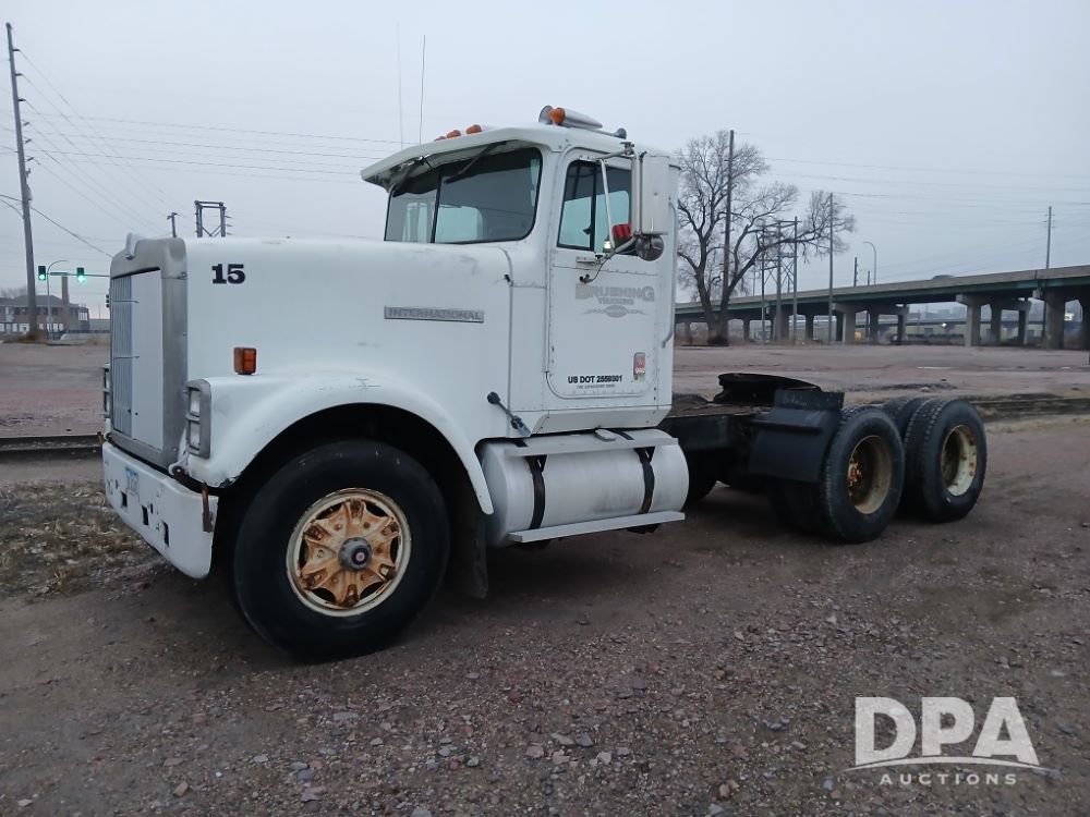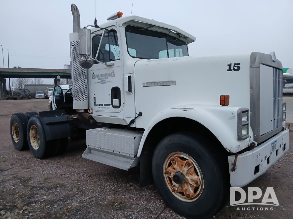 1986 International 9370 Day Cab Truck (PD5453), Cummins diesel engine, 300 hp, 10 speed transmission, new clutch installed, 2 new steer tires, 4 new drive tires, new batteries, odometer inoperable.