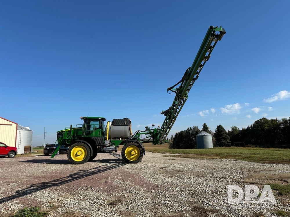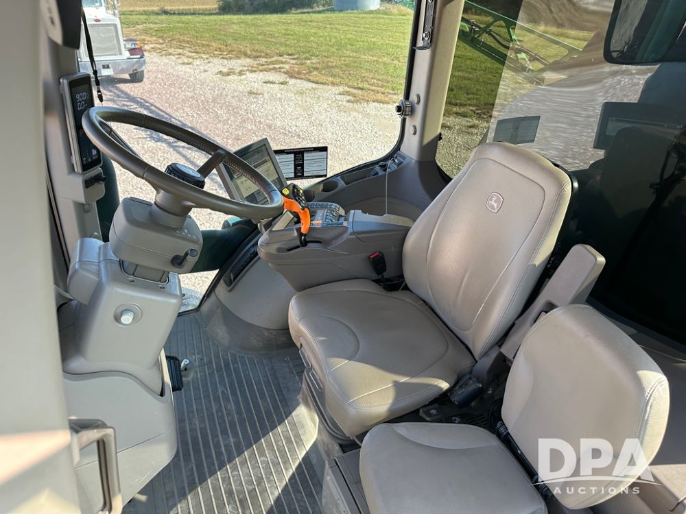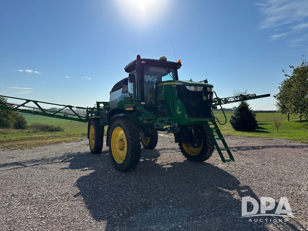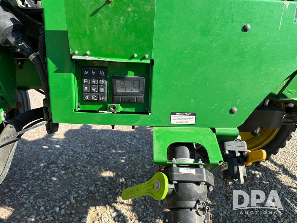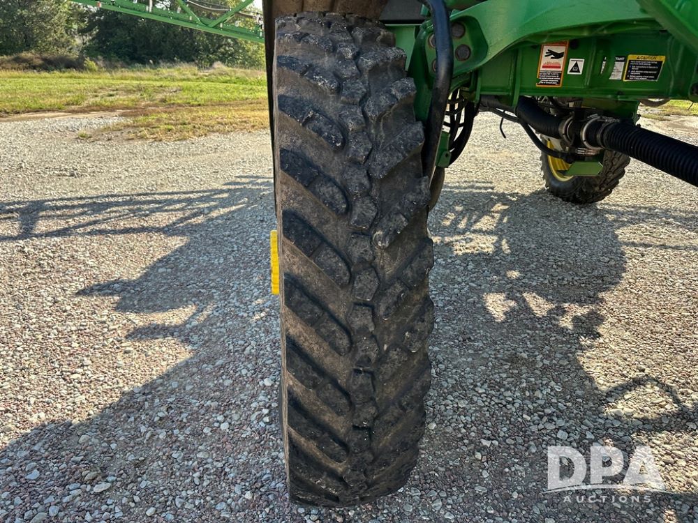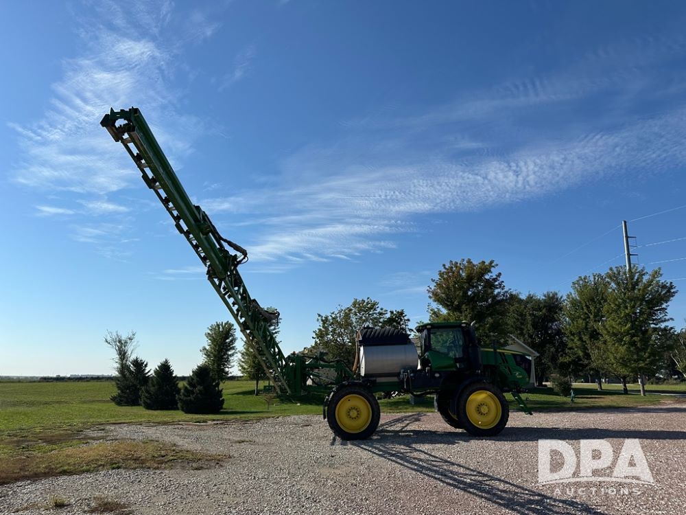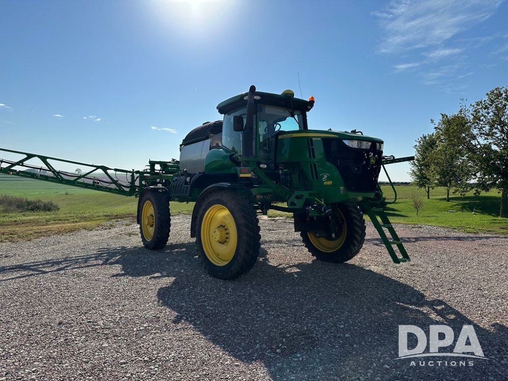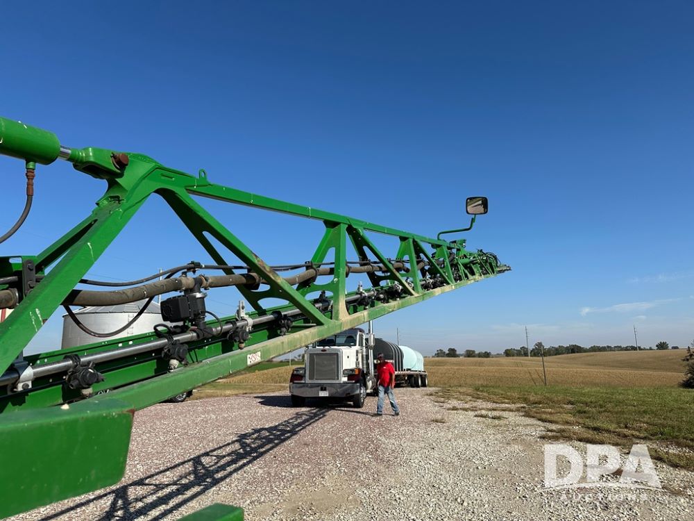 2021 John Deere R4044 Sprayer (NP6179), John Deere diesel engine, hydrostatic transmission, heat, air conditioning, Am/Fm radio, leather driver and buddy seat, 1,200 gallon stainless steel liquid system, 100' boom, top mount poly rinse tank, stainless steel chemical inductor tank, automatic solution control, front fill option, 380/90R46 tires, StarFire 6000 globe, John Deere monitor, shows 1,759 hours.