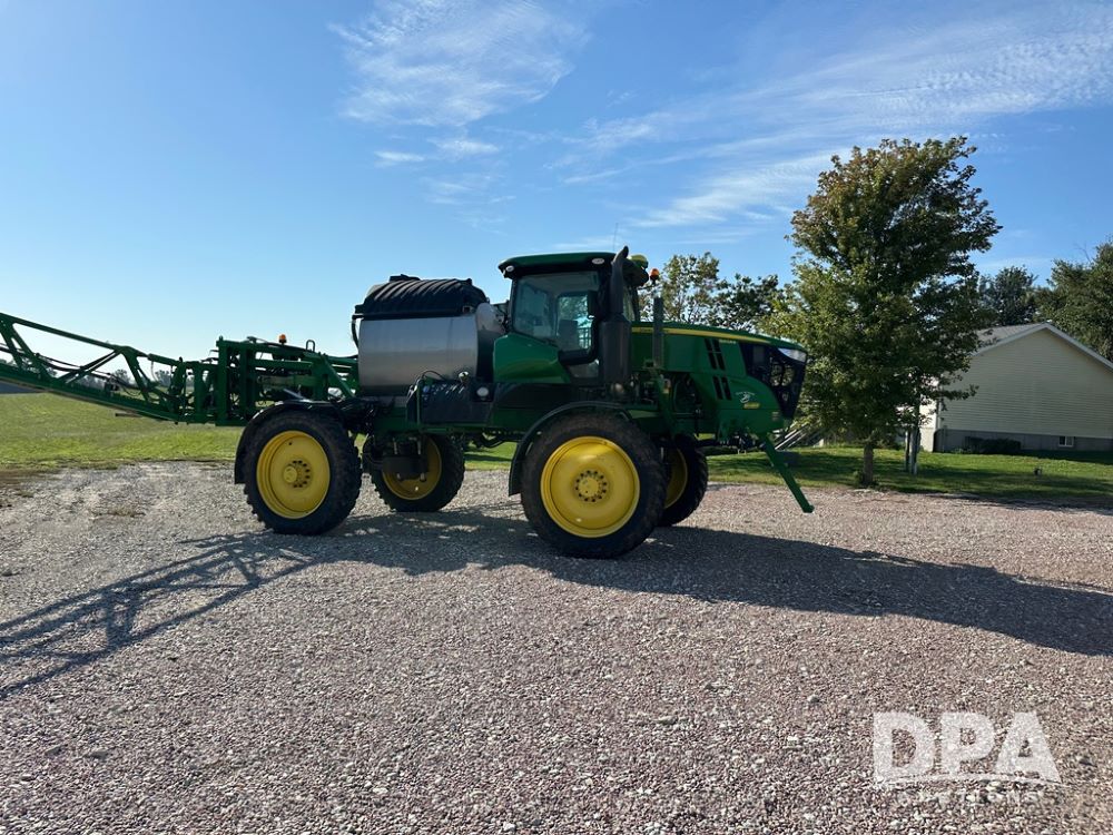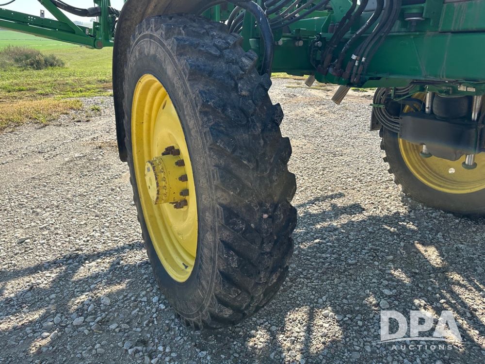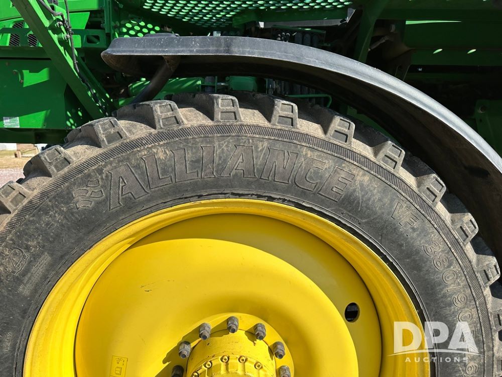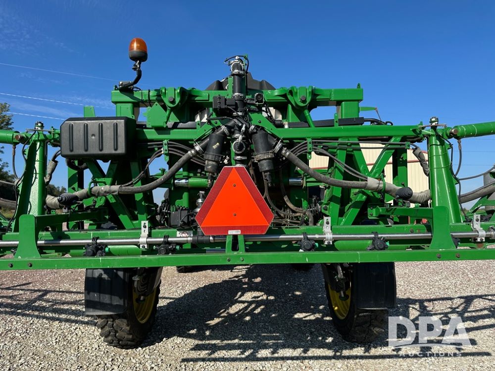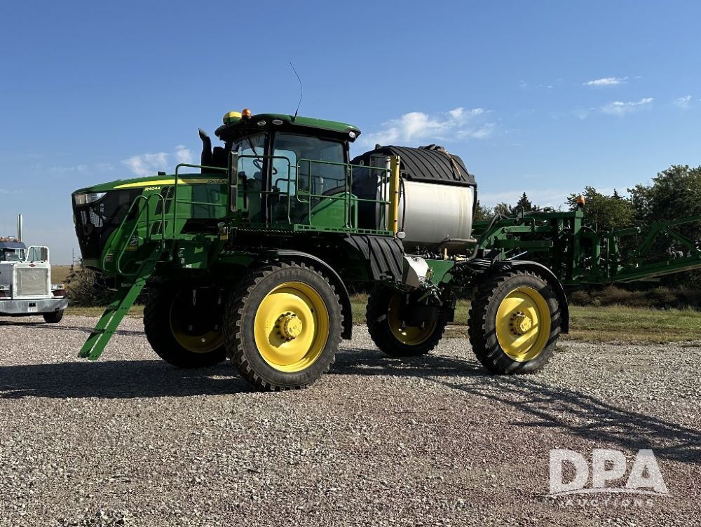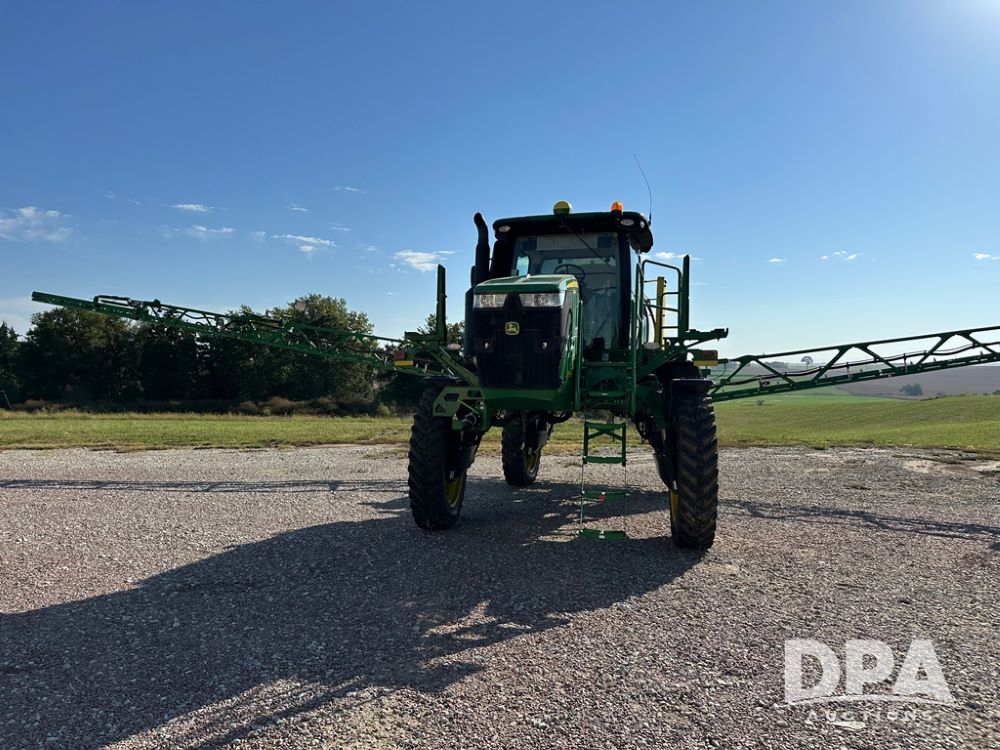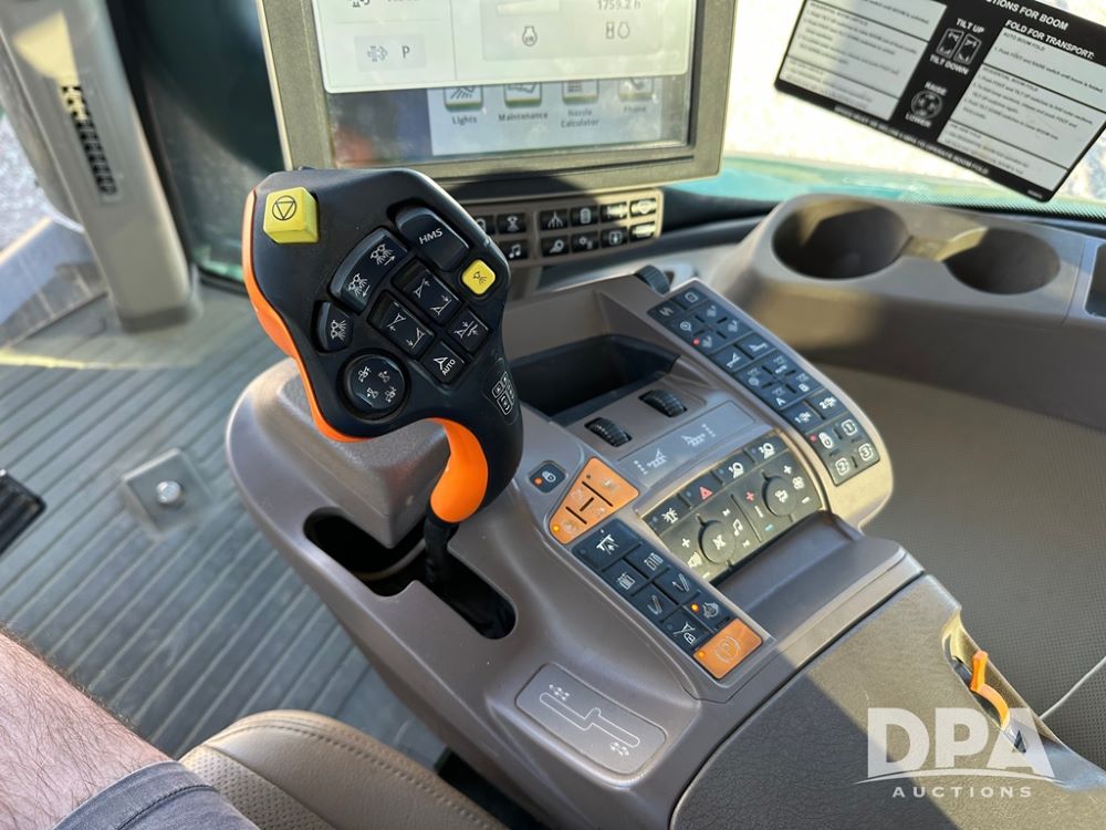 2021 John Deere R4044 Sprayer (NP6179), John Deere diesel engine, hydrostatic transmission, heat, air conditioning, Am/Fm radio, leather driver and buddy seat, 1,200 gallon stainless steel liquid system, 100' boom, top mount poly rinse tank, stainless steel chemical inductor tank, automatic solution control, front fill option, 380/90R46 tires, StarFire 6000 globe, John Deere monitor, shows 1,759 hours.