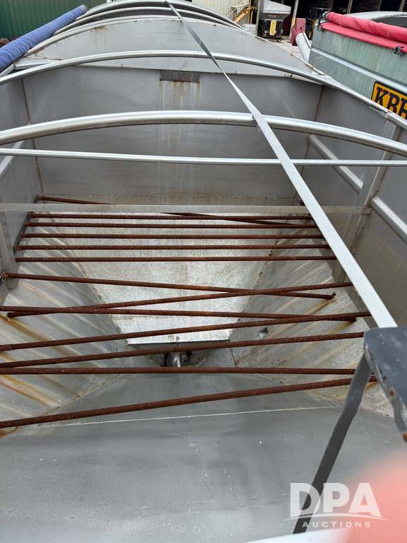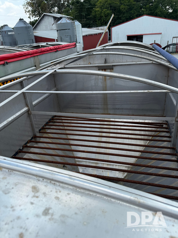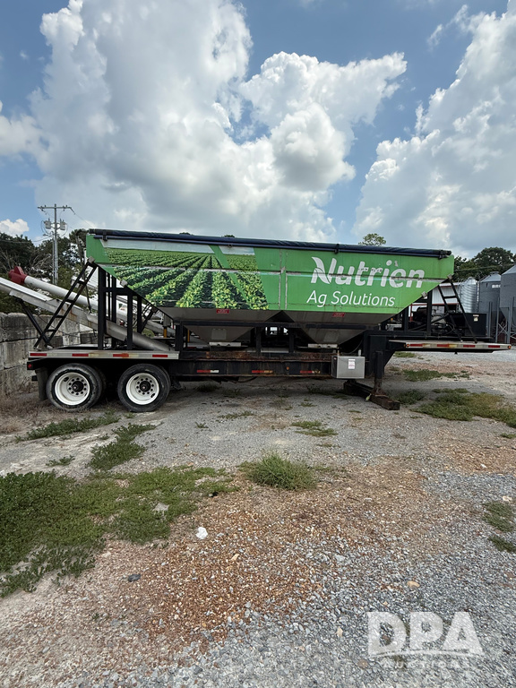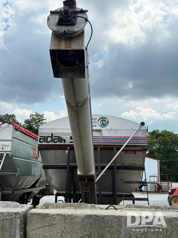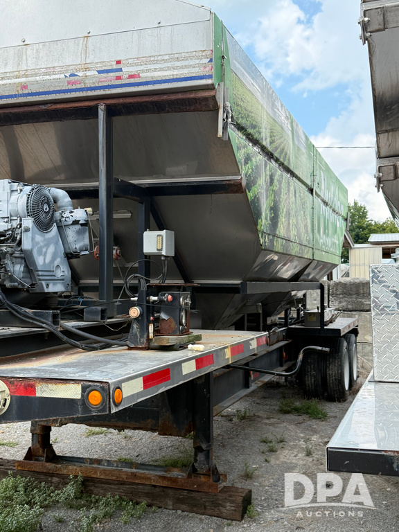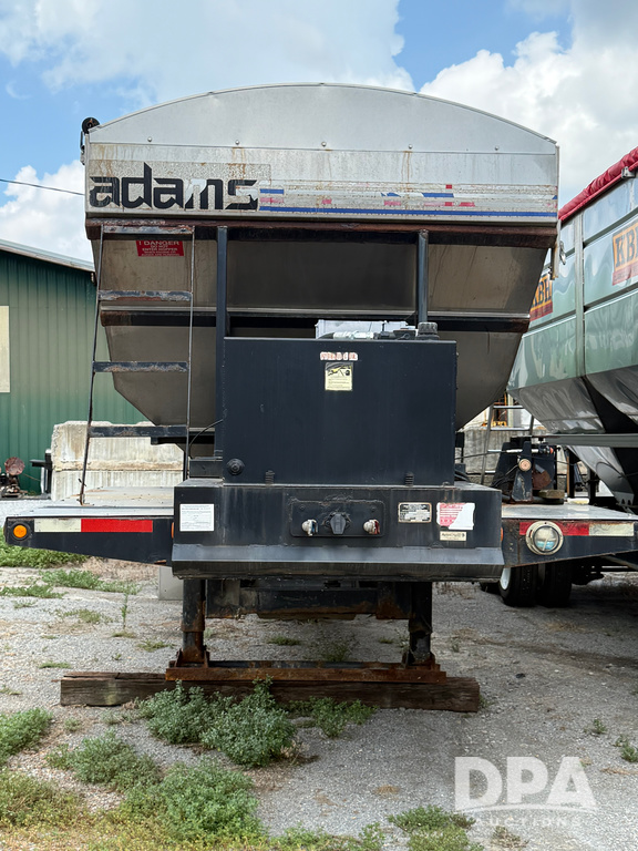 2015 Magnolia Dry Tender Trailer (PZ14322, Unit 99033), 2015 Adams 24 ton stainless steel dry tender box, rear discharge auger, self contained diesel engine, roll over tarp, 2015 Magnolia trailer, tandem axle, spring suspension, 255/70R22.5 tires.