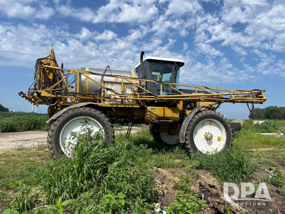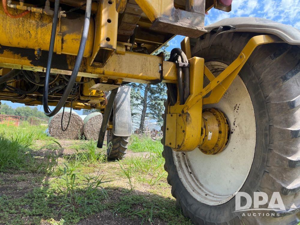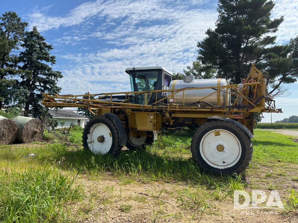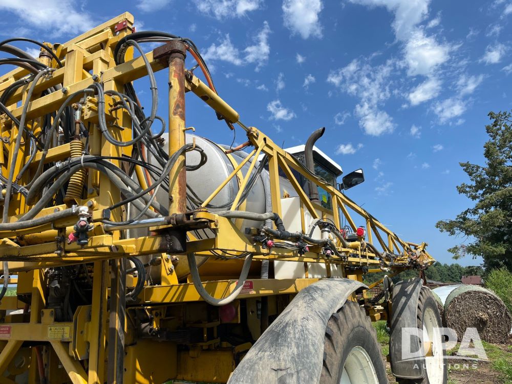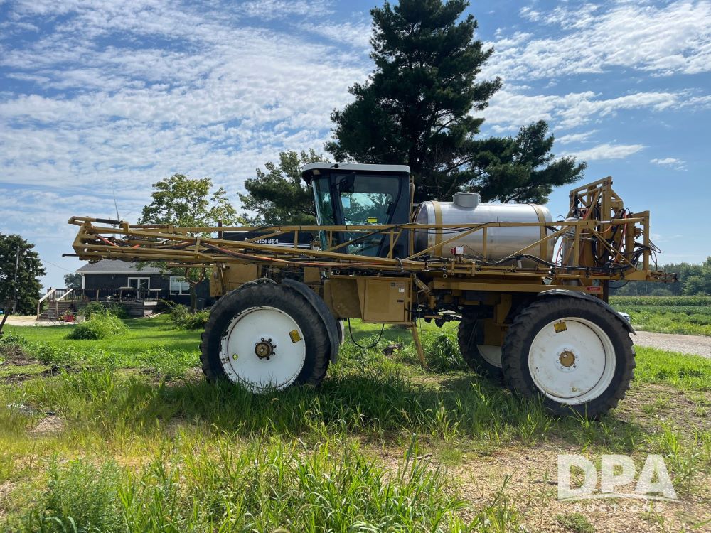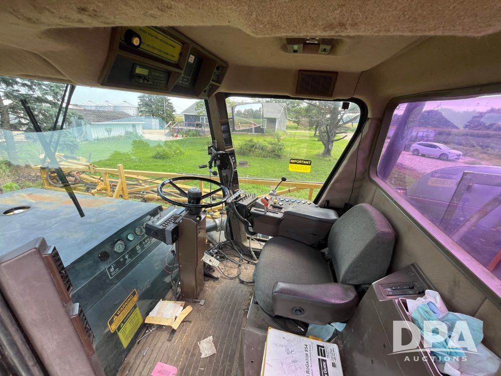 1996 RoGator 854 Sprayer (JN2756), Cummins diesel engine, hydrostatic transmission, heat, Am/Fm radio, 1,000 gallon stainless steel liquid system, 90' boom, poly rinse tank, stainless steel foam marker tank, 380/90R46 tires, Raven SCS460 controller, shows 4,213 hours.